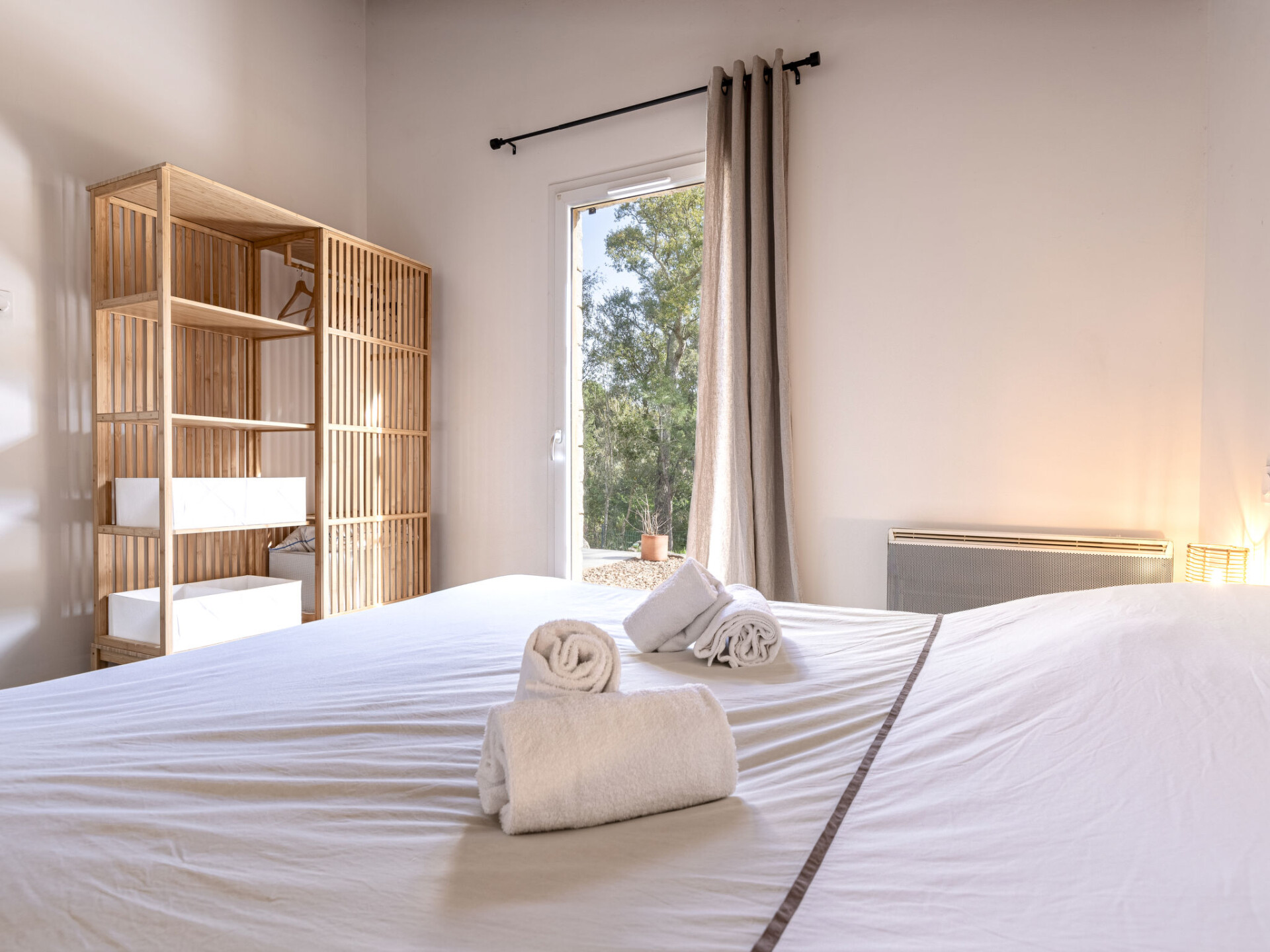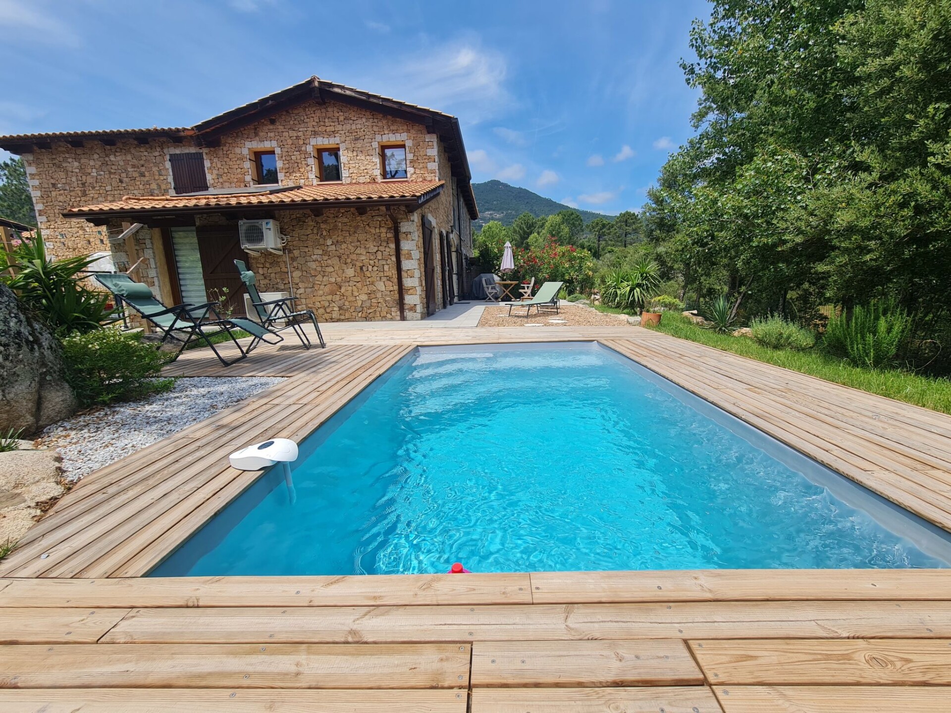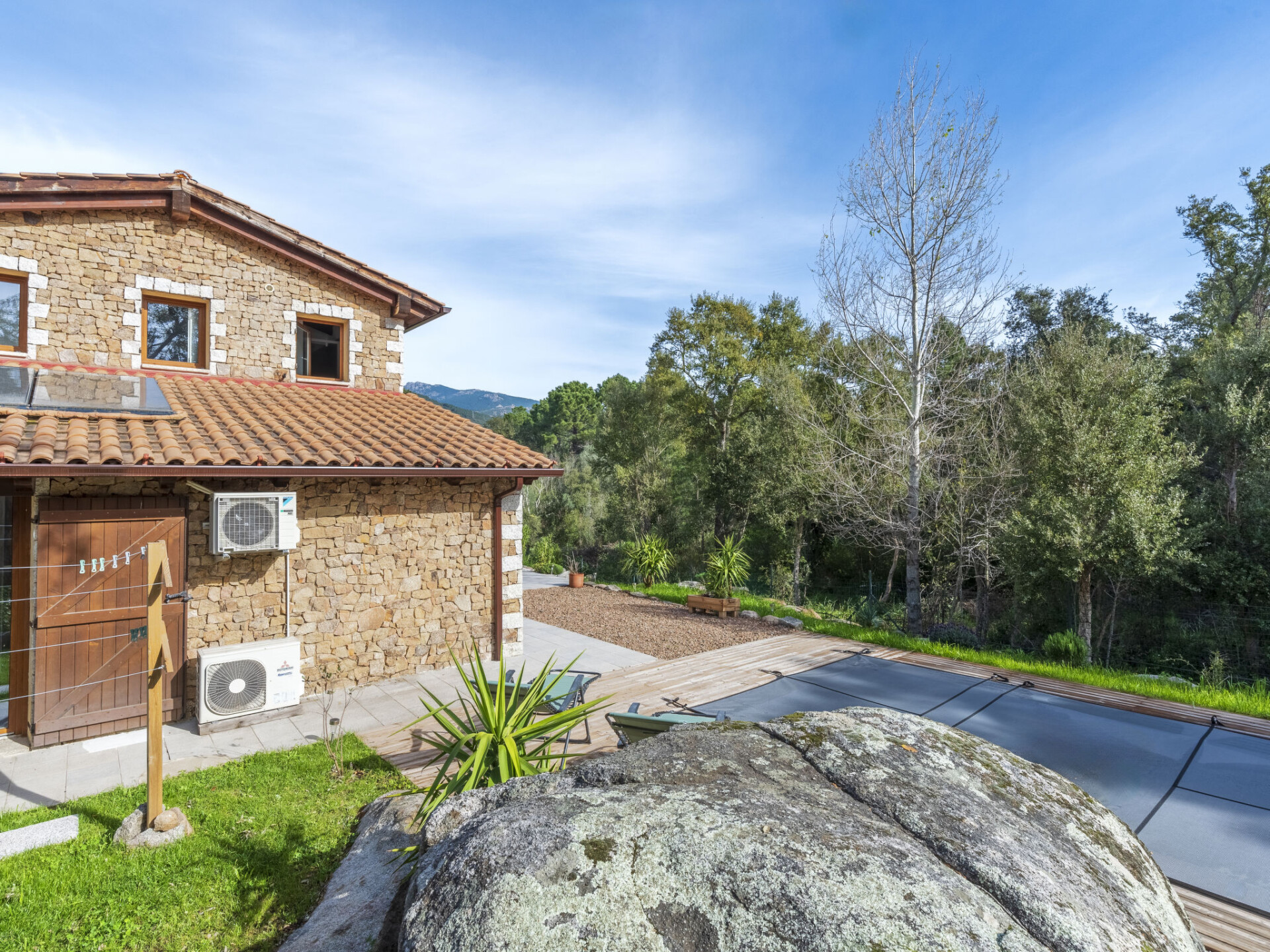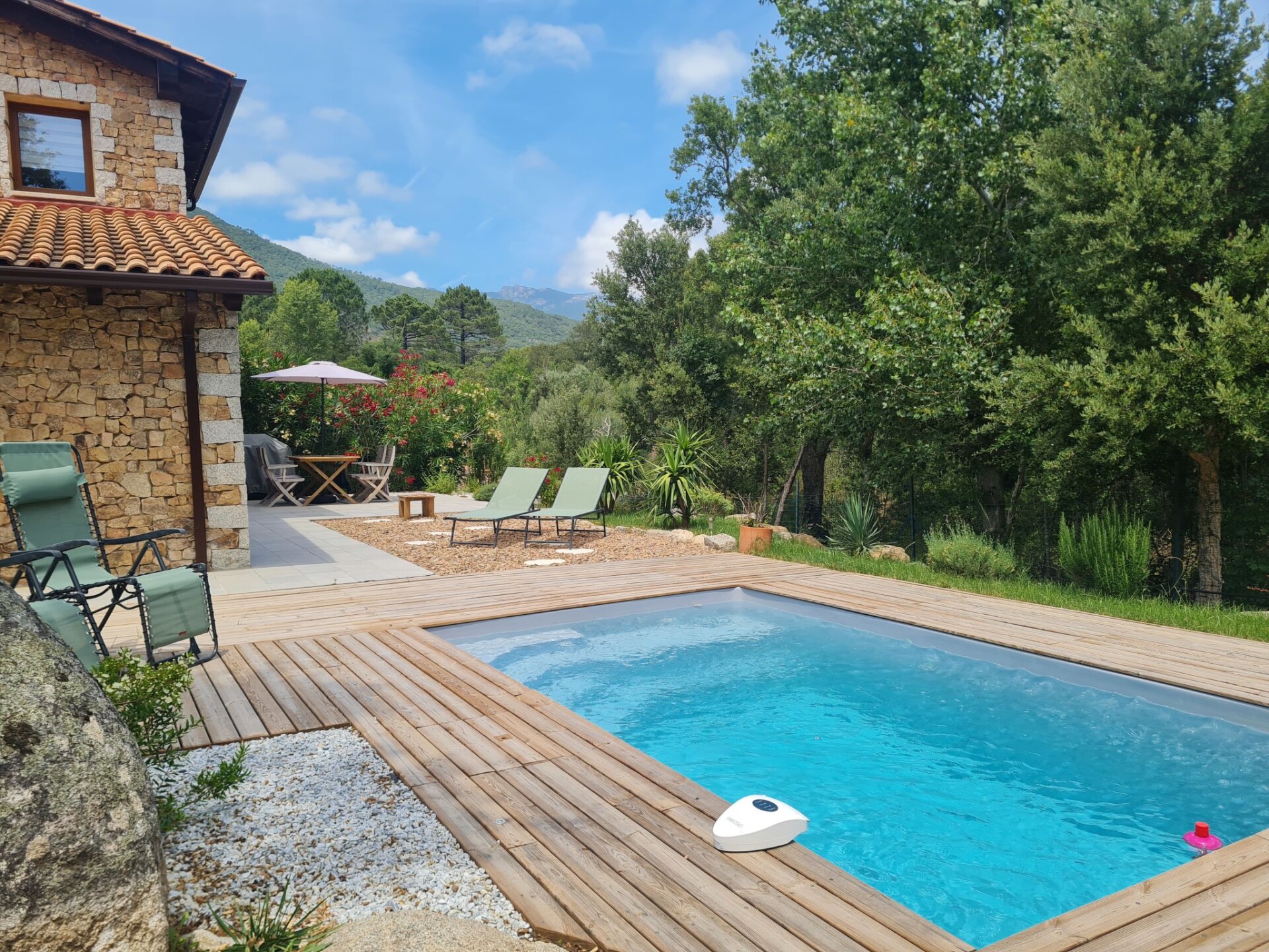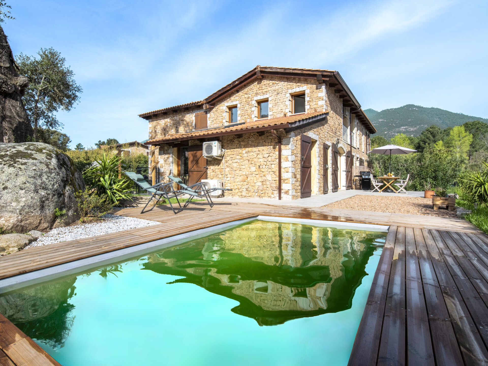 Rijtjeshuis "Casa Mela". In de wijk Mela, in de plaats Porto-Vecchio, rustige ligging, 10 km van zee, 10 km van het strand, aan een doodlopende weg. Voor alleengebruik: verzorgde tuin 270 m2 (omheind) planten en bloemen, openluchtzwembad hoekig (4 x 2 m, 150 - 150 cm diepte, seizoensgebonden beschikbaarheid: 06.Mei. - 06.Okt.). Onderhoud zwembad door de eigenaar/tuinman. Parkeerplaats op het terrein. Winkel 1.3 km, levensmiddelenwinkel 3 km, restaurant 250 m, bushalte 7.5 km, zandstrand "Plage de Cala Verde" 10 km. Jachthaven 9 km. Attracties in de buurt: Centre ville de Porto-Vecchio 9 km, Plage de Cala Verde 10 km, Plage de Palombaggia 17 km, Bonifacio 33 km, Plage de Santa Giulia 14 km. Bekende meren kunnen gemakkelijk worden bereikt: Lac de L'Ospedale 27 km. Wandelgebied Les Aiguilles de Bavella 48 km. Auto noodzakelijk. Het objekt is geschikt voor 4 volwassenen. Gesloten residentie met een elektrische deur.