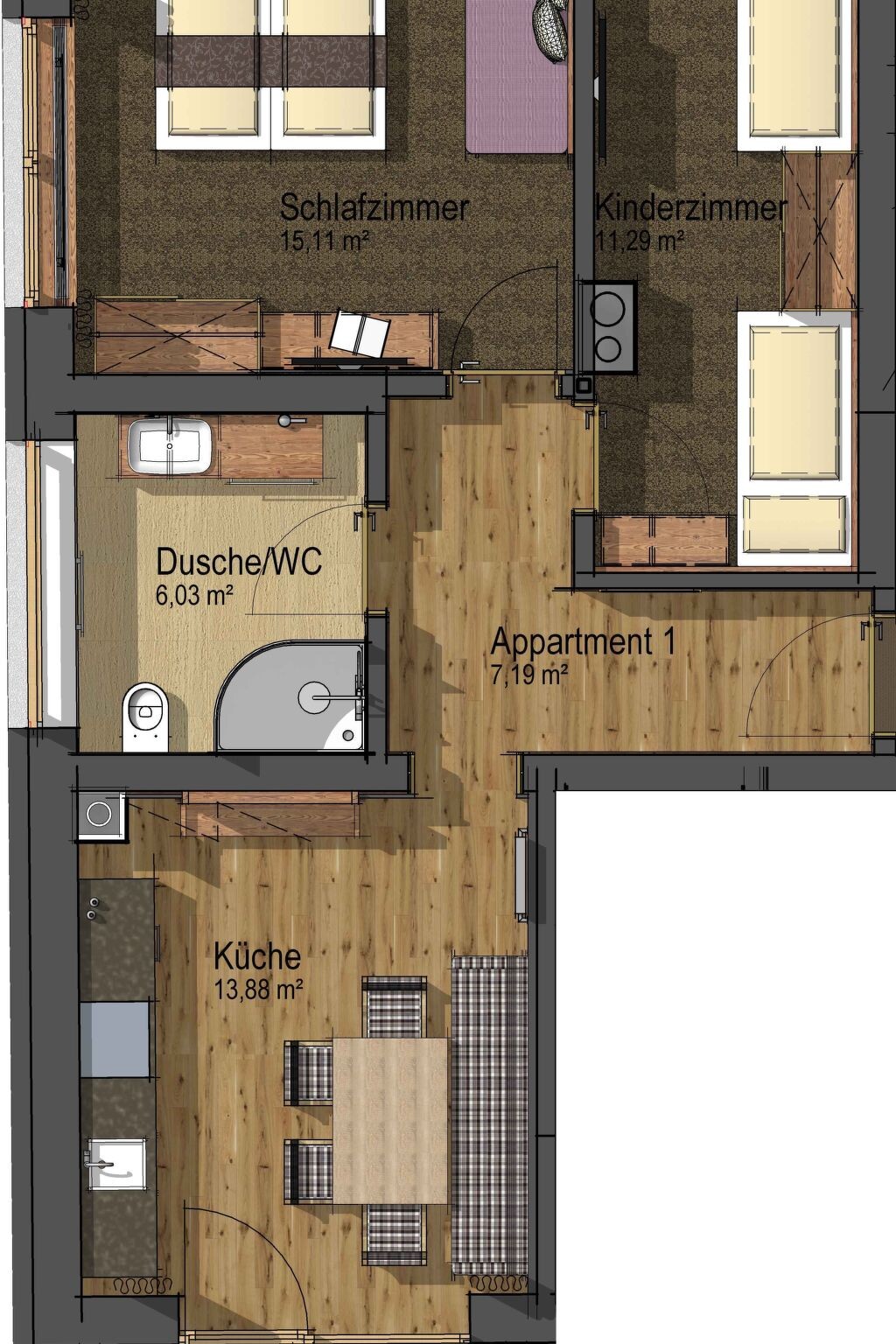 Spend an unforgettable holiday in our charming holiday flats, which are located directly on the ski slope and the famous MTB trails. With an alpine flair that invites you to feel good, from December 2025 our accommodation will also offer a heated outdoor pool, a whirlpool as well as a sauna and steam bath with relaxation area and a few surprises to make your stay extra special.The interior of holiday flat no. 1 covers around 54 m², with attention to detail reflected in the modern design. Equipped with a double room with box-spring beds and a sofa, another room with two single beds, a bathroom with a rain shower, a living room with a dining area and a fully equipped kitchen. There is also a balcony with a view of the mountains, perfect for relaxing. A flat-screen TV in the bedrooms and living room, Wi-Fi throughout the house, bed linen and towels and a safe round off the offer.The outdoor area impresses with a south-facing balcony, which is furnished with chairs and tables and from which you can enjoy a marvellous view of the Ötztal mountains. A free car parking space, an electric charging station and a bike cellar with workbench and washing area are also available.Our holiday flats are in a perfect location, surrounded by the idyllic Ötztal mountains, about 150 metres above the village centre of Sölden. A restaurant is in the immediate vicinity, about 300 metres away. The optimal connection to the Giggijoch ski area and the Harise and Traien MTB nature trails offer active holidaymakers the ideal starting point for hikes, mountain and mountain bike tours. The village centre is only about 1.5 km away, and in summer the Ötztal Premium Card is included.Experience a wonderful holiday in the midst of nature, combined with the comfort of our house and its extensive facilities. Our feel-good holiday flats with direct access to ski and bike adventures as well as the new wellness area offer every guest the perfect holiday experience. We look forward to welcoming you to our hotel!
