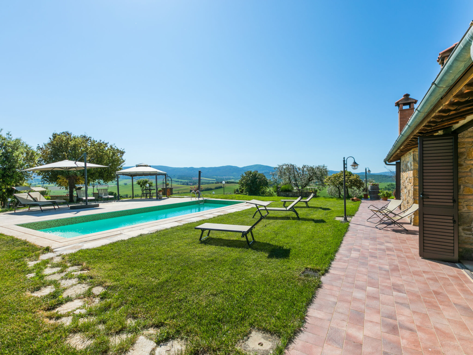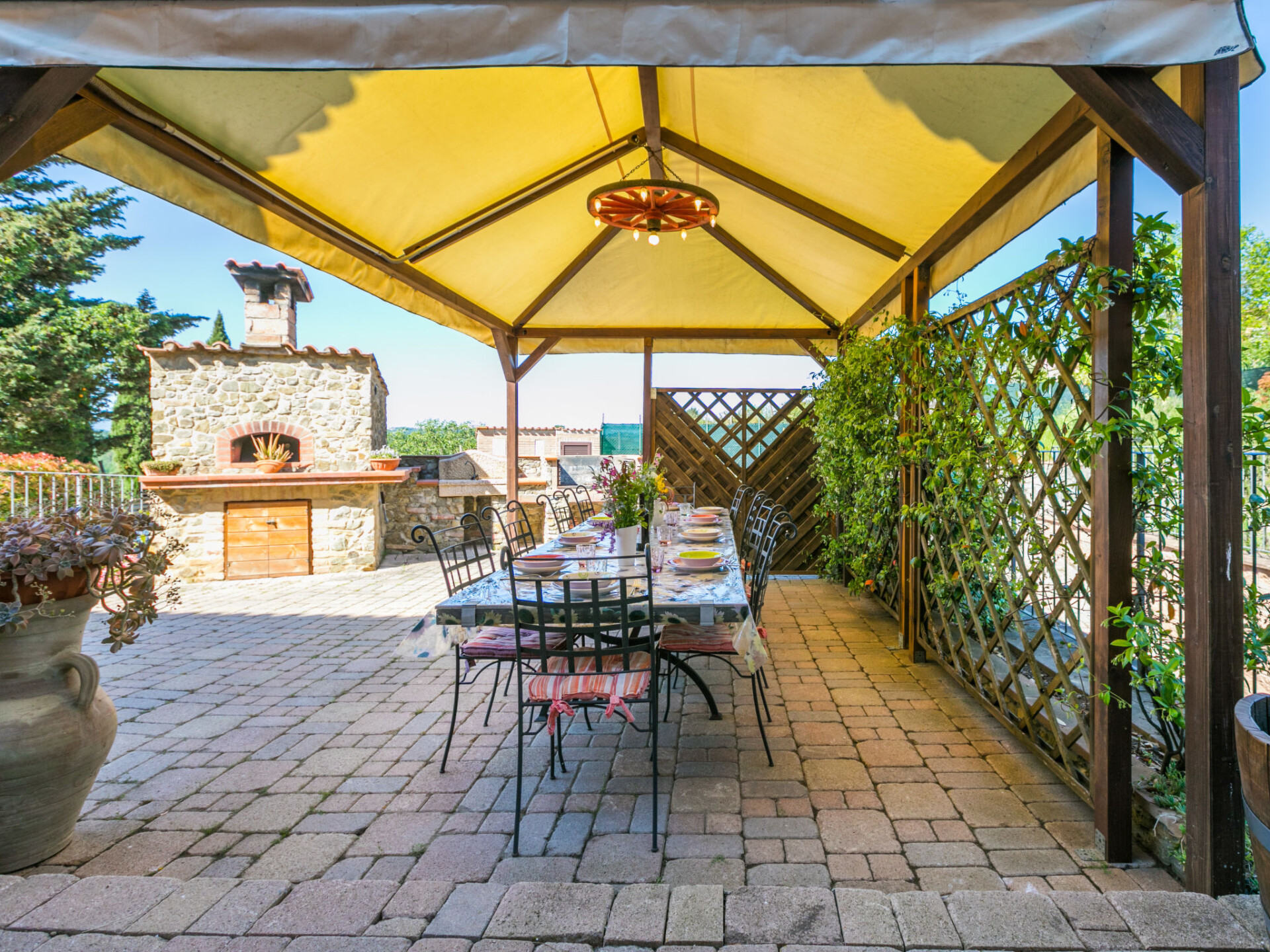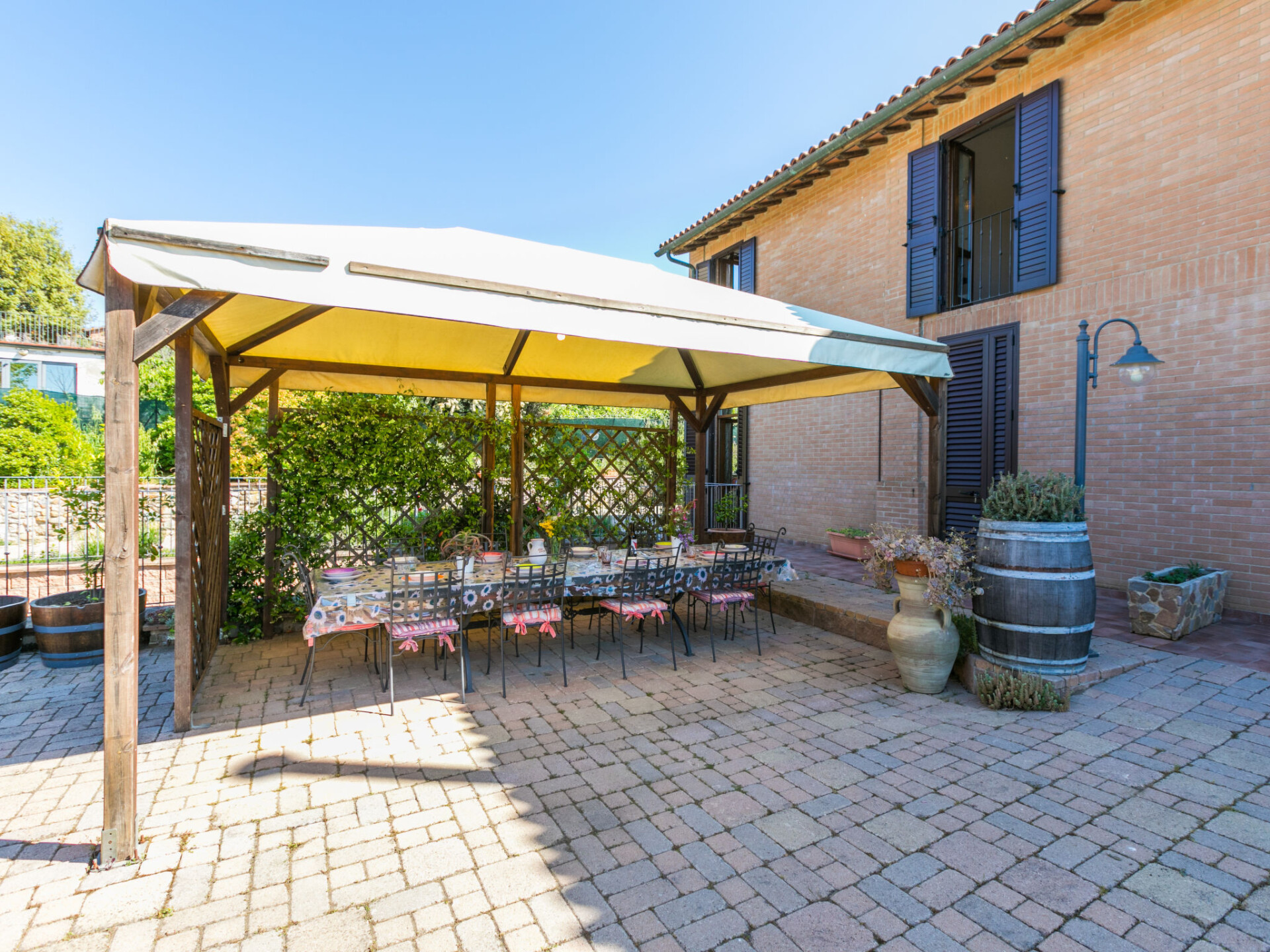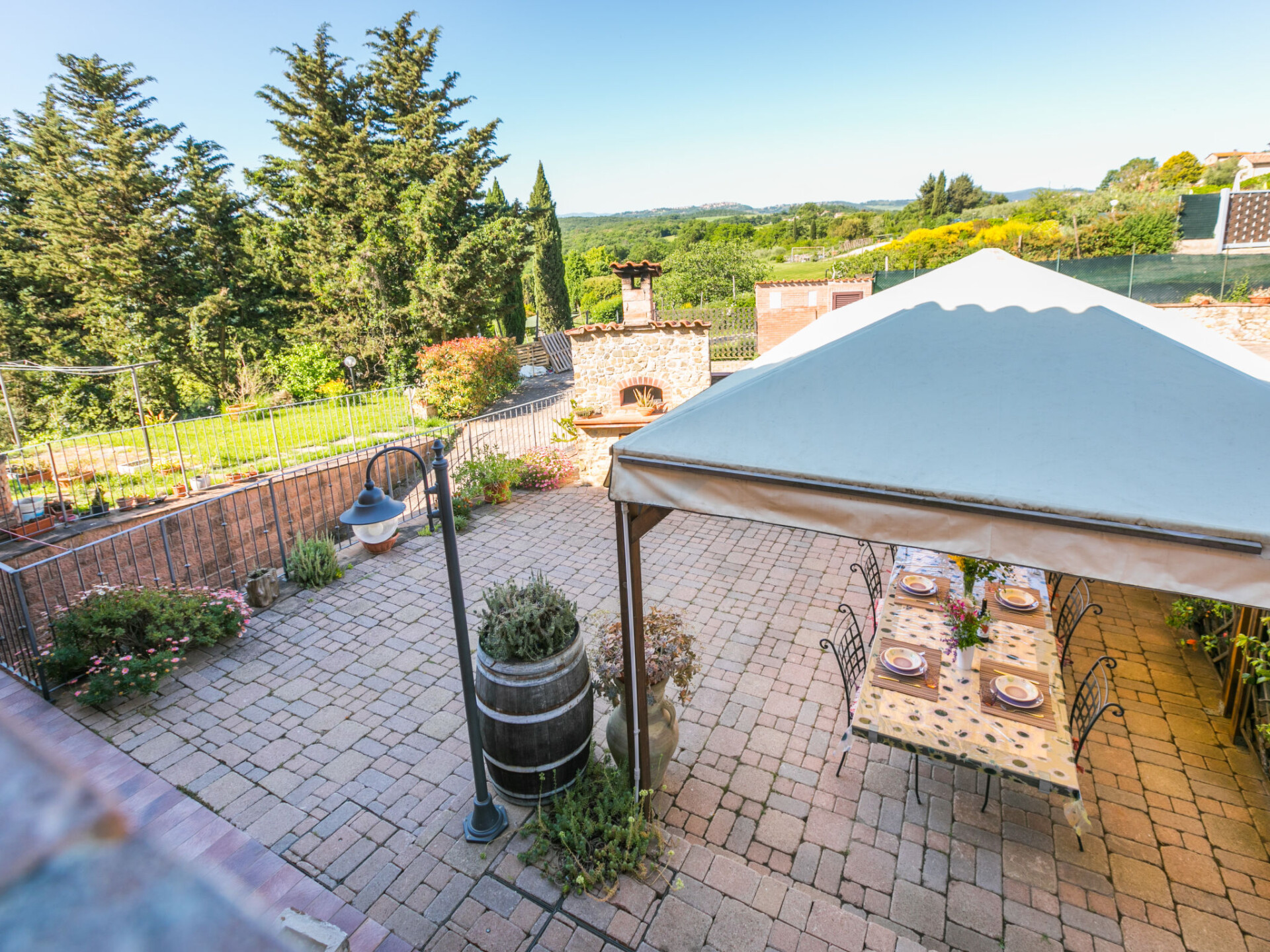 Lano 10 km van Colle di Val d'Elso: Mooi twee onder één kap woning "Metallo", vrijstaand, omgeven door bomen, weiden en velden. In het gehucht Lano, 10 km van het centrum van Colle di Val d'Elsa, 5 km van het centrum van Casole d'Elsa, 25 km van het centrum van Siena, verhoogde ligging tegen een helling. Voor medegebruik: tuin op verschillende niveaus, 1 ha (omheind) met planten en bomen, weide. Voor alleengebruik: openluchtzwembad (10 x 3 m, 140 - 180 cm diepte, seizoensgebonden beschikbaarheid: 15.Mei. - 05.Okt.). Buitendouche, prieel, terras, tuinmeubelen, barbecue, onderhoud zwembad door de eigenaar/tuinman. Toegangsweg (200 m onverharde weg). Parkeerplaats op het terrein. Levensmiddelenwinkel 5 km, supermarkt 10 km, restaurant 5 km, bushalte 1.5 km, treinstation "Poggibonsi" 15 km, zandstrand "Cecina Mare" 67 km. Attracties in de buurt: San Gimignano 24 km, Siena 31 km, Firenze 70 km. Baby uitrusting (incl.). Groepen jongeren uitsluitend op aanvraag. Gesloten residentie met een elektrische deur. Eigenaar woont in apart huisgedeelte.
