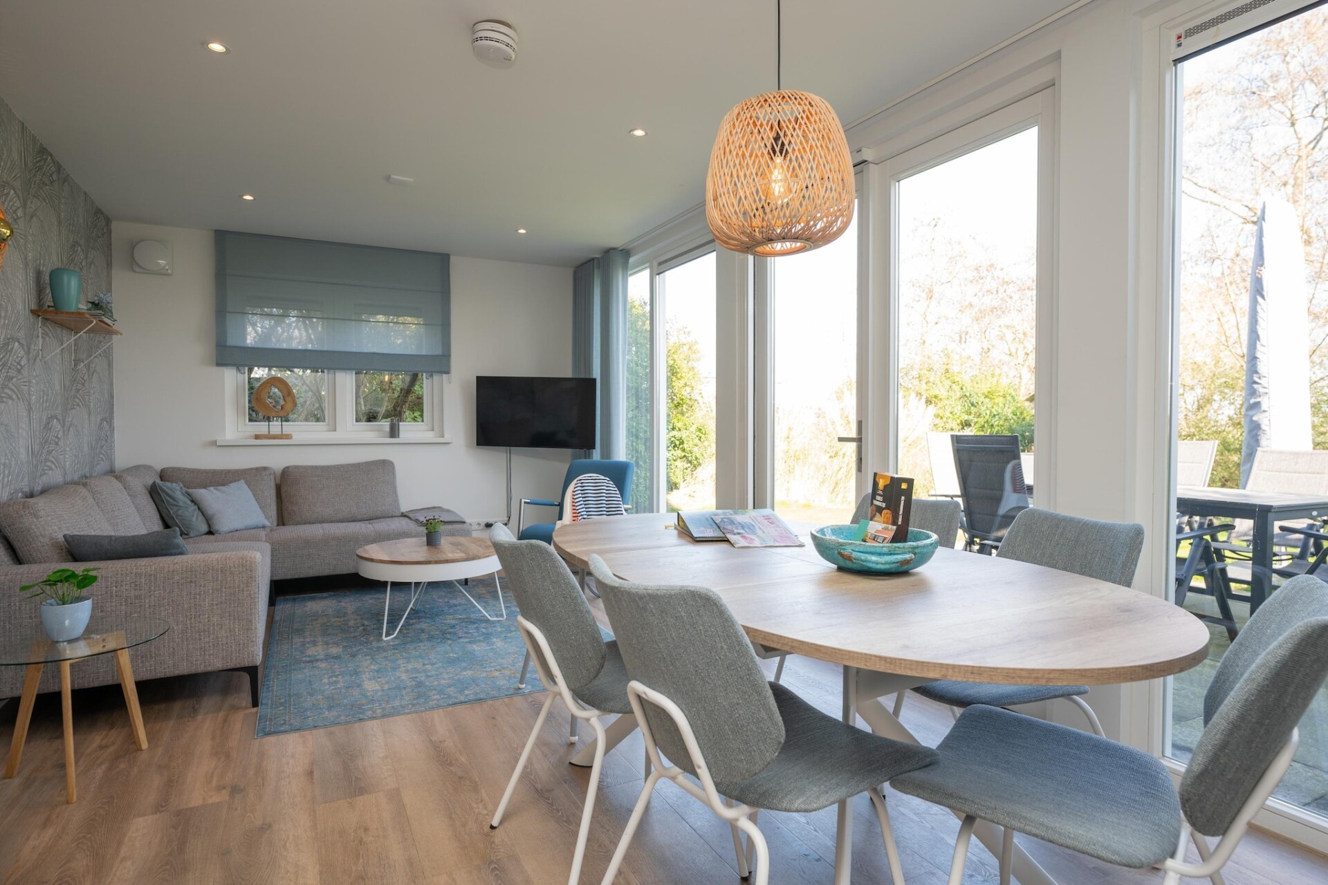 Het huis beschikt over een comfortabele woonkamer en lichte zithoek, smart-TV en openslaande deuren naar het terras.