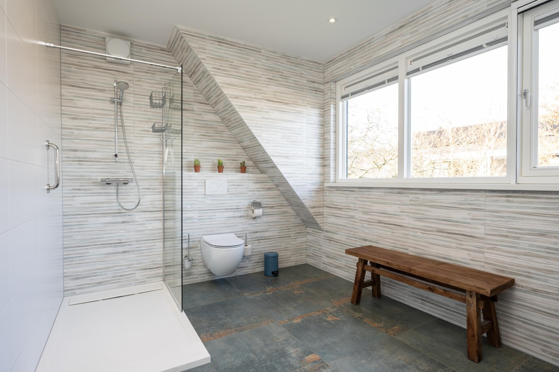 1 slaapkamer op de begane grond met boxspringbedden en direct naastgelegen badkamer, ideaal voor mindervaliden. Twee slaapkamers op de verdieping met boxspringbedden en TV’s. Er is een ruime badkamer op de begane grond met inloopdouche en toilet, rolstoeltoegankelijk. Op de eerste etage is een tweede badkamer met bad/douchecombinatie, dubbele wastafel en toilet. Er is een lift in de woning aanwezig (toegankelijk voor mindervaliden)