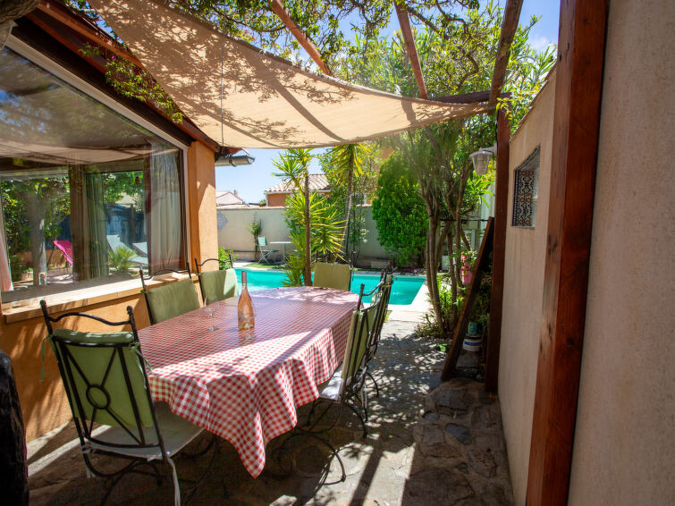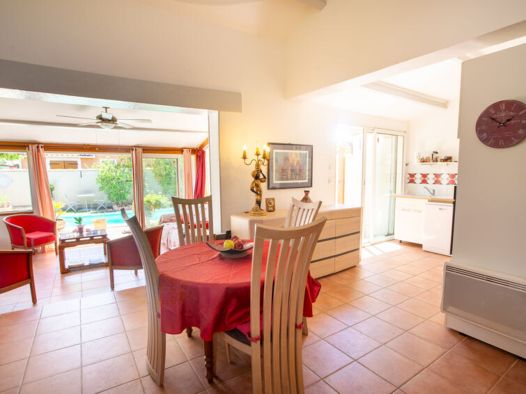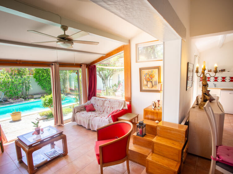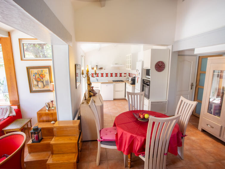 Huis 2-kamers 60 m2. Licht, zeer comfortabel en mooi ingericht: woon-/eetkamer met TV (Flatscreen TV). Uitgang naar het terras. 1 kamer met 1 2-pers bed (140 cm, lengte 190 cm). Keuken (4-pits kookplaat, oven, afwasmachine, broodrooster, waterkoker, magnetron, elektrische koffiemachine). Uitgang naar het terras. Douche, aparte WC. Elektrische verwarming, air-conditioning. Natuurstenen vloeren. Terras 15 m2, prieel 12 m2. Terrasmeubelen, elektrische barbecue. Uitzicht op het zwembad. Ter beschikking: wasmachine, strijkijzer. Internet (Internet (WiFi), gratis). TV alleen FR. Rookmelders. Aanbod door een particulier volgens art. 155, IV van CGI. 83071001251J7