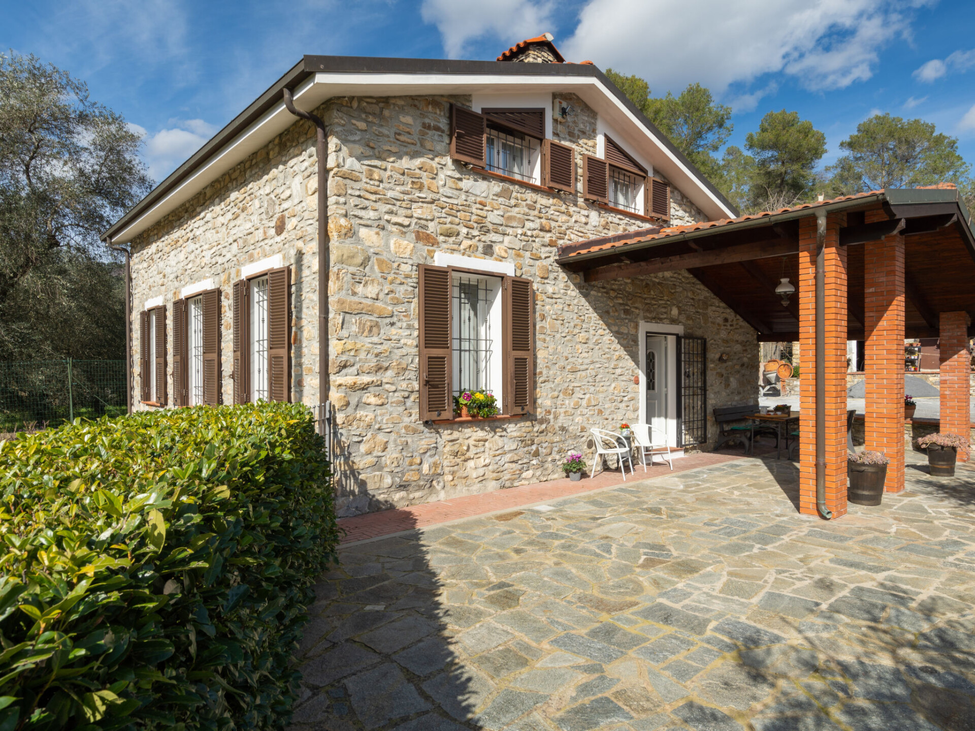 Rustieke eengezinswoning "Miriam", van 2 verdiepingen, vrijstaand. In de wijk San Bartolomeo, 7 km van het centrum van Marina di Andora, 16 km van het centrum van Alassio, 22 km van het centrum van Imperia, 7 km van zee. Voor medegebruik: verzorgde tuin 1.000 m2 (omheind) met gazon en planten. Voor alleengebruik: terrein 250 m2, parkeerplaats op het terrein. Winkel 3 km, supermarkt 5 km, bushalte 6.2 km, treinstation "Marina di Andora" 6.5 km, zandstrand "Marina di Andora" 7 km. Golfterrein (18 holes) 17 km. De eigenaar woont op hetzelfde terrein.