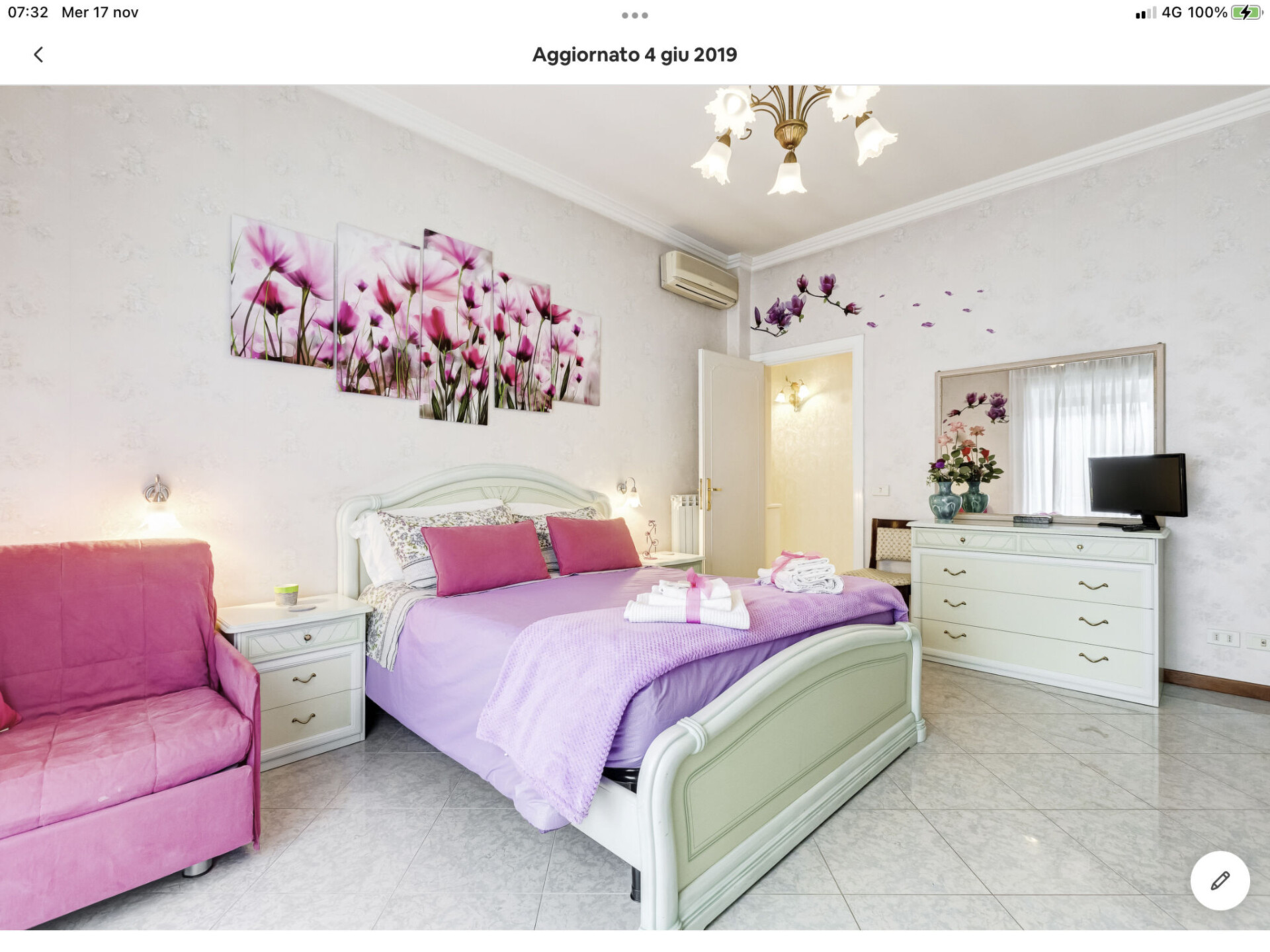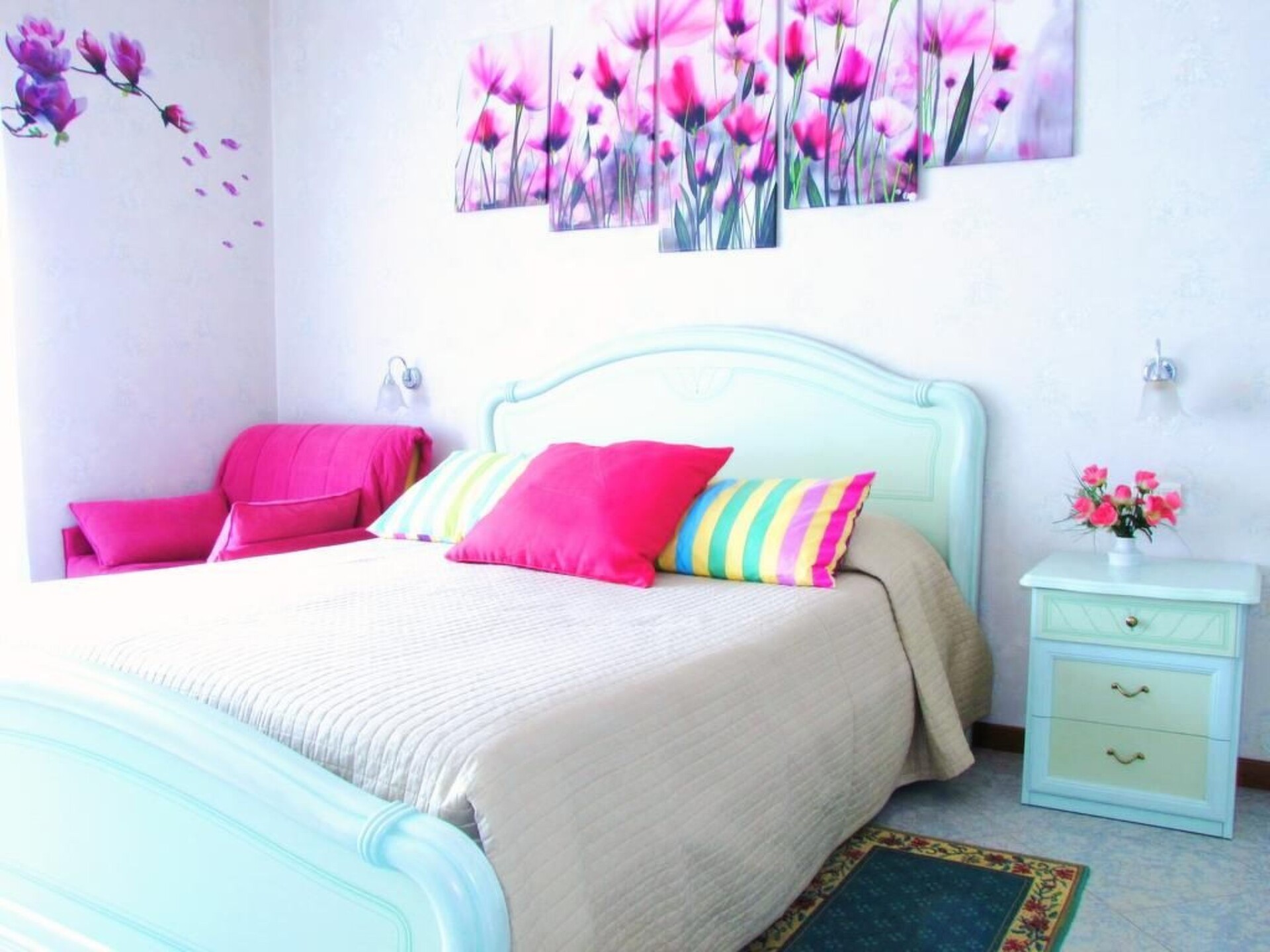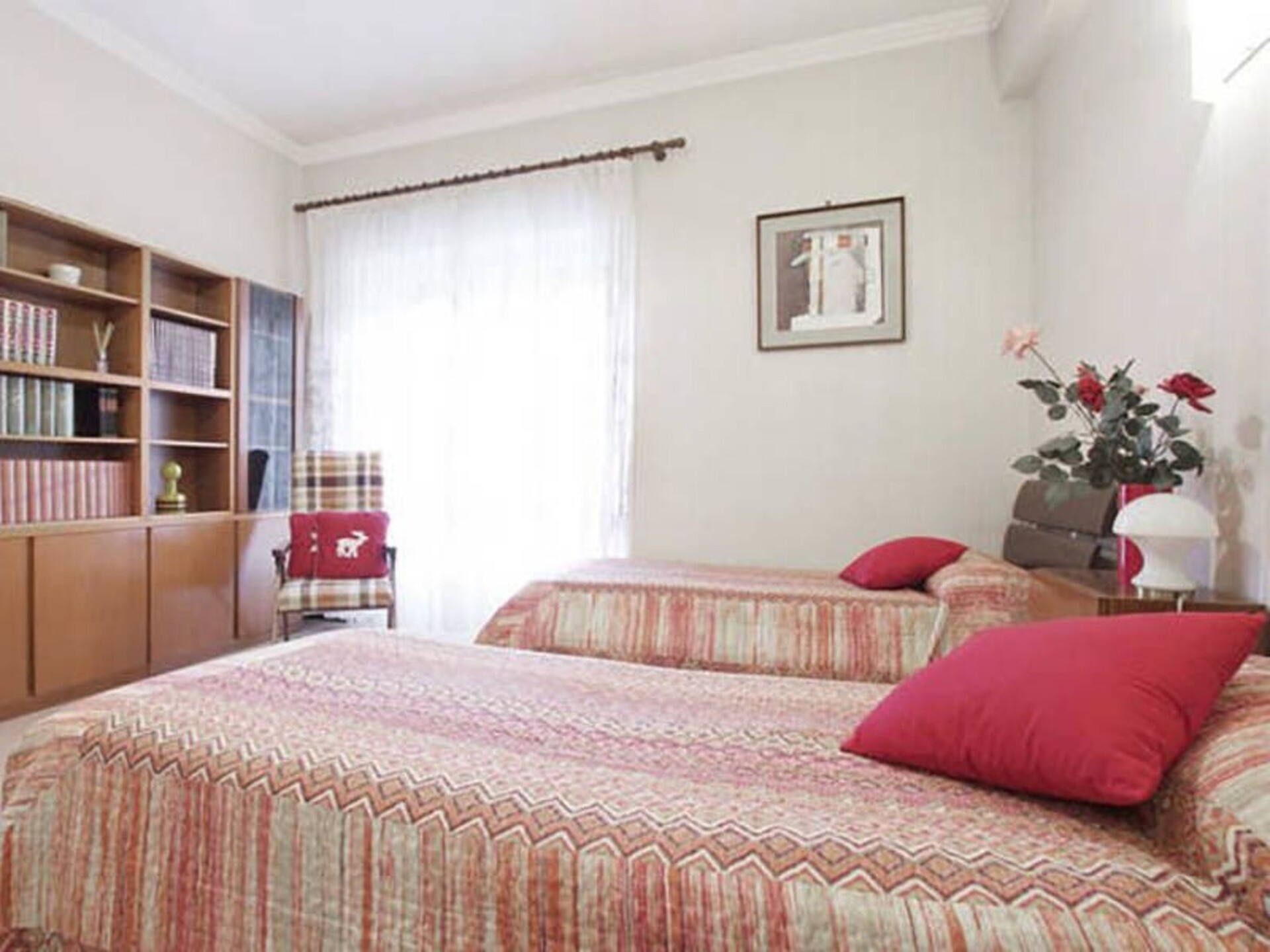 This spacious and bright flat is located on the second floor of a 5-storey building (with lift). It is located in the Aurelio district in the main street leading to St. Peter's, just a 15-minute walk from the Basilica. In total there are 160 square metres at guests' disposal. With its 11 beds the apartment is therefore perfectly suited to accommodate groups or large families.From the living room two large French windows lead onto one of the flat's two balconies.The flat is on one floor and has a large entrance hall, a double living room, a super-equipped kitchen, a laundry room as well as three large bedrooms and two full bathrooms. Two large balconies complete the accommodation. Blue Room: with a king-size bed, a sofa that converts into two comfortable beds, a table with four chairs and a large wardrobe (capacity 4 persons) Red Room: with two single beds, a sofa bed, a desk and an armchair (capacity 3-4 persons) Pink Room Queen-size bed, a large wardrobe, a chest of drawers, an armchair bed and a small armchair (capacity 3 people) The kitchen is equipped with all appliances (microwave oven, electric oven, gas hob, dishwasher, refrigerator, freezer, blender, coffee corner with electric espresso machine, toaster, juicer, electric kettle), herbal teas and coffee, snacks and a table for lunch or breakfast. Bathroom 1: bathroom with shower, toilet, washbasin. Bathroom 2: bathroom with washbasin, bathtub, bidet, wardrobe with nécessaire and hairdryer Living room with 50-inch TV, two sofas, a table that can extend up to 3 metres and various pieces of furniture. The accommodation also includes: iron and ironing board, Wi-Fi throughout the house, double glazing in all the windows, heating and air conditioning everywhereIn the neighbourhood you will find numerous shops, restaurants, supermarkets, pharmacies banks and everything you need during your holiday. The next bus stop is 50 metres away.Children are free if they sleep with their parents. IT058091B9PR7DM7NV