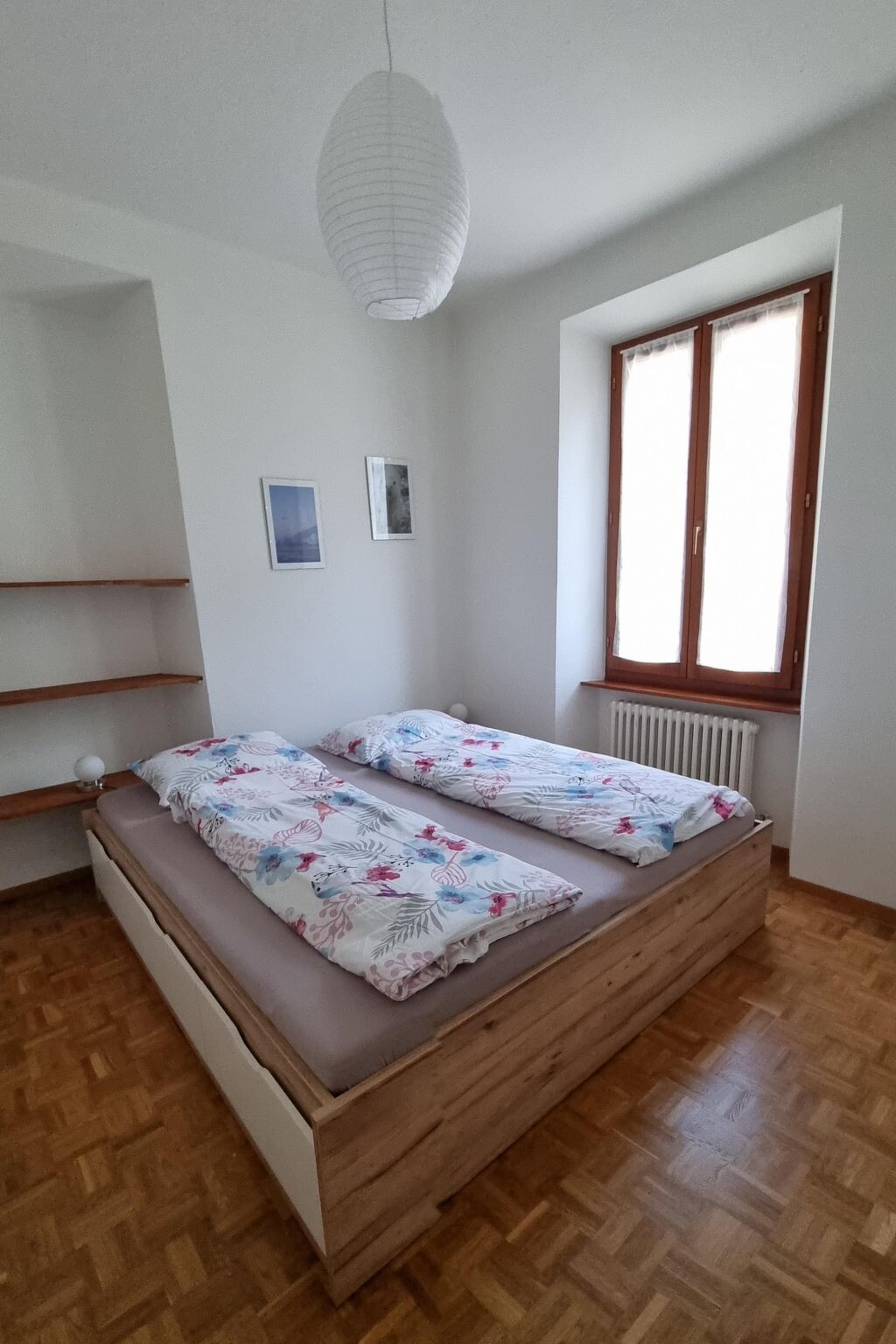 This bright and beautiful 4.5-room penthouse apartment with terrace is centrally located in Gordola (10 minutes from Locarno), within walking distance of shops, the bus station and the railway station.The flat is in very good condition. The building consists of three flats on three floors.The flat consists of:- 4.5-room penthouse with large balconyDescription- Living/dining room with dining table and sofa bed and access to balcony- Fireplace (guests must bring their own wood)- Cable TV- Wi-Fi- Modern, well-equipped kitchen- Dishwasher- Refrigerator with freezer- Ceramic hob and oven- Nespresso coffee machine- Bedroom with 1 single bed (180x200) for 2 persons- Bedroom with 1 single bed (180x200) for 2 persons- Bedroom with 1 single bed (90x200) for 1 person- 1 sofa bed- Bathroom with bath and bidet- Balcony with beautiful view, furnished- Washing machineSmoking is not permitted in the house. Please smoke outside. - Private car park- Playground (100 m)- Bus stop (100 m)- Railway station (850 m)Sporting opportunities in the area: basketball, mountaineering, football pitch, ice skating, golf course, canoeing, climbing, mountain biking, paragliding, cycling, rafting, indoor riding, downhill skiing, sports centre, squash, tennis, water skiing, sailing. NL-3327681