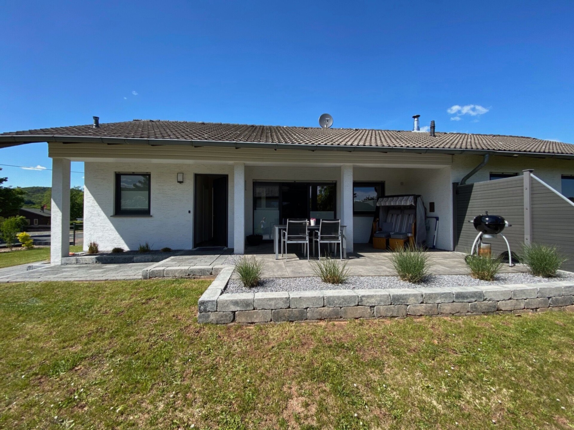 Our holiday home is located in the idyllic Harbshausen, a small district of the national park community of Vöhl, directly on the southern shore 300 metres above sea level high above the Edersee. The close proximity to Lake Edersee offers water lovers of all ages many opportunities for swimming, splashing, surfing, diving and water skiing. Harbshausen - "The gateway to the Kellerwald-Edersee National Park" - is the ideal starting point for hikers and cyclists and has a very well-developed network of hiking and cycling trails. Shopping facilities, a doctor and dentist can be found in Vöhl, approx. 12 km away.The completely fenced property with its partially covered terrace invites you to linger.If you're looking for pure relaxation, then you've come to the right place! Our lovingly furnished holiday home, which was completely renovated from 2018 to 2019, offers everything you need for a great holiday. Whether on the covered south-facing terrace with wicker beach chair and barbecue in fine weather or in the open-plan living/cooking area, which with its Smart TV and WiFi leaves nothing to be desired even in bad weather - you'll feel at home here.