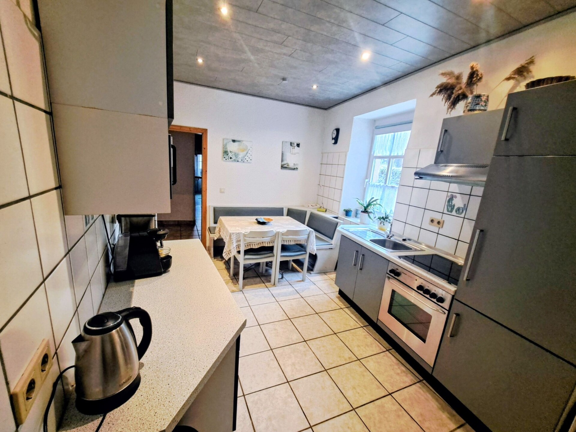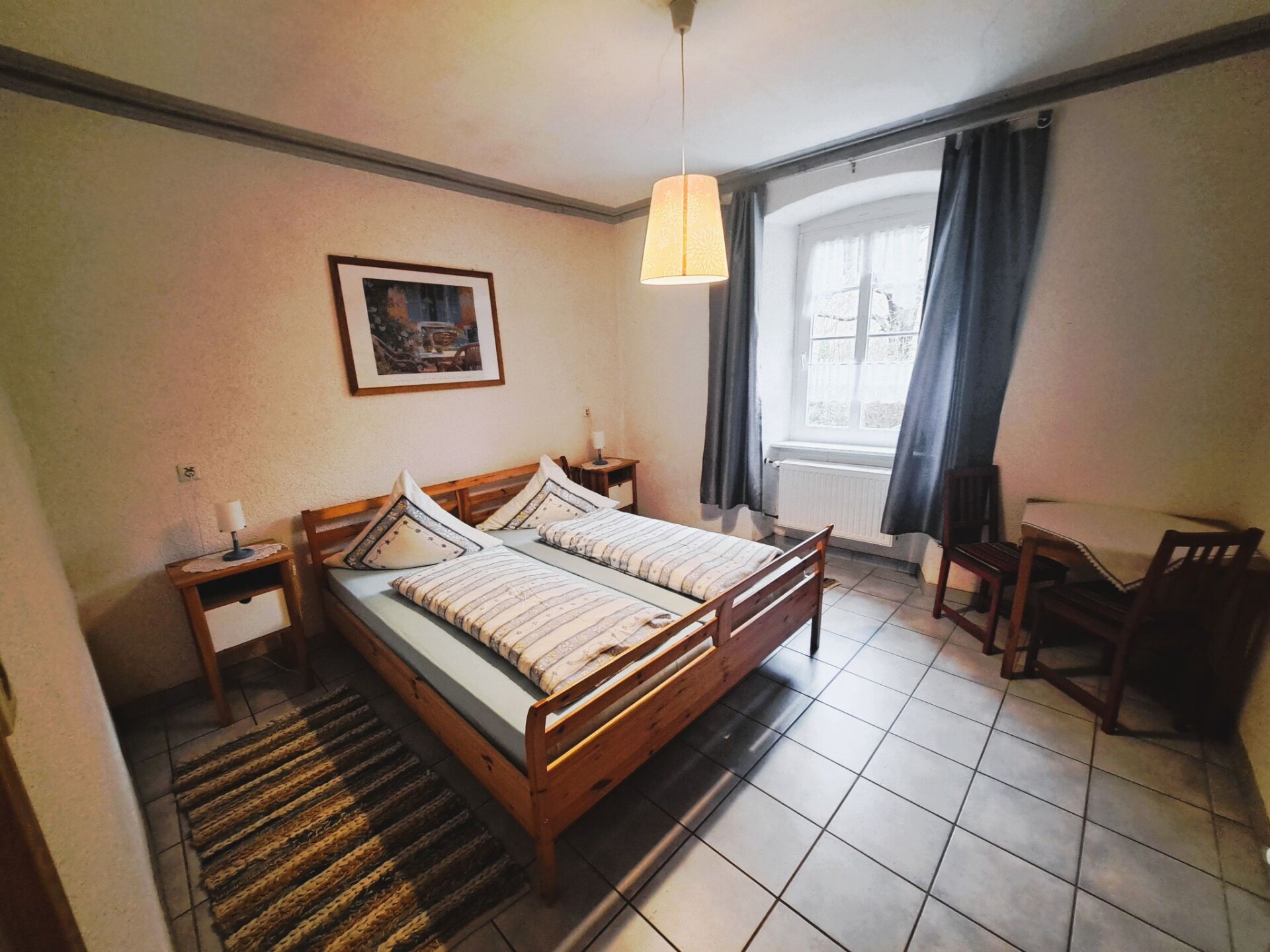 Maximaal 3 huisdieren/honden toegestaan. The apartment enjoys a tranquil location surrounded by a garden. All in all the accommodation provides the right atmosphere for finding peace and quiet and recharging one’s batteries for everyday life. It is a spacious holiday apartment on the ground floor with a separate entrance, consisting of two double bedrooms and a big living room with additional beds. There are also two bathrooms and a fully-equipped kitchen. Wireless Internet access is available. The apartment has oil central heating and the beds are double beds (180 x 200cm, two mattresses). The apartment has a garden with seating. Parking spaces are available. Neumagen-Dhron – the oldest wine-growing town in Germany – is between Trier and Bernkastel-Kues in the Moselle Valley, surrounded by vineyards, close to Luxembourg and the Eifel maars and the Hunsrück. Those interested in history can walk on the trail of Romans. Or you can stroll along little shops, visit restaurants and wine bars. There are pleasant little oases everywhere, for example while enjoying a glass of Moselle wine. It is 1000 metres to shops and 100 metres to a restaurant.