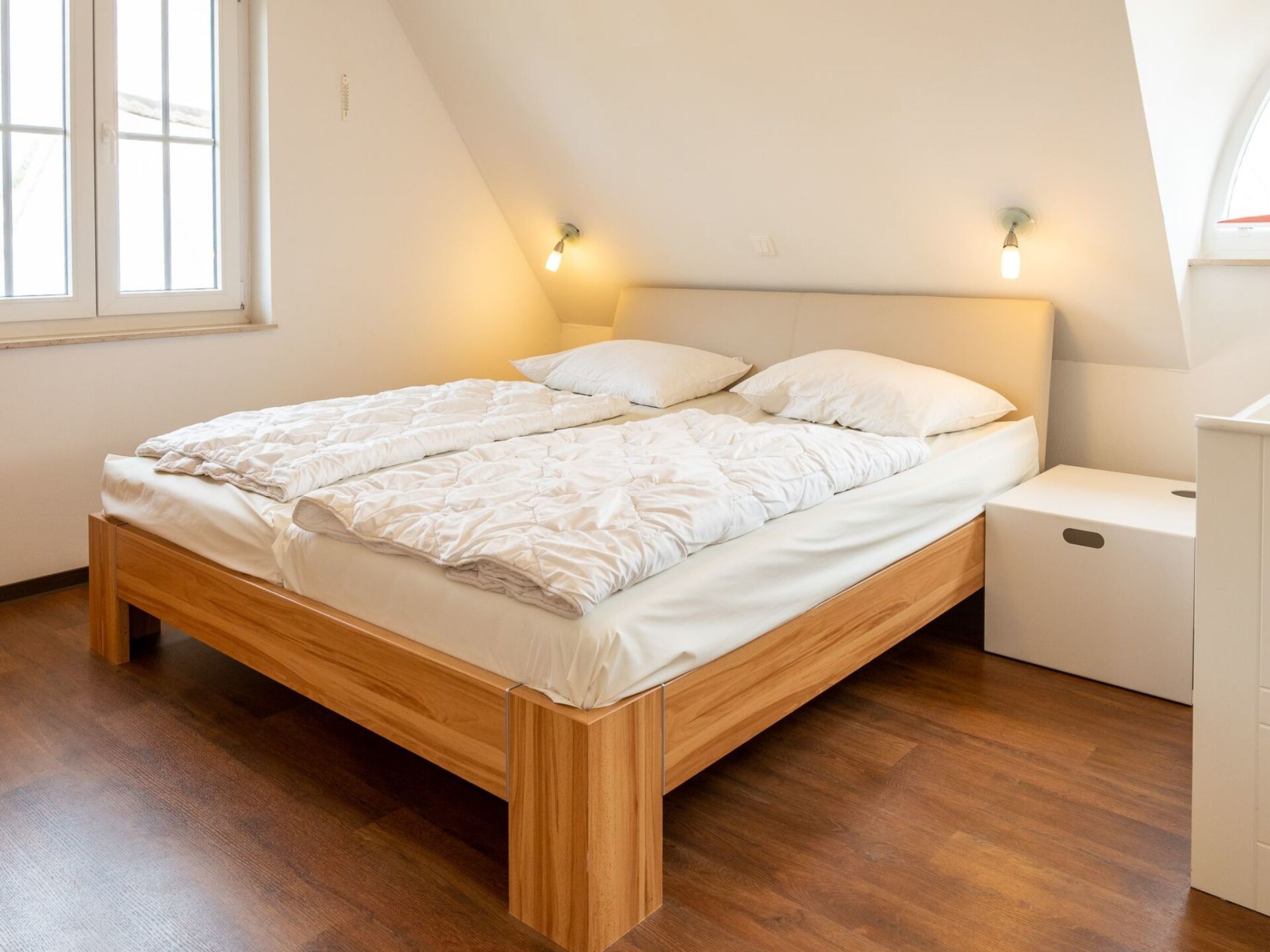 The Ostseepark Blaue Wiek is located directly on the Mecklenburg Baltic Sea coast between the old Hanseatic cities of Lübeck and Wismar, close to the settlement of Wohlenberg near the Baltic Sea resort of Boltenhagen. In addition to the great recreational value of the idyllic village itself, the central location on the Baltic Sea coast makes your holiday home so attractive.This house has a table with 10 seats, which is protected from the sun by an awning. There are also two sun loungers, a whirlpool and a beach chair on the property. The covered outdoor pool (use from April to early November), which is located in the immediate vicinity, can be used by all guests, the same applies to the sauna. An adventure playground (fenced in) and a large ball playground offer children from 2 to 80 plenty of opportunities to let off steam.The EXCLUSIVE house with its thatched roof offers North German living flair combined with modern comfort. With approx. 135 m² of usable space including terrace, there is enough room for 10 people to make their holiday dreams come true. The high-quality furnishings naturally also include two bathrooms/showers, sauna, a modern fitted kitchen, dishwasher, microwave, oven, flat-screen TV with soundbar and radio. On the terrace there is a barbecue and garden furniture, as well as a whirlpool (booking on site) and a beach chair. A handcart for the beach can be hired if required. The washing machine has a coin-operated machine and the price quoted is for 8 people. Additional persons must be booked. The house has 10 beds.Fireplace Sauna Pool Near the beach Own beach chair