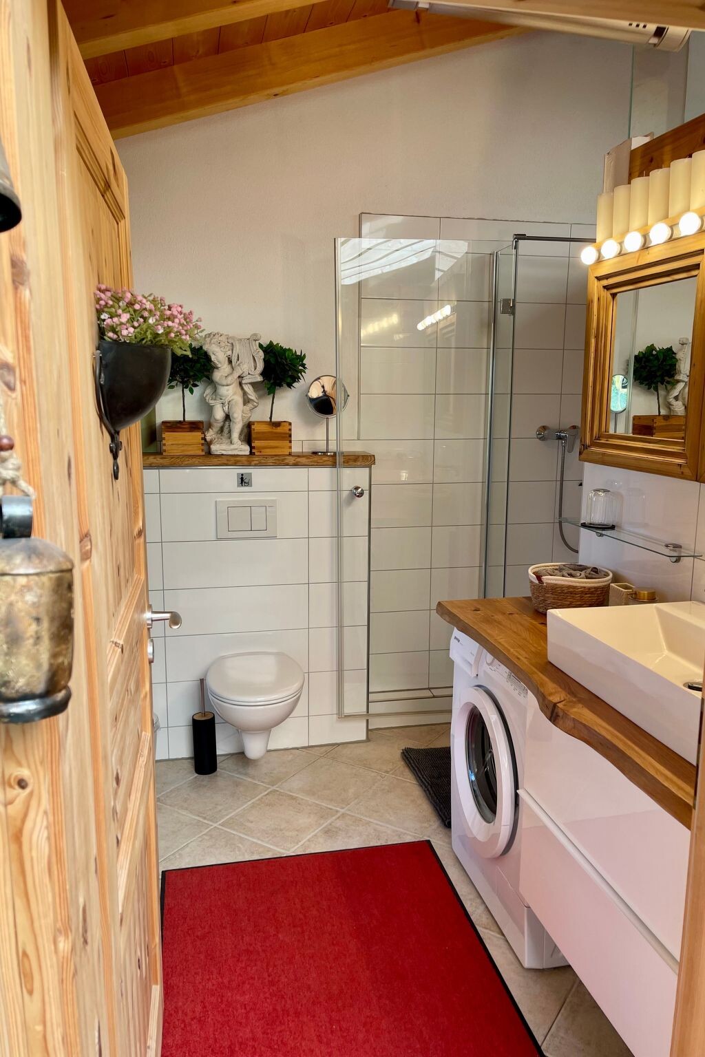 Maximaal 2 huisdieren/honden toegestaan. Discover your own personal holiday idyll on a spacious 2,500 sqm property in Dietramszell, Bavaria. With its privileged location between Lake Tegernsee and Lake Starnberg, not far from the Isar river and right on the edge of a nature reserve, this detached holiday home for two is the ideal base for nature lovers and those seeking relaxation. Your holiday home guarantees peace and privacy with its own parking space and access.Inside, you will find a cosy ambience that invites you to relax. The studio apartment is well equipped with amenities to make your stay comfortable. In addition to the option of self-catering thanks to the kitchen equipment with coffee machine, dishwasher, kettle and mini oven, you can look forward to a peaceful night's sleep in a comfortable box-spring bed. There are also practical details such as a washing machine for your sole use and a fan for hot summer days.The outdoor area contributes significantly to the recreational value of your stay. Enjoy relaxing hours on your own terrace, which invites you to barbecue, or explore the wild and romantic garden, which is available for exclusive use. As a special highlight, our alpine meadow awaits you 1 km away, which impresses with a fantastic panoramic view of the Bavarian and Tyrolean Alps - perfect for unforgettable barbecue evenings in the open air.The location of the holiday home is ideal for long walks and exploratory tours. The nearest village centre of Dietramszell is just 250 m away, which will delight you with its charming Bavarian flair. The proximity to nature reserves and the Isar river within walking distance offer numerous opportunities for nature lovers and active guests.In this holiday home in Dietramszell, you will find the perfect retreat for a contemplative time for two. Whether you want to explore nature, enjoy the peace and quiet or simply switch off - there is something for everyone here. Look forward to unforgettable moments in your own piece of paradise in the midst of Bavarian beauty.