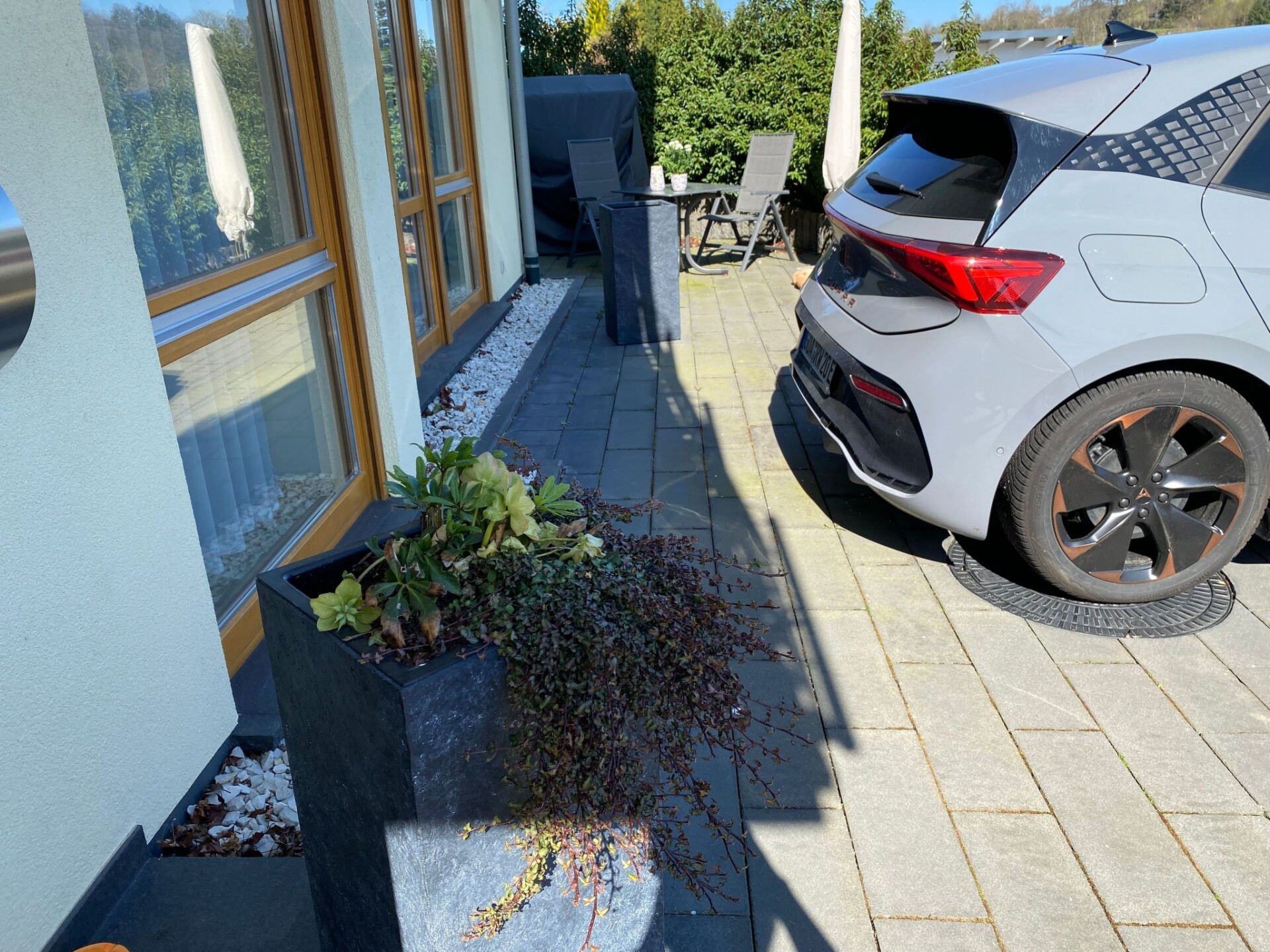 mit Parkplatz und Terrasse