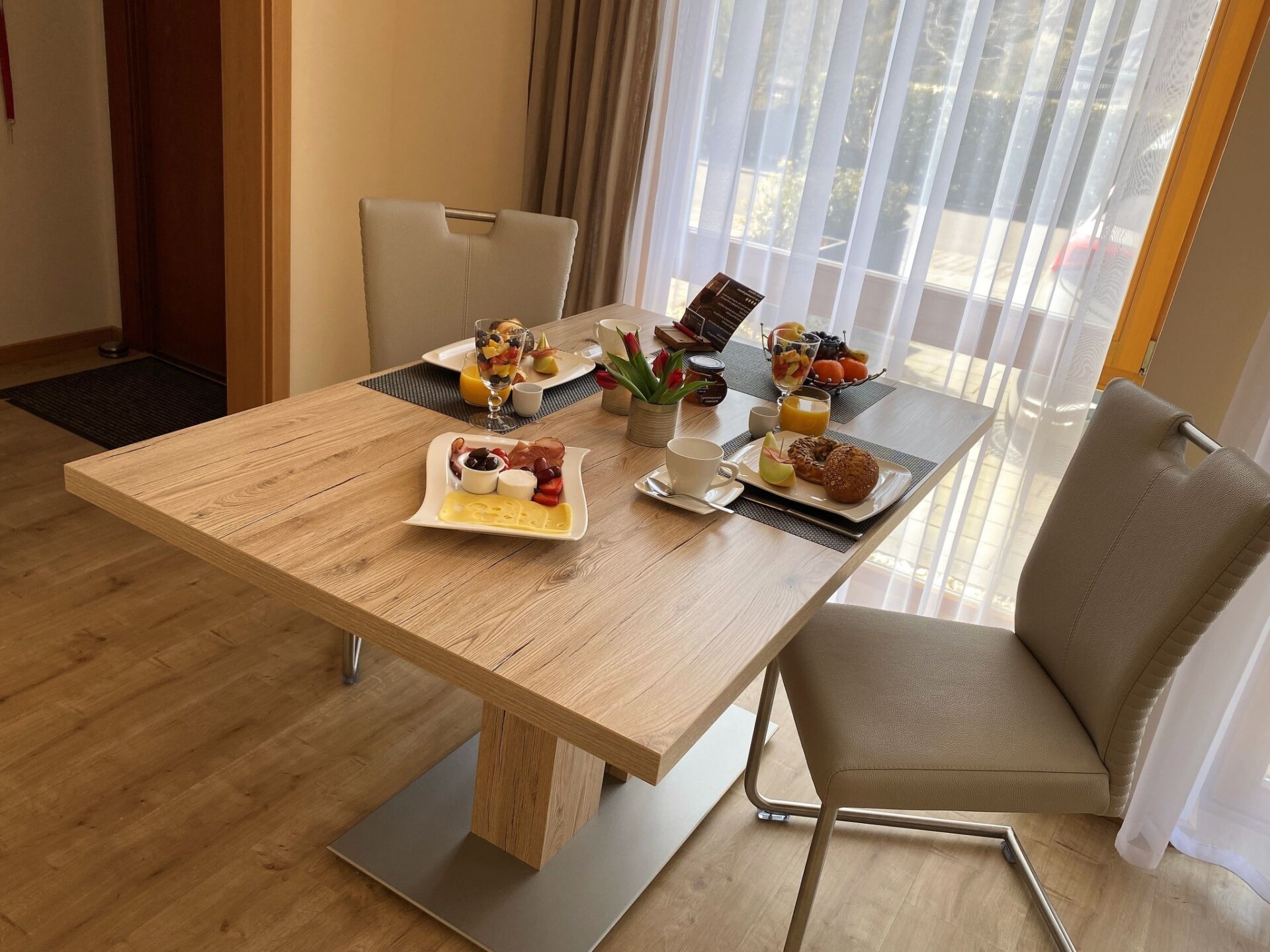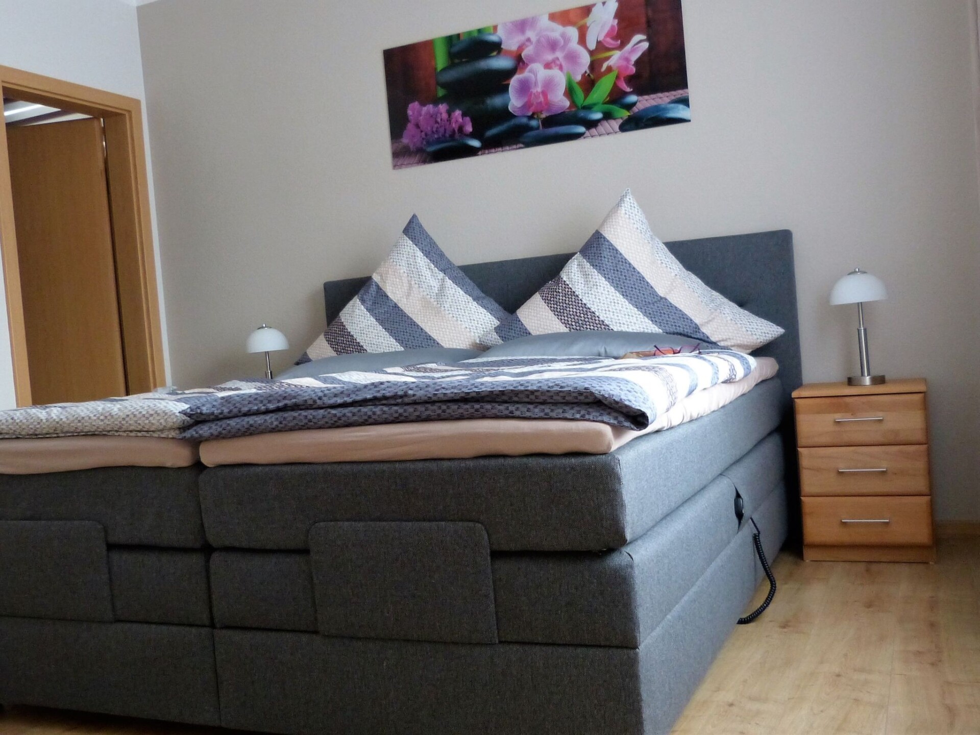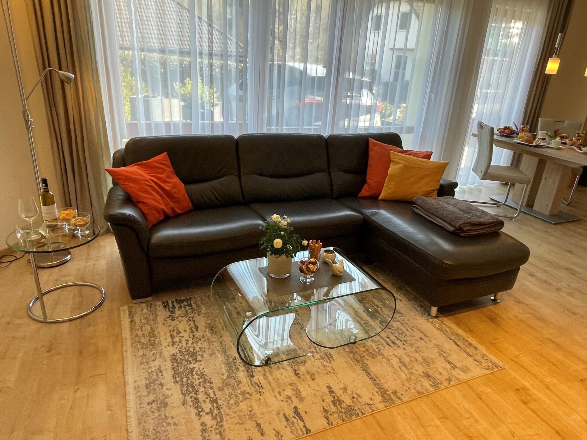 Your holiday home is located in Boppard-Buchenau - a quiet district of BoppardThe Fewo Rheinwein is the ideal accommodation for hiking and cycling.our apartment is not far from these 7 dream loops:Elfenlay, Mittelrhein-Klettersteig, Ehrbachklamm, Rheingold, Fünfseenblick, Hasenkammer and Marienberg.we have the certificate "Qualitätsgastgeber Wanderbares Deutschland".The modern fitted kitchen is equipped with branded built-in appliances, small appliances and stylish crockery and has a spacious dining area with comfortable chairs. There is a cosy dining/living area with a leather seating area and a modern shower room.In the bedroom, an electrically adjustable box-spring bed ensures sleeping comfort and pure relaxation, and a wardrobe with sliding doors and mirror is available for your wardrobe.Facilities in detail:OutsideGroomed outdoor facilities, garden furniture, parasol, beach chair, barrier-free, car park directly in front of the FEWO, paved terrace, storage space for your bicycles and storage space for e-bikes in the property free of charge and e-charging possibility for your car - for a fee - directly at the property. Living area:Dining table with 4 chairs, coffee table, leather couch, side table, modern wall unit, floor lamp.KitchenModern fitted kitchen with granite worktop, oven with top and bottom heat and convection, separate freezer compartment, dishwasher, coffee machine and on request Nespresso capsule machine with milk frother, toaster, kettle, egg cooker, Bosch food processor (on request), dishcloths and tea towels. Sanitary facilitiesModern barrier-free shower room with rainforest shower, washbasin, illuminated mirror, towel dryer, WC, towels, washing machine. Sleeping areaBedroom with electric box-spring bed (0.90m x 2m, 4-door wardrobe, hairdryer, maco satin or jersey bed linen, 2-4 towels and 1 shower towel per person, roller blinds. Extra duvets and microfibre blankets are available in the wardrobe. EntertainmentInternet - free of charge, W-Lan, CD player, hi-fi system with USB input, radio, LCD/LED satellite TV (internet-enabled).Outdoor areaMaintained outdoor facilities, garden furniture, parasol, beach chair, barrier-free, car park directly in front of the FEWO, paved terrace, storage space for your bicycles and storage space for e-bikes in the property free of charge and e-charging facility (22 KW) for your car - for a fee - directly at the property.The loading and unloading of luggage is convenient and only with 1 step directly at the holiday flat possible.your bicycles can be safely stored in the garage and e-bikes can also be charged.there is also space for the bike rack during your stay if you wish.Special featuresA bottle of wine from the Bopparder Hamm and a jar of home-made multi-fruit jam will be waiting for you on your arrival.the coffee machine is ready to make your coffee at the touch of a button.the Rheinwein apartment offers a number of services.you can book breakfast in a partner hotel in Boppard for a fee.if you would like this service, please let us know and we will book breakfast for you.SurroundingsBoppard on the Rhine, "the city of possibilities". The former imperial town of Boppard is an independent town in the UNESCO World Heritage Site "Upper Middle Rhine Valley" in the Rhine-Hunsrück district in Rhineland-Palatinate. The town is a state-recognised tourist destination and is characterised by winegrowing. The region is simply something for everyone, offering a wide variety of leisure activities. Hiking tours open up the Rhine valley and the Hunsrück heights. The Rheinsteig (on the right bank of the Rhine) takes you from Wiesbaden to Bonn, while the RheinBurgenWeg (on the left bank of the Rhine) stretches through the Middle Rhine Valley from Bingen to Remagen. The Rhine Cycle Path runs along both sides of the Rhine and offers cyclists of all fitness levels a suitable route. But Boppard also has a lot to offer culture lovers. You will encounter over 2000 years of cultural history. Or discover the castles and palaces or historical monuments of the region with a glass of top-class wine.holiday destination Our apartment is not far from these 7 dream loops: Elfenlay, Mittelrhein-Klettersteig, Ehrbachklamm, Rheingold, Fünfseenblick, Hasenkammer and Marienberg.we have the certificate "Qualitätsgastgeber Wanderbares Deutschland".