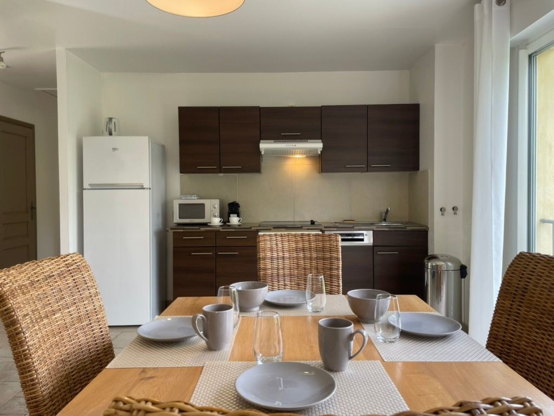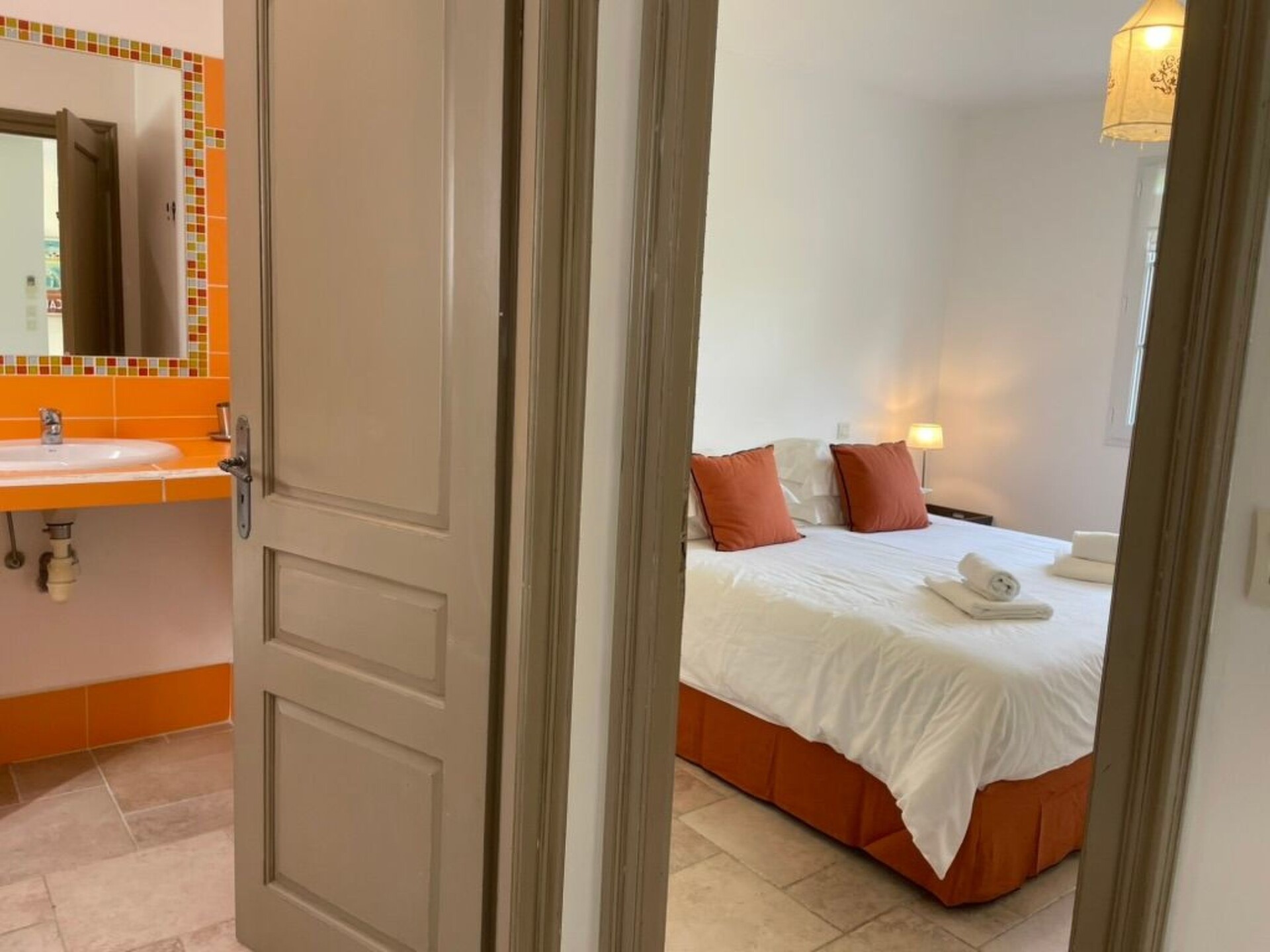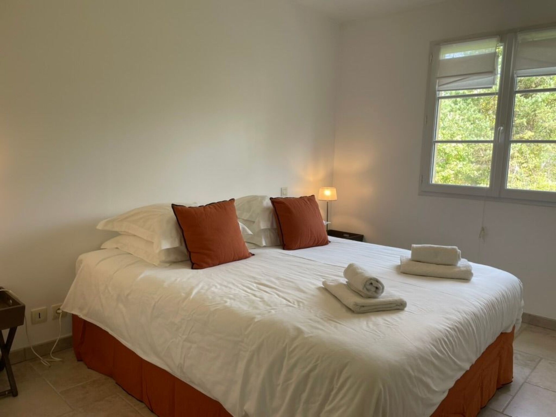 Fully equipped, air-conditioned 50m2 flat with private garden and terrace, SWIMMING POOLThe bedroom has a double bed (160*200) and a wardrobe. The sofa bed can sleep 2 people (160*200).The living room, dining room and kitchen create a spacious living area of around 27 m², which opens out onto the pine forest. The dining room is equipped with a 100 x 100 oak table and 4 chairs.the flat faces north-south and offers a view of the pine forest and a slope of Mediterranean plants. Each flat has been carefully decorated and equipped with LCD TV, reversible air conditioning, DVD player, Wi-Fi internet access, dishwasher, fridge, freezer, oven and 4-burner hob.Additional services:Each flat has a parking space, household linen (bed linen and towels) and access to a shared laundry room (washing machine, tumble dryer, iron and ironing board).WC and bathroom are separate. The bathroom has a bath. 53018552900019