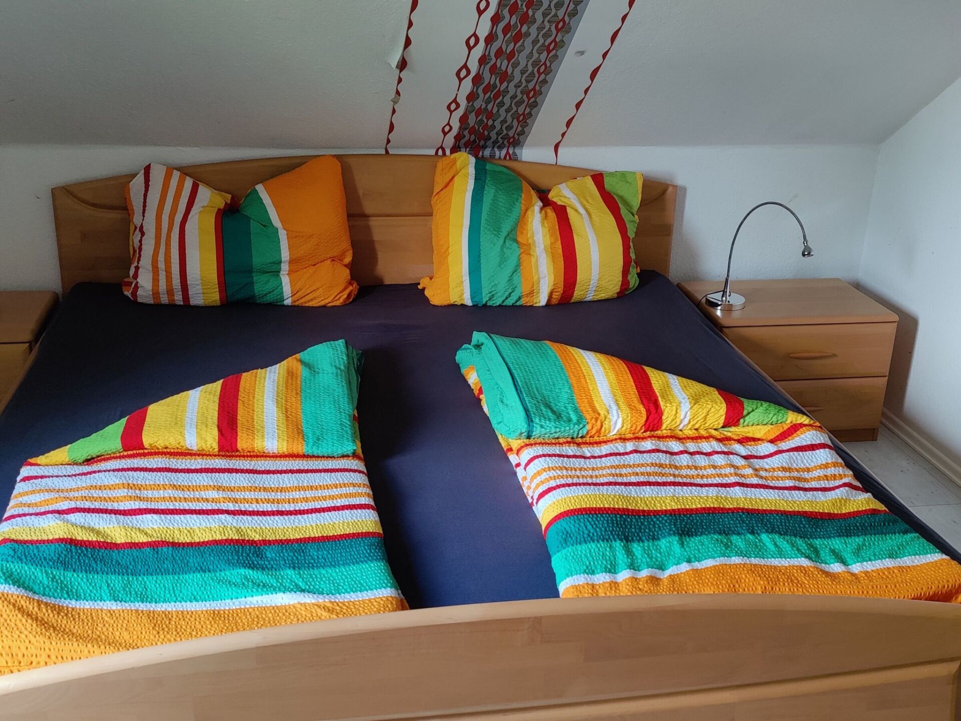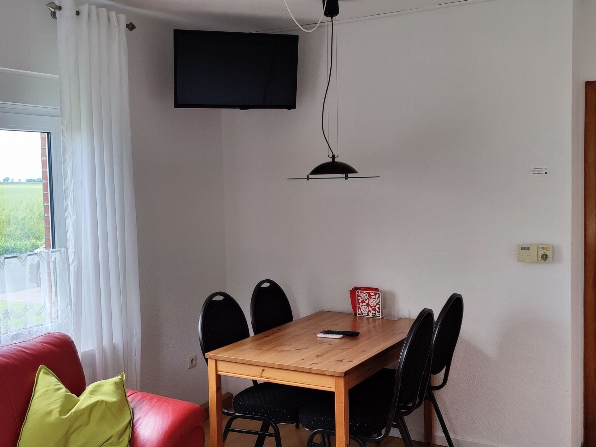On the ground floor you will find a bedroom with a large double bed, TV and reading corner for cosy hours with a good book. There is a living room with a corner sofa, dining area and TV. There is also a DVD player and a stereo system. A kitchen with dishwasher, microwave, coffee machine, toaster, fan-assisted ceramic hob, fridge and extractor bonnet is ideal for cooking and eating. There is a dining area for two for cosy breakfasts for two. There is also a bathroom with walk-in shower and washing machine. The toilet is separate. There are two bedrooms on the first floor. One has a bed measuring 1.80 x 2 metres and a television. The other room has a bed measuring 1 x 2 metres and 1.4 x 2 metres. It also has a television. Upstairs you will find a second bathroom with shower and WC for the upper guests. Although there is sleeping accommodation for six people, the house is only rented out for up to five people. This gives everyone the opportunity to find their own individual place. Small dog by arrangement. Bicycles for hire. 200 m² are fenced. All bedrooms and the living room have a TV.There is a garden with terrace and seating furniture, as well as a car park. The house has a bathhouse with wellness area. You can relax and unwind in the sauna or the 6-person whirlpool even in bad weather. The bathhouse is also used by guests from house 2.There is an extra charge for using the sauna and whirlpool. The whirlpool can only be booked for the entire stay. Guests who wish to use our sauna must bring their own sauna towels. The sauna and whirlpool are generally available all year round. Although the sauna and whirlpool are regularly maintained and checked, it is theoretically possible for something to break. We would therefore like to point out that there is no legal claim to the sauna and whirlpool. Please note that pets are not allowed on the first floor.There are restaurants and shops in the nearby village, about four kilometres away. Please bear in mind that the house is located in a rural area. There can and will be agricultural work around the property in summer. These activities can lead to unfamiliar noises and odours. There is a video camera on the grounds of the holiday home. This monitors activities when the house is unoccupied. After repeated break-in attempts, this preventative measure seems sensible to us.