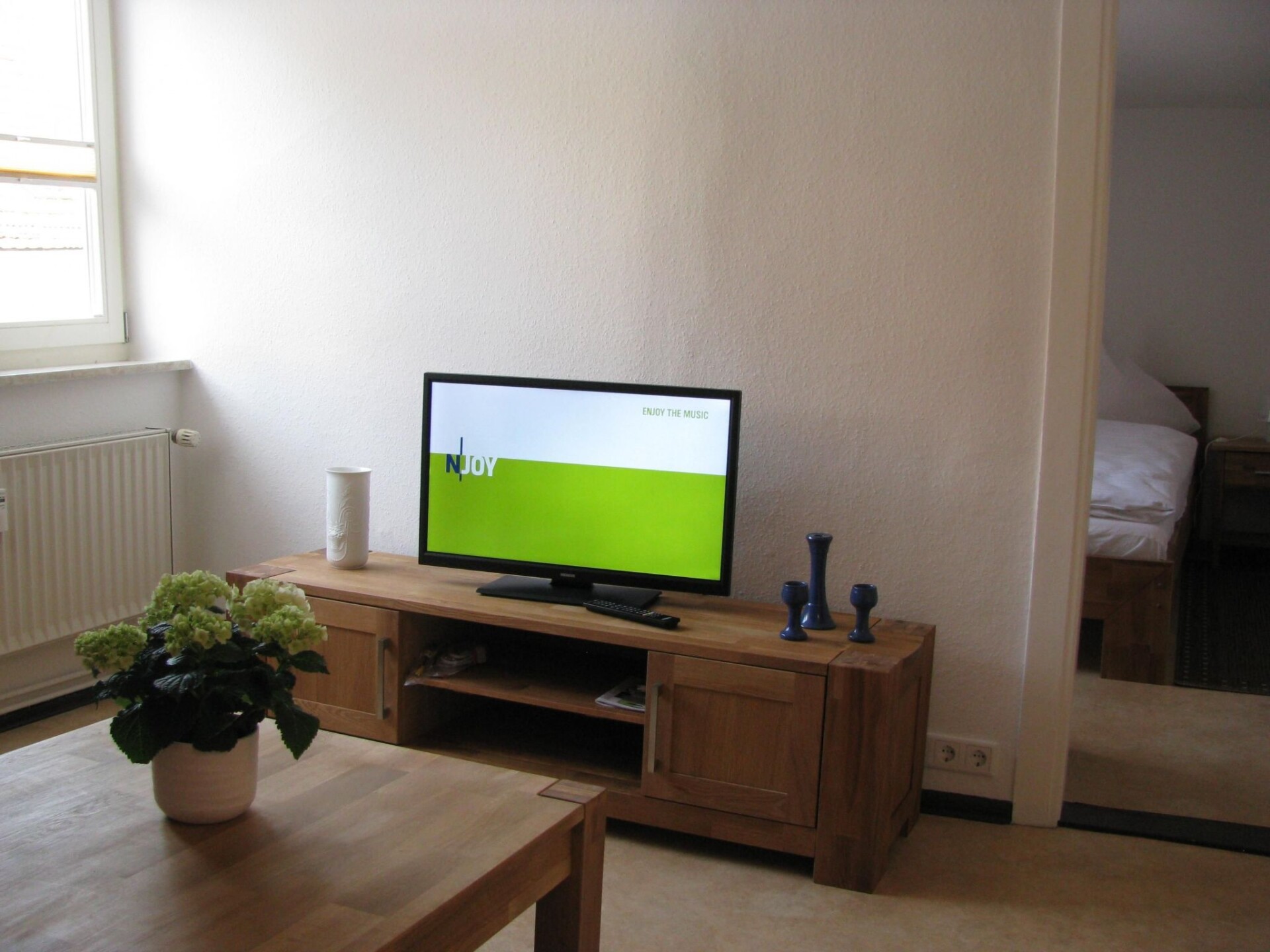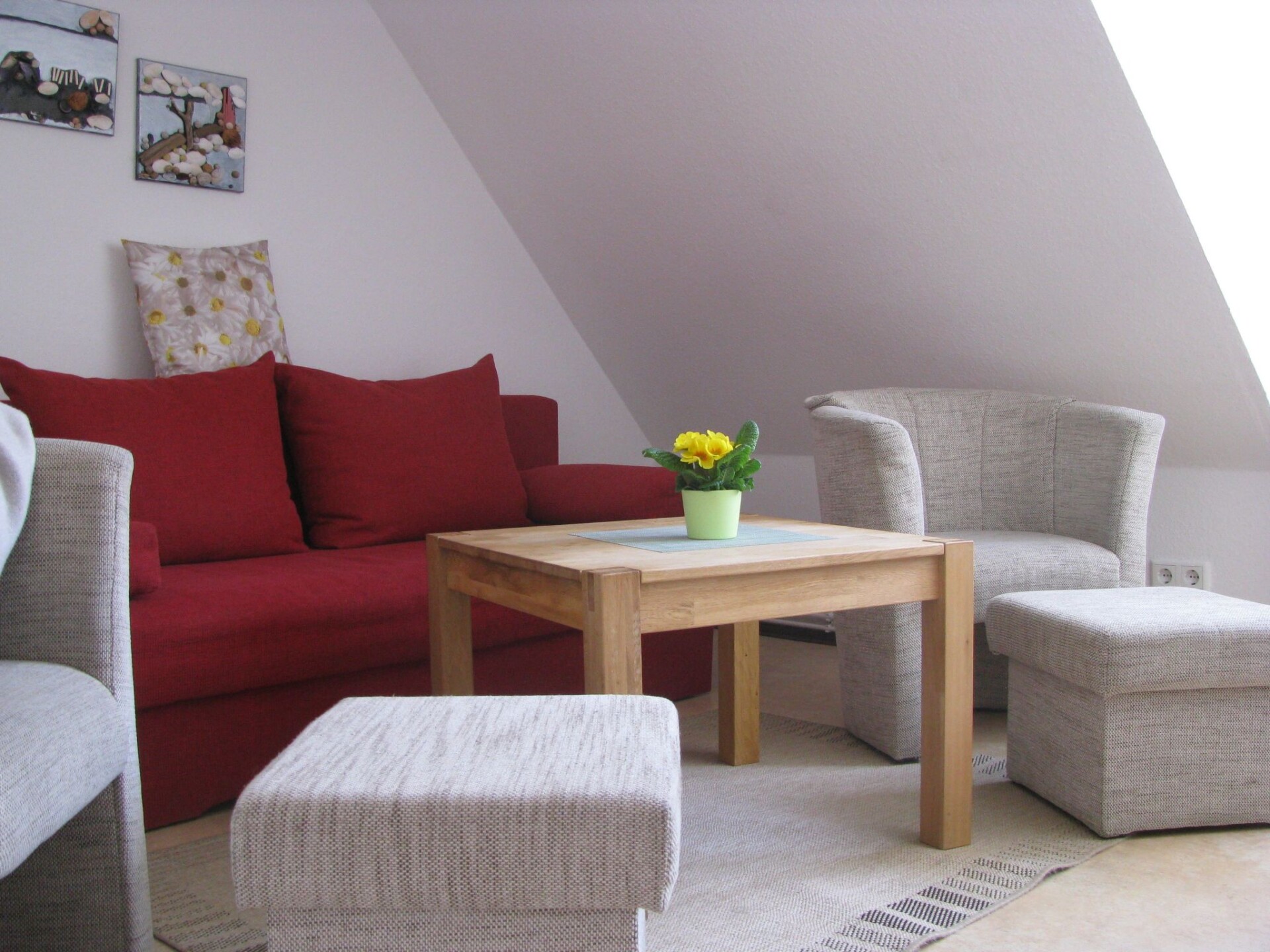The modern 42 sqm holiday flat is located in the heart of Greifswald's city centre in the pedestrian zone in a private residential and commercial building. The holiday flat invites you to visit all year round.The flat is located on the second floor of a listed building and was last renovated in 2014. It has a modern fitted kitchen with all mod cons and a large, sunny dining area, a bathroom with a window and, of course, a shower, WC and washing machine. In the living room there is a modern sofa bed on which a third guest can sleep comfortably. The living room also has two armchairs with stools as well as a flat-screen TV and radio. You can enjoy the view of the thick Marie from the window. The bedroom has a double bed (180 x 200 cm), a wardrobe and a window. WLAN is of course also available free of charge in the flat.If you are travelling by car, it is no problem, there is an inexpensive large car park just 400 m from the flat.The flat is just a few metres from the historic market square, the Pomeranian State Museum, Greifswald's churches and all the other sights of the university and Hanseatic city, so there are plenty of restaurants and shopping opportunities.in the centre of the pedestrian zone