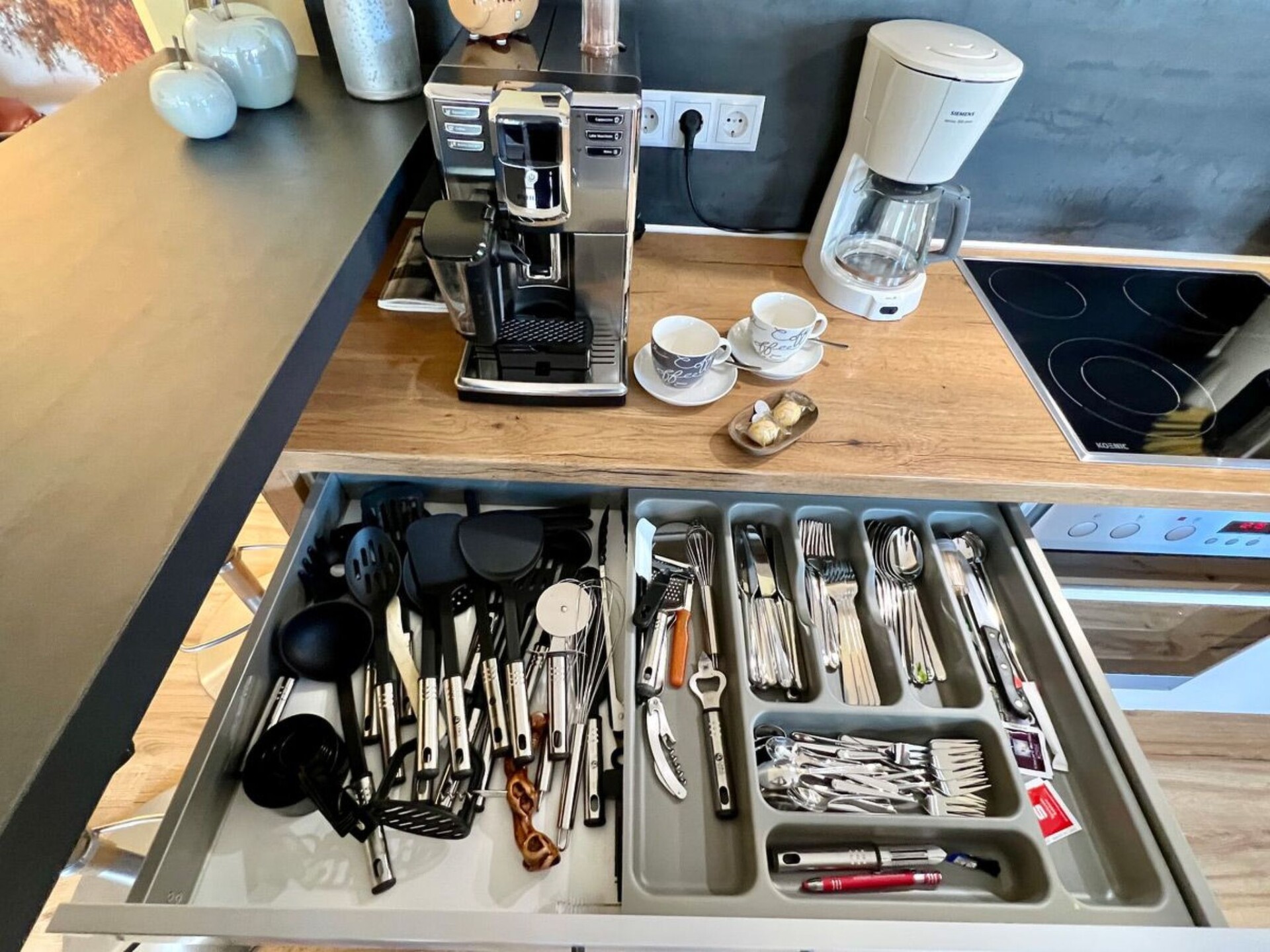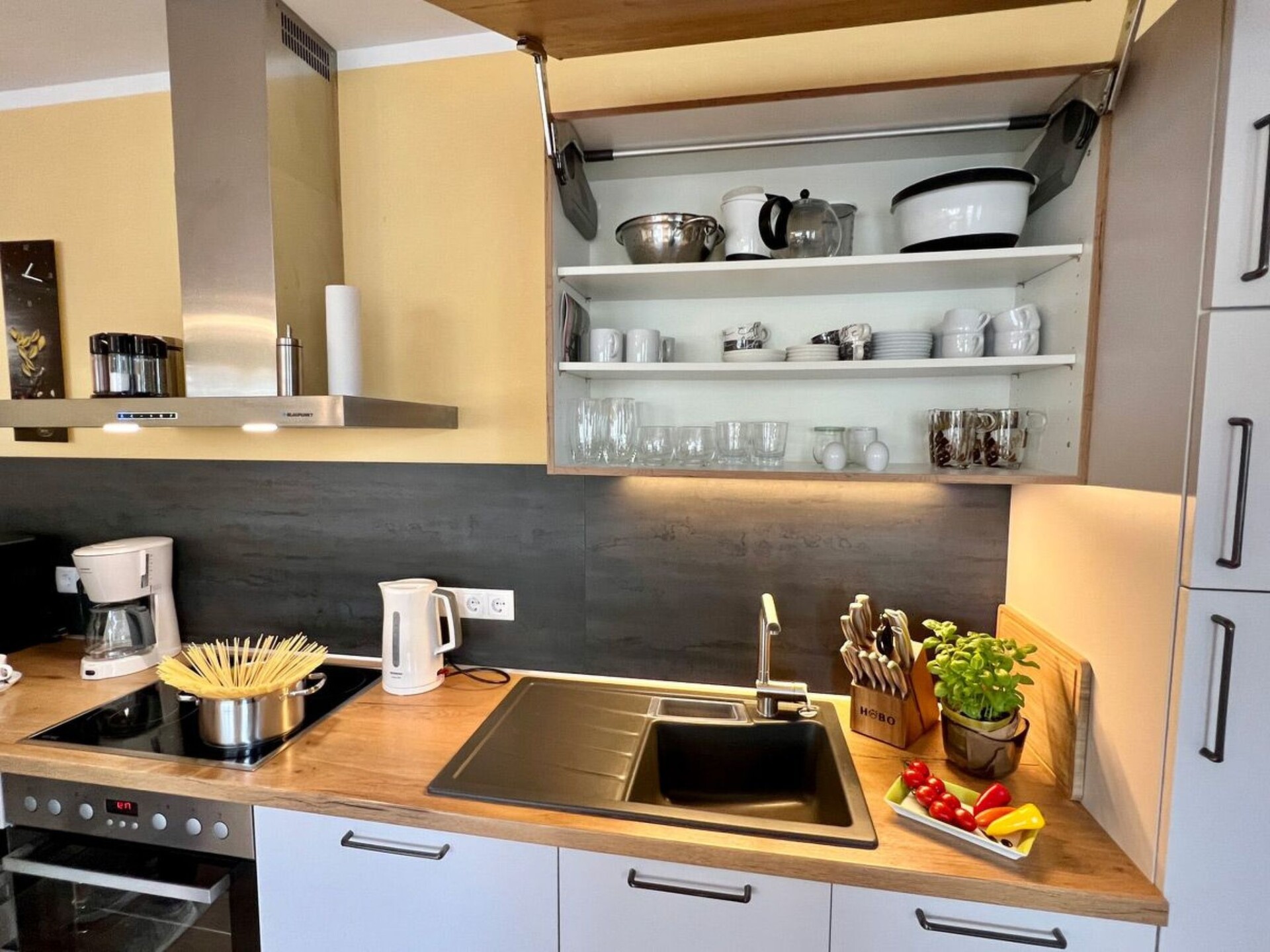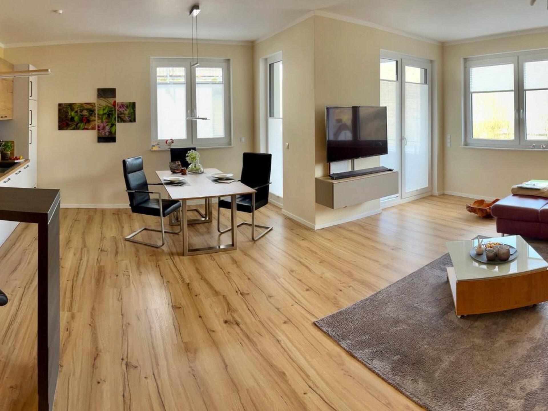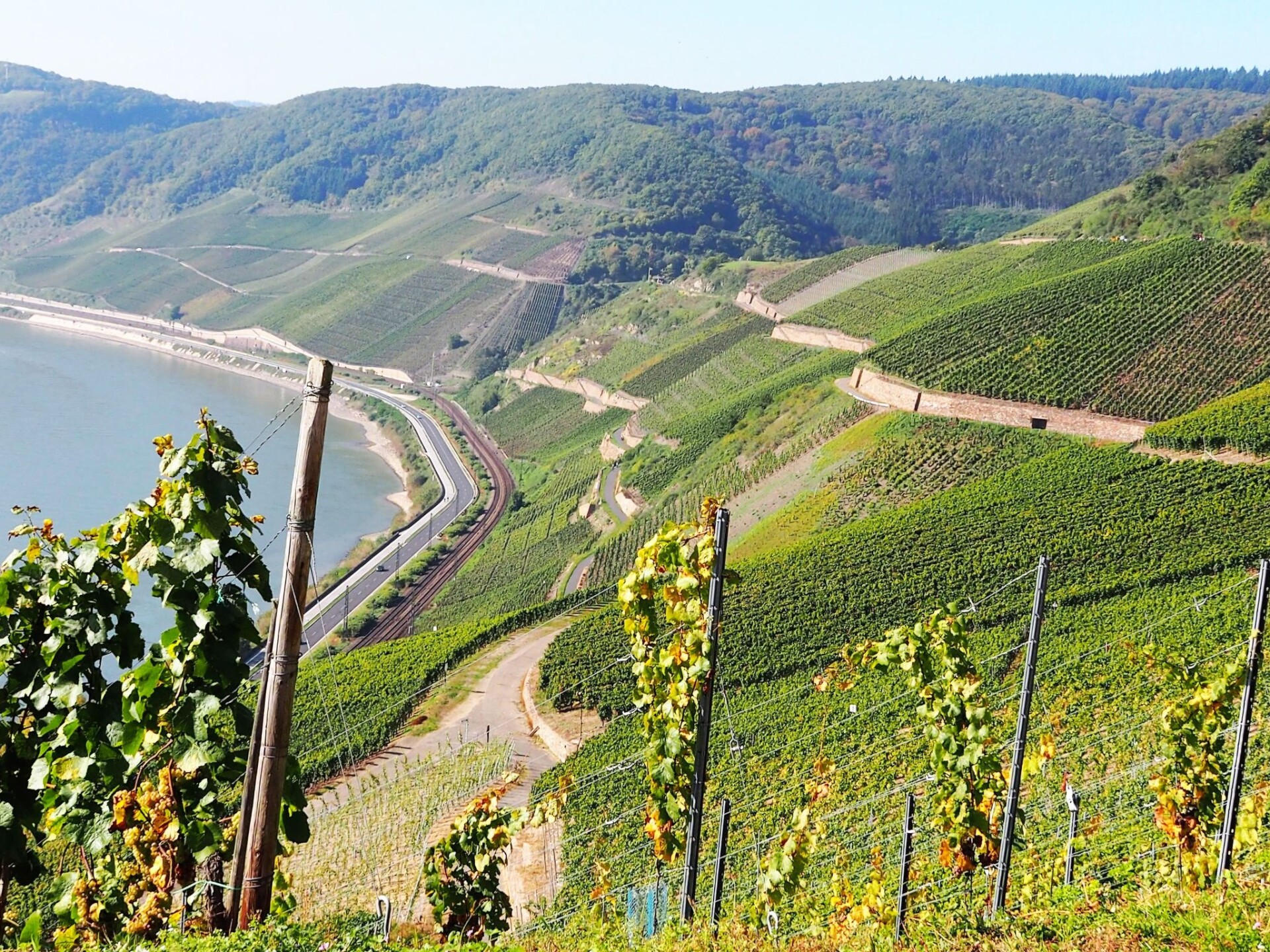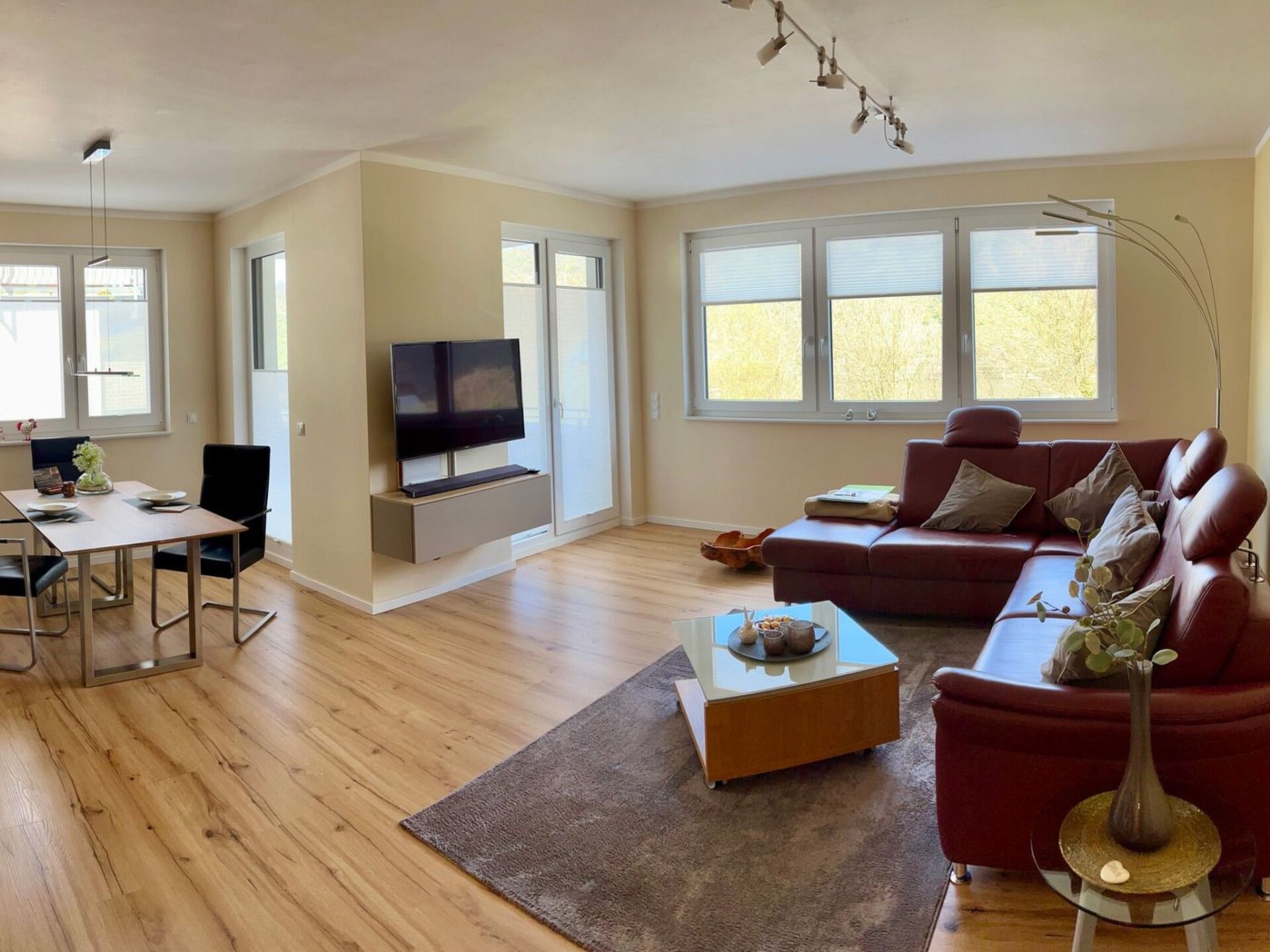 Are you dreaming of a holiday where you can completely relax and keep your distance? Then our 5-star holiday flat in Boppard in the heart of the UNESCO World Heritage Upper Middle Rhine Valley is just right for you. Check in is contactless via a combination lock on the letterbox. With the guest card of the town of Boppard you can use all public transport of the Rhine-Moselle transport network free of charge during your stay. We look forward to receiving your booking enquiry.Our 5-star holiday flat "Rheinwein" with a view of the Rhine is located in Boppard am Rhein, 5-10 minutes from the centre and the Rhine promenade. Your holiday home is on the 1st floor of a well-kept apartment building. You can reach the flat via an easily accessible staircase or the lift. You enter the flat via a front door, followed by an open-plan, modern living and dining area with a cloakroom and separate storage room. You have direct access from the dining area to the spacious balcony with a view of the Rhine. In the living area, a high-quality leather seating area invites you to relax. There is also a reclining armchair with function. With a soundbar and smart TV, you won't miss out on your usual luxury even on holiday. You can use our WLAN access to the Internet free of charge. The modern fitted kitchen with counter and bar stools is fully equipped with a fully automatic coffee machine, branded built-in appliances, small appliances and stylish crockery, just like at home. The living area is barrier-free (but not wheelchair accessible), very bright and has electric blinds. The bathroom is tiled with high-quality tiles and the living and sleeping areas have high-quality laminate flooring, with access to the balcony from the living area. There you can relax in the comfortable balcony furniture. From here you can enjoy a view of the Rhine. Or perhaps you would like to sit down at the table in the dining area and play a game. We have some games ready for you. A modern, high-quality electric bed (180*200) awaits you in the bedroom, guaranteeing you a comfortable night's sleep. A spacious 4-door wardrobe with plenty of room for your holiday wardrobe is waiting for you. The beds are made up with high-quality jersey or maco-satin bed linen, this service is free of charge. The bathroom has a spacious shower with rainforest overhead shower, two generous washbasins with vanity units. A hairdryer is provided for you. High-quality Vossen towels and bath mats are provided free of charge. The bathroom has a window. There is a washing machine, an electric dryer and a steam ironing station in the storage room to take care of your holiday wardrobe. The modern fitted kitchen is fully equipped like at home with branded built-in appliances, small appliances and stylish crockery and has a counter area. There is a filter coffee machine and a high-quality fully automatic coffee machine. You can choose how you would like to prepare your coffee. We have a parking space for your car in front of the house (on the left in front of the wall). You can safely store your bicycles. And what is good for your car is also good for your identity papers and valuables: You lock them safely in the room safe - so you can holiday with peace of mind. We provide all consumables such as: Toilet paper, dishwasher detergent, washing-up liquid, cleaning products etc. for you.The flat has a balcony with a view of the Rhine. Our guests love to enjoy a glass of wine in the evening in the comfortable balcony chairs.A bottle of wine from Bopparder Hamm and a jar of home-made multi-fruit jam are waiting for you on arrival, and the fully automatic coffee machine is ready to prepare your speciality coffee at the touch of a button. On request, your hosts at the Hotel Sonnenhof in Boppard will organise a breakfast buffet for you for a fee.Boppard am Rhein, "the town of possibilities". The former imperial town of Boppard is an independent town in the UNESCO World Heritage Site "Upper Middle Rhine Valley" in the Rhine-Hunsrück district in Rhineland-Palatinate. The town is a state-recognised tourist destination and is characterised by winegrowing. The region is simply something for everyone, offering a wide variety of leisure activities. Hiking tours open up the Rhine valley and the Hunsrück heights. The Rheinsteig (on the right bank of the Rhine) takes you from Wiesbaden to Bonn, while the RheinBurgenWeg (on the left bank of the Rhine) stretches through the Middle Rhine Valley from Bingen to Remagen. The Rhine Cycle Path runs along both sides of the Rhine and offers cyclists of all fitness levels a suitable route. But Boppard also has a lot to offer culture lovers. You will encounter over 2000 years of cultural history. Or discover the castles and palaces or historical monuments of the region over a glass of top-class wine.