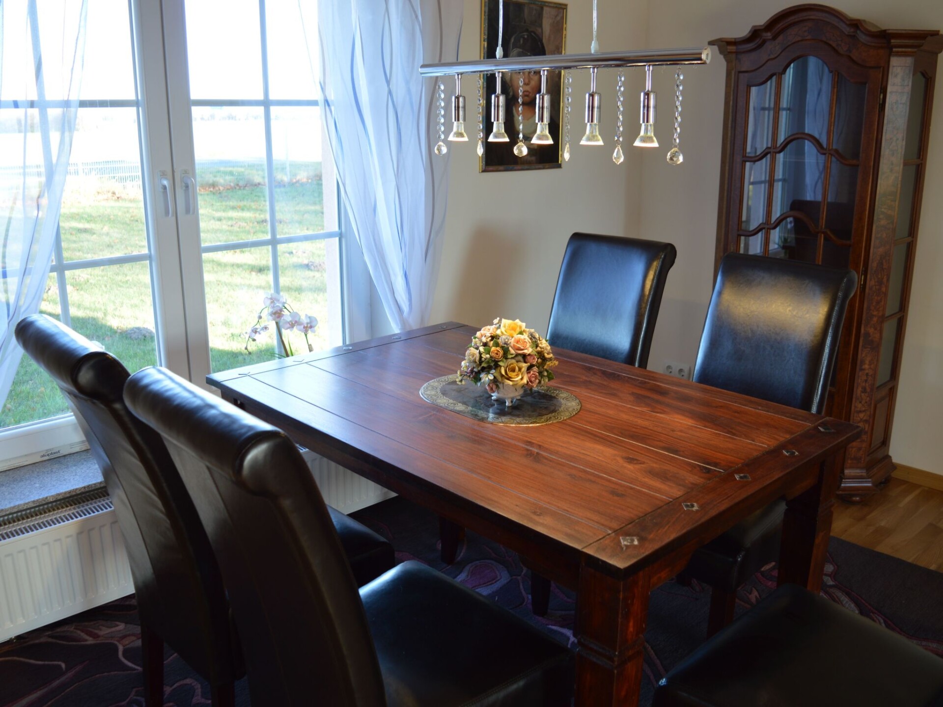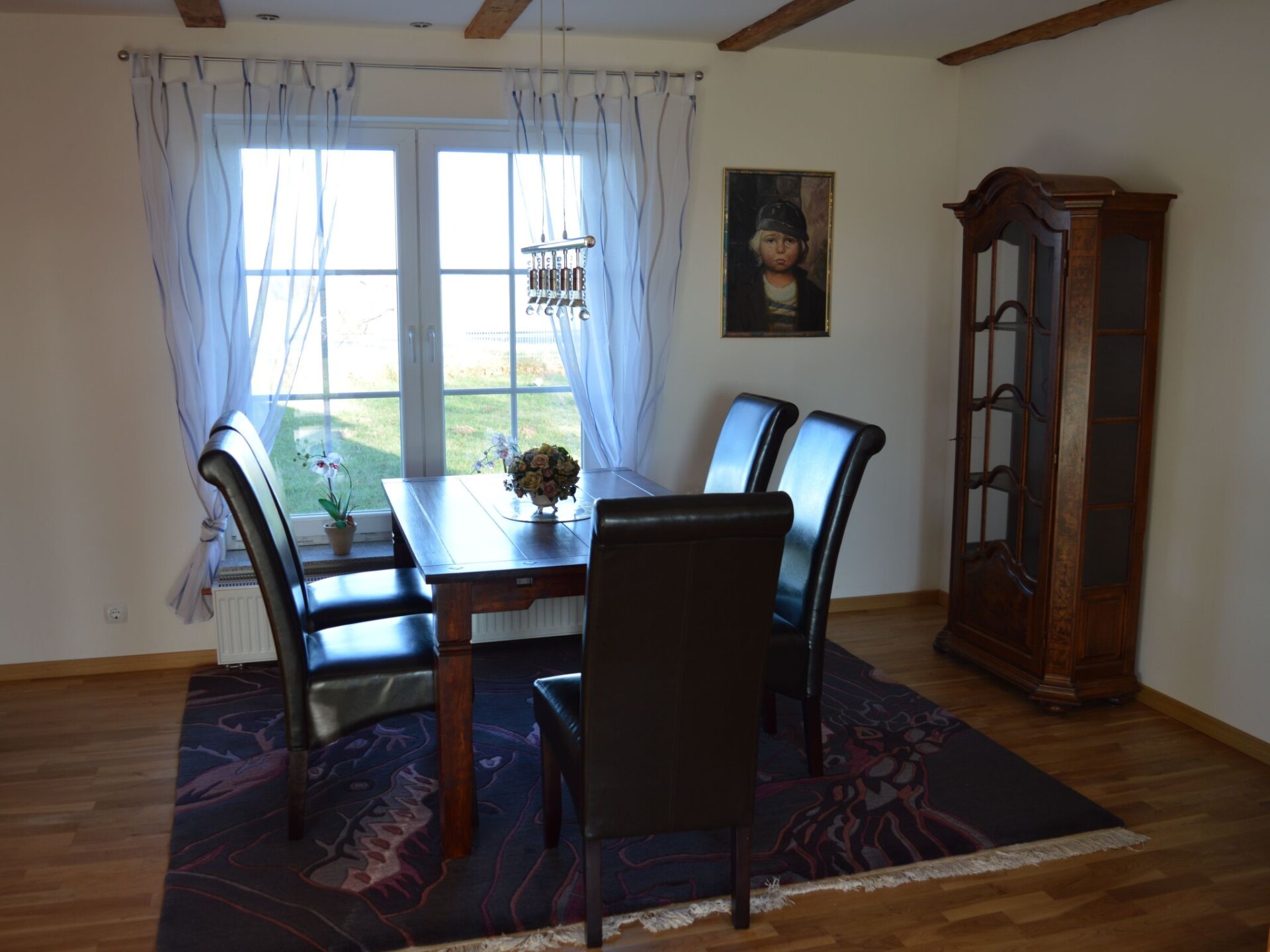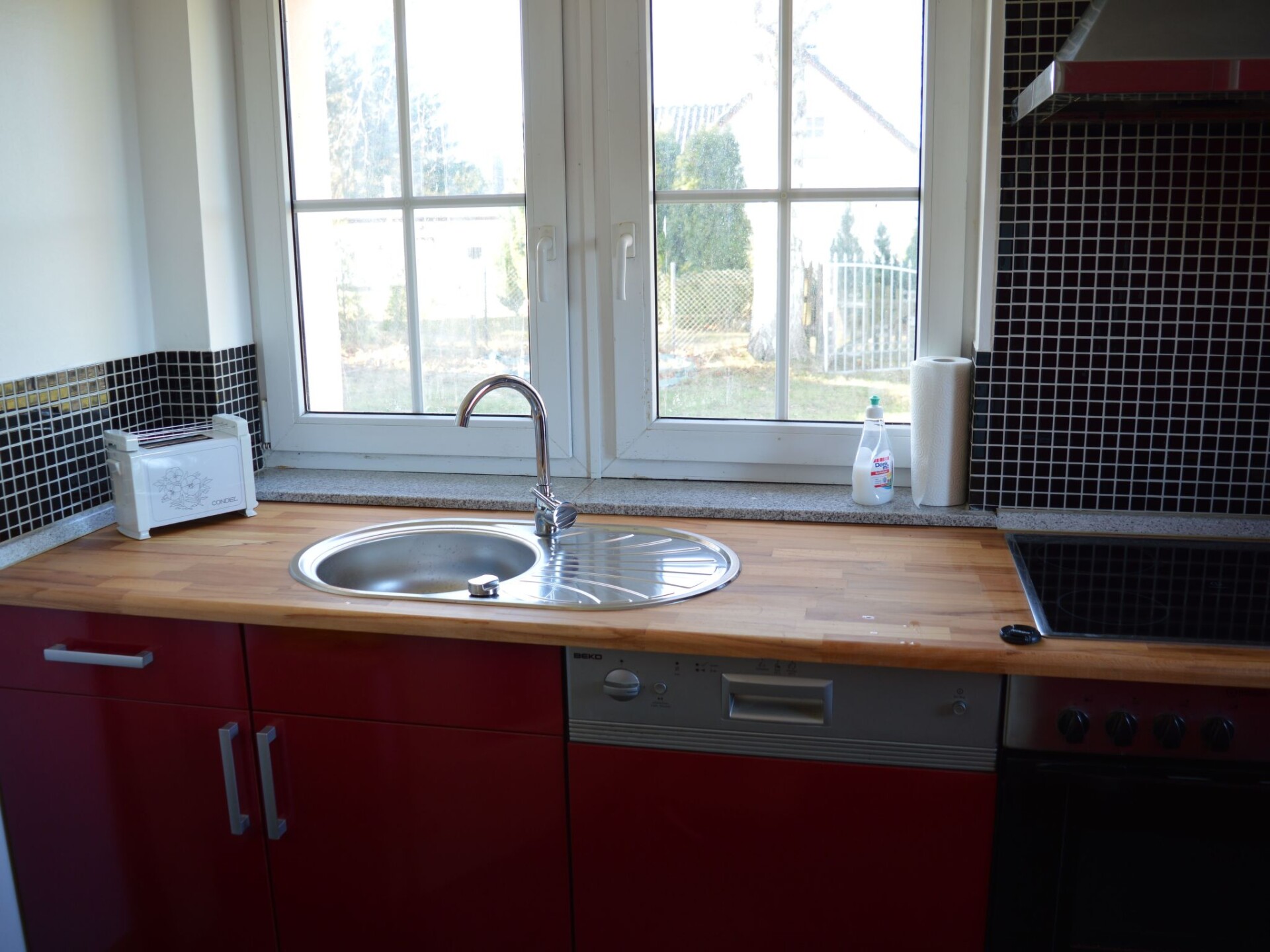 This detached holiday house is situated between the Hanseatic town Stralsund and the town Barth by the Barther Bodden that forms the gateway to the Fischland Darß peninsula and the Baltic Sea town Zingst. The central location makes it possible to explore all the places of tourist interest in the area and the Zingst/Darß sandy beaches about 20km away or Stralsund 19km away. The house was completely modernized at the beginning of 2017 and charmingly furnished.The living and dining room opens onto a large terrace with garden furniture and an awning, as well as a fully enclosed garden on a 1700m² site, where you can relax. There is a charcoal grill for sociable grill evenings. Private car parking spaces are available on site. Pets are not allowed.The accommodation provides around 105m² of living space for a maximum of four people. The living and dining room has a comfortable sofa suite, a coffee table, satellite TV, a stereo system with a CD player and radio, as well as a dining table with chairs. The separate kitchen is equipped with an oven, ceramic hob, fridge with freezer compartment, dishwasher, microwave, toaster, kettle and filter coffee machine. The ground floor also has a spacious bathroom with a shower, washbasin, WC and hairdryer. Stairs lead to the upper floor with two big bedrooms, each furnished with a double bed (180cm wide) and a sitting corner. The owner can provide a cot free of charge. All the rooms in the house have heating. There is no Internet connection.There is a three-star hotel/restaurant about 500 metres away from the house, which is to be recommended. Shopping facilities can be found in Velgast about 2.5km away, with a supermarket with meat and bakery items, as well as a post office. The town Barth has a family shopping centre, the Stolz department store, a DIY store and many other everyday shops. The town Barth by the Barther Bodden is just 9.5km away. The Rostock-Stralsund railway runs about 2.5km away from Karnin and can be accessed via the ICE train station Velgast 2.5km away. There are plenty of parking spaces at the train station.For occupancy with two people, you can use one bedroom with a double bed and sitting corner, from three people you can use two bedrooms each with a double bed and a sitting corner.