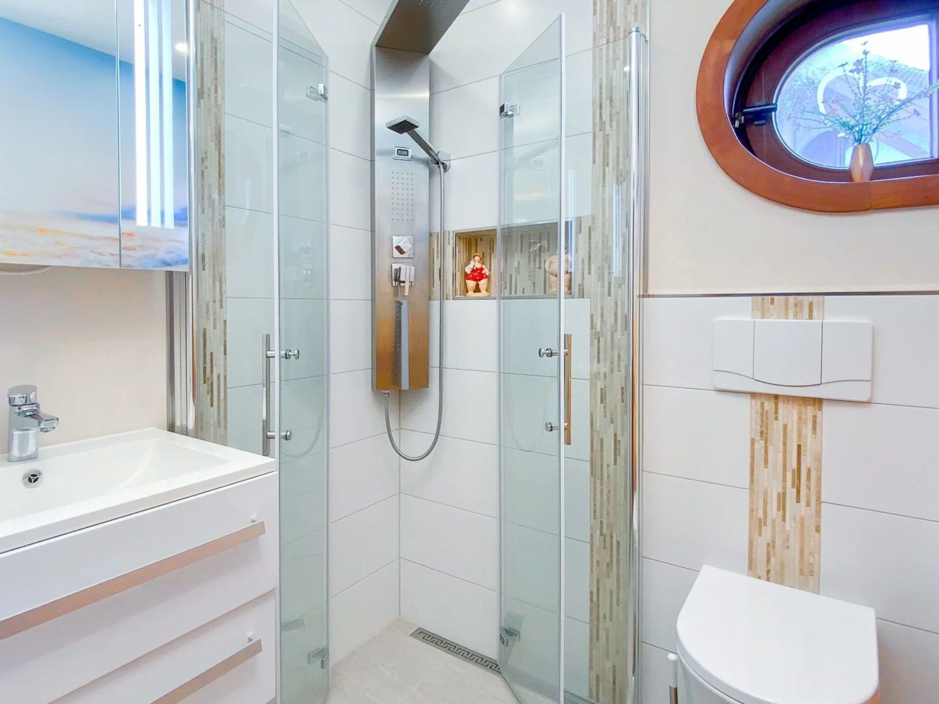 You can find information on corona prevention in the travel information.The "Moin Moin" holiday flat is a two-storey flat on the upper and top floor of an attractive designer house that plays with maritime style elements. The rounded windows, which extend far beyond the corners of the house, provide a marvellous panoramic view.The spacious balcony, whose border is reminiscent of a railing, sets the scene for a trip on a traditional sailing boat or a relaxing stay on a magnificent ship.The flat is ideally located just 200 metres from the beach path on Friedrichskoog beach. Due to current coastal defence works, access to the beach is considerably restricted.The holiday flat has:1 DOUBLE BED 2 SINGLE BEDS TELEVISION SHOWER EQUIP. KITCHEN DISHWASHER COFFEE MACHINE WASHING MACHINE IRON HAIR DRYER Due to current coastal defence works, access to the beach is considerably restricted.The North Sea spa Friedrichskoog is situated in a rural location between cabbage and grain fields in the southern part of the district of Dithmarschen. Our peninsula offers a wide range of leisure, wellness, sports and family activities. The Friedrichskoog-Spitze holiday area is home to the green beach, where guided mudflat walks and events take place all year round. Due to current coastal defence works, access to the beach is considerably restricted.