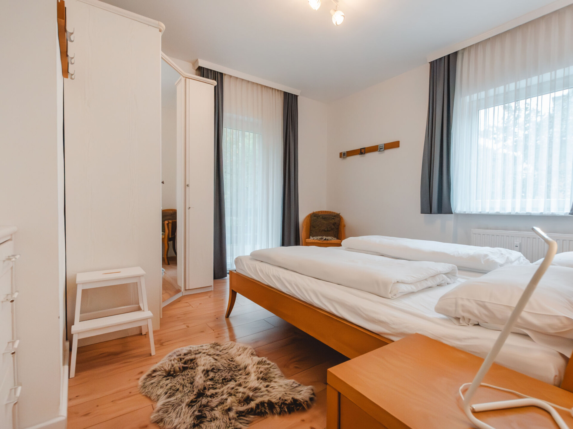 "Monte Grau Top 5", appartement 3-kamers 60 m2 op de 1e verdieping. Het objekt is geschikt voor 5 volwassenen. Ruim en licht, volledig gerenoveerd in 2018, zeer modern ingericht: hal. 1 2-pers. kamer. Uitgang naar het balkon. 1 kamer met 1 bed en 1 x 2 stapelbedden (90 cm, lengte 200 cm). Woon-/eetkamer met eettafel en Sat-TV (Flatscreen TV), DVD. Uitgang naar het balkon. Open keuken (oven, afwasmachine, 3 keramische glas kookplaten, broodrooster, waterkoker, magnetron, elektrische koffiemachine). Bad/WC. Houten vloeren. Balkon 5 m2, op het zuiden gelegen balkon 4 m2, op het westen gelegen. Balkonmeubilair. Mooi uitzicht op de bergen. Ter beschikking: haardroger. Internet (Internet (WiFi), gratis). Geschikt voor families. Niet rokers woning. Rookmelders. 50403-000314-2020