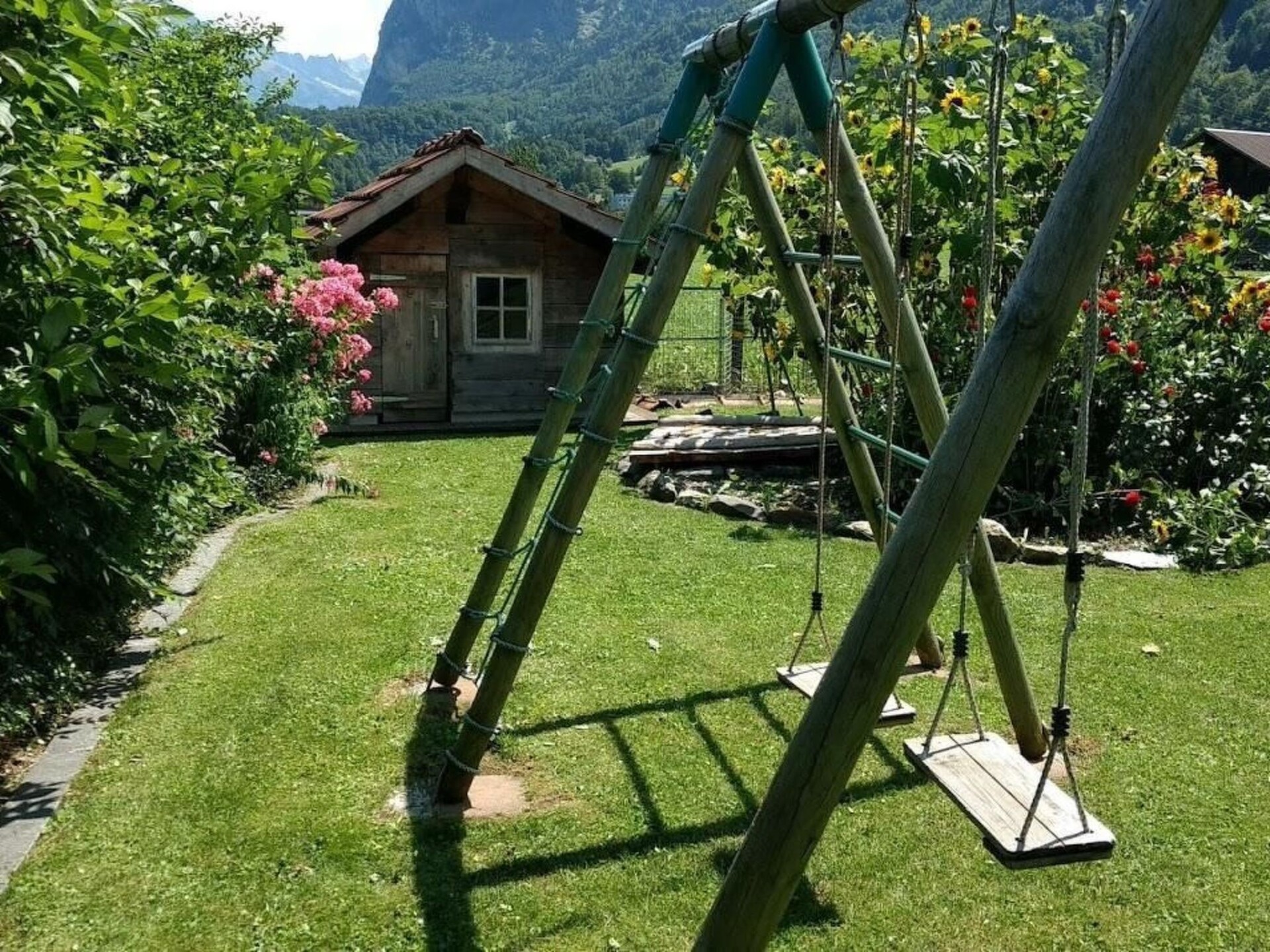 Discover your dream holiday destination in Meiringen! This charming 3.5-room flat, spread over two floors in a carefully renovated 3-family house, offers an exquisite retreat on the quiet edge of the village. Enjoy the magnificent view of the surrounding mountains and the cosy ambience. A perfect place for lovers of the mountains and those looking for peace and quiet away from the noise of the city.Inside, you will find an inviting living room with satellite TV, a cosy Swedish stove and an open gallery that can accommodate an extra bed. Free WLAN is of course available. The flat also has two bedrooms with comfortable double beds. The gallery and the second bedroom are accessible via a convenient ladder - a creative touch that should be considered for families with small children. A fully equipped kitchen with oven, dishwasher, fridge with freezer compartment, microwave and coffee machine (filter coffee machine and Nespresso coffee machine) leaves nothing to be desired.The outdoor area impresses with a spacious garden for shared use, including an open and covered seating area and a garden barbecue. Children will have fun in the playground, while adults can enjoy the idyllic sunbathing lawn. A balcony offers additional space to enjoy the exceptional mountain views. A private car park and a laundry room with washing machine and tumble dryer are also at your disposal.The surrounding area of Meiringen invites you to enjoy numerous activities. Mountaineering, climbing, mountain biking, skiing (alpine) and tennis - the region is a paradise for sports enthusiasts. Ice skating is also possible in the winter months. With such a wide range of leisure activities in the midst of breathtaking mountain scenery, there is something for every taste and every age.Don't miss out on this unique opportunity. Whether as a base for sporting adventures or as a quiet retreat - this holiday flat in Meiringen promises unforgettable holiday experiences. Book now and treat yourself to a break in the great outdoors that you won't soon forget.