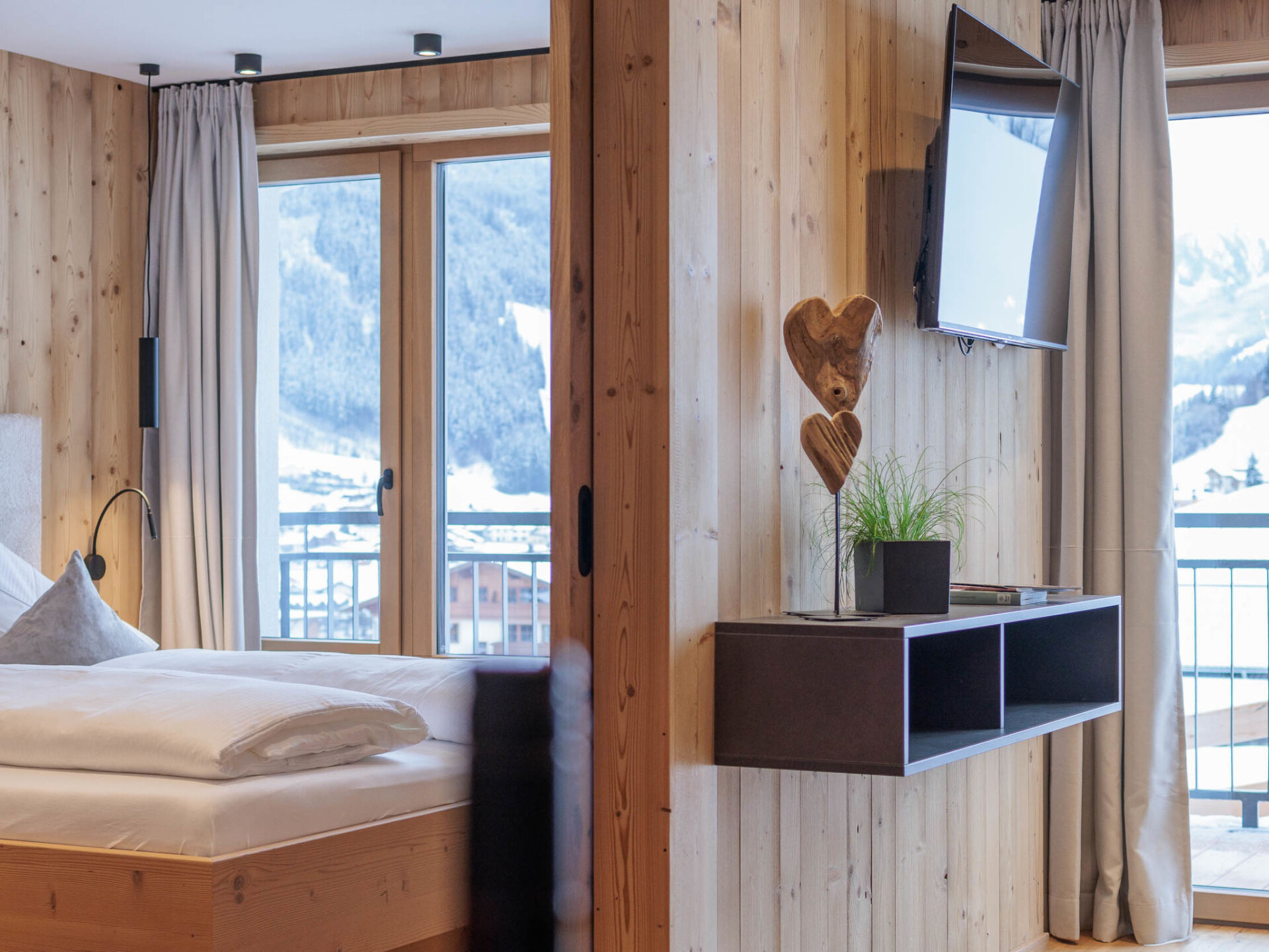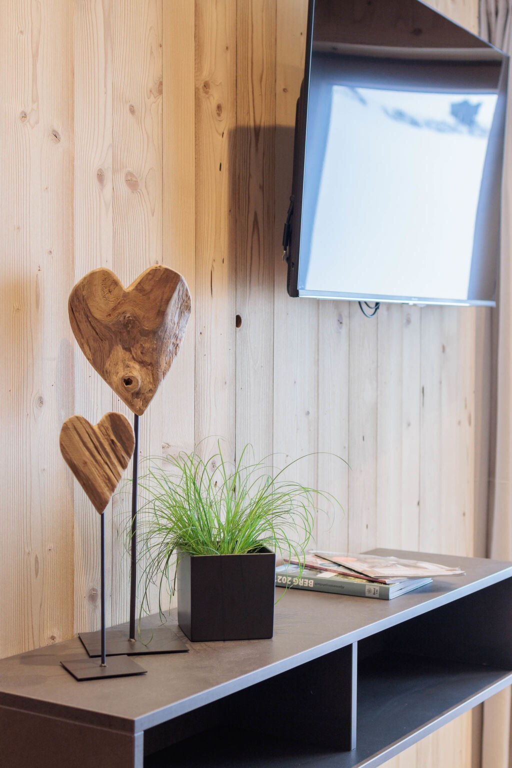 "Mountain Suite Nr 102", appartement 2-kamers 48 m2, op verhoogde begane grond. Smaakvol en met veel hout ingericht: woon-/slaapkamer met 1 2-pers divanbed, eethoek, kookhoek, Sat-TV en internationale TV-zenders (Flatscreen TV). Uitgang naar het balkon. 1 2-pers. kamer. Open keuken (oven, afwasmachine, 4 keramische glas kookplaten, broodrooster, waterkoker, magnetron, elektrische koffiemachine, pads voor de koffiemachine (Nespresso) extra). Douche, aparte WC. Vloerverwarming. Houten vloeren. Balkon. Balkonmeubilair. Zeer mooi panoramazicht op de bergen en de plaats. Ter beschikking: kluis, haardroger. Internet (Internet (WiFi), gratis). Garage (1 Auto). Oplaadstation. Niet rokers woning. Geschikt voor allergiepatiënten. 50411-008165-2024