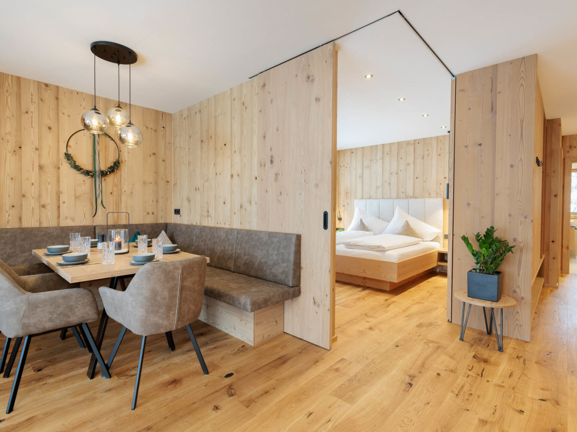 "Mountain Suite Nr 201", appartement 3-kamers 73 m2 op de 1e verdieping. Smaakvol en met veel hout ingericht: woon-/eetkamer met 1 2-pers divanbed, eethoek, kookhoek, Sat-TV en internationale TV-zenders (Flatscreen TV). Uitgang naar het balkon. 1 2-pers. kamer met douche. Uitgang naar het balkon. 1 kamer met 1 bed en 1 2-pers bed. Open keuken (oven, 4 keramische glas kookplaten, broodrooster, waterkoker, magnetron, elektrische koffiemachine, pads voor de koffiemachine (Nespresso) extra). Douche/WC, aparte WC. Vloerverwarming. Houten vloeren. 2 balkons. Balkonmeubilair. Zeer mooi panoramazicht op de bergen en de plaats. Ter beschikking: kluis, haardroger. Internet (Internet (WiFi), gratis). Garage (1 Auto). Oplaadstation. Niet rokers woning. 50411-008165-2024