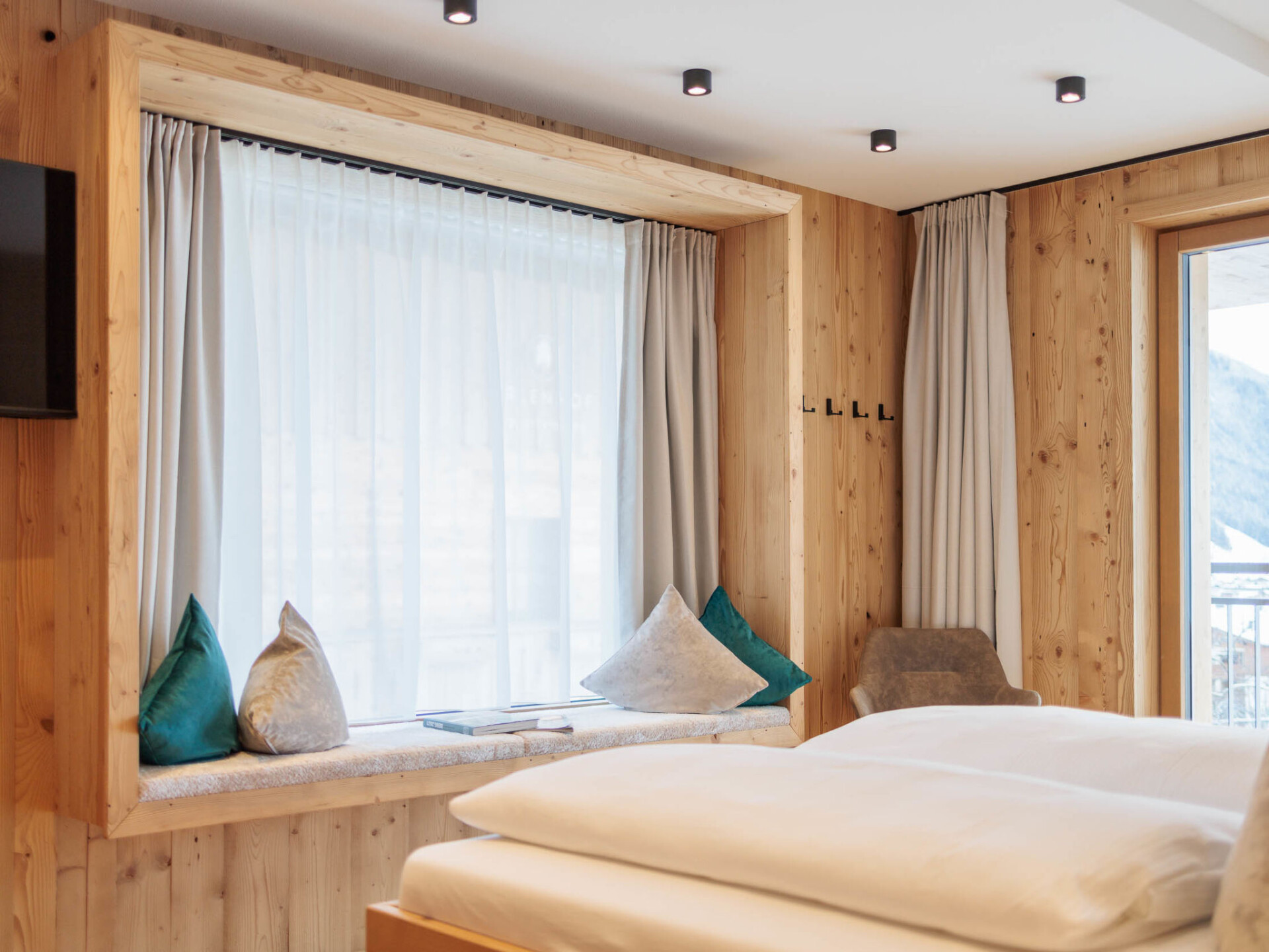 "Mountain Suite Nr 202", appartement 2-kamers 38 m2 op de 1e verdieping. Smaakvol en met veel hout ingericht: woon-/slaapkamer met 1 2-pers divanbed, eethoek, kookhoek, Sat-TV en internationale TV-zenders (Flatscreen TV). Uitgang naar het balkon. 1 kamer met schuifdeur met 1 bed, 1 2-pers bed, Sat-TV en internationale TV-zenders (Flatscreen TV). Uitgang naar het balkon. Open keuken (oven, afwasmachine, 4 keramische glas kookplaten, broodrooster, waterkoker, magnetron, elektrische koffiemachine, pads voor de koffiemachine (Nespresso) extra). Douche, aparte WC. Vloerverwarming. Houten vloeren. Balkon. Balkonmeubilair. Zeer mooi panoramazicht op de bergen en de plaats. Ter beschikking: kluis, haardroger. Internet (Internet (WiFi), gratis). Garage (1 Auto). Oplaadstation. Niet rokers woning. Geschikt voor allergiepatiënten. Bedindeling is flexibel. Er zijn meer slaapmogelijkheden beschikbaar dan het maximaal toegestane aantal personen dat echter niet mag worden overschreden. 50411-008165-2024