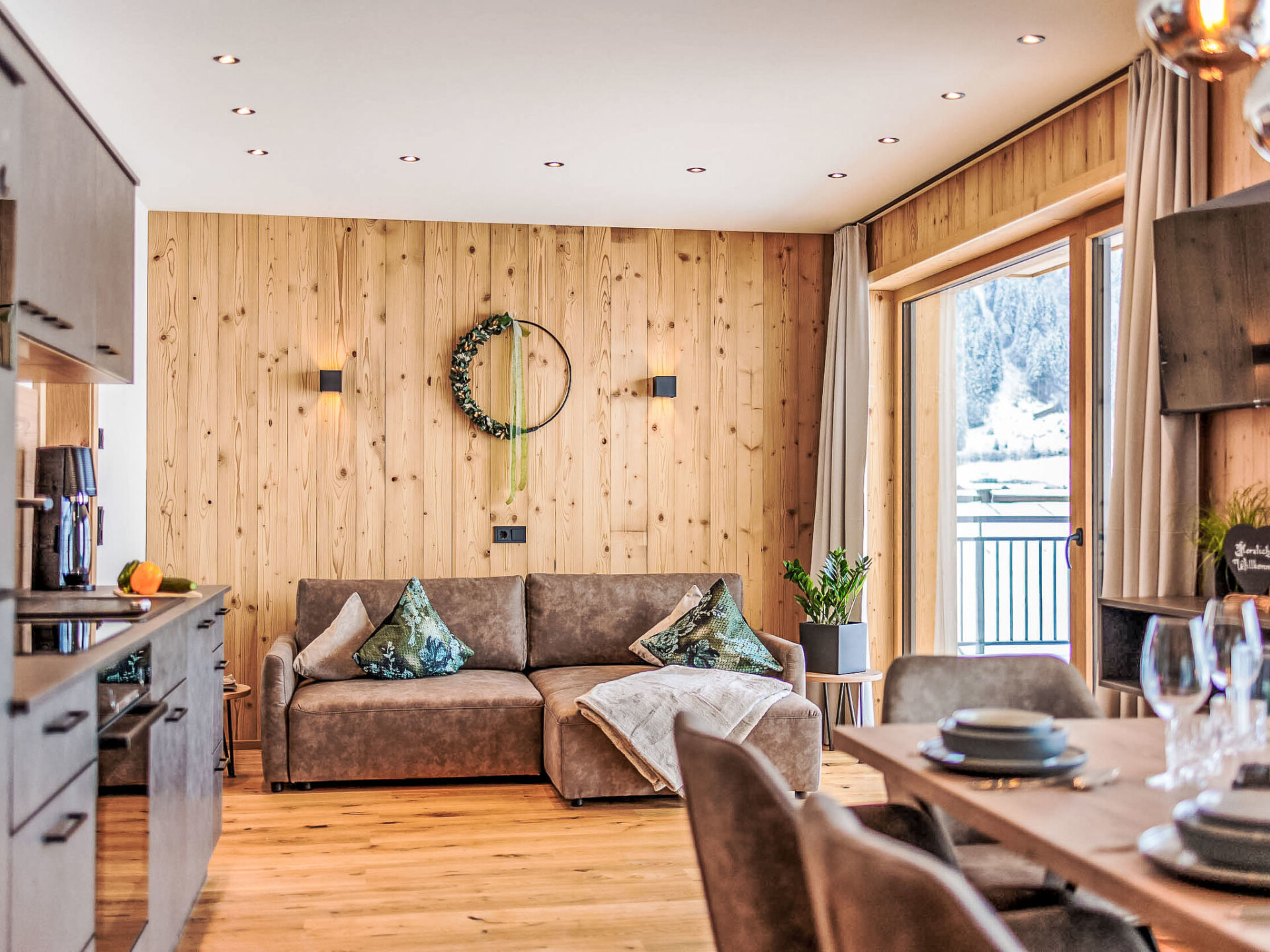 "Mountain Suite Nr 302", appartement 3-kamers 57 m2 op de 2e verdieping. Smaakvol en met veel hout ingericht: woon-/slaapkamer met 1 2-pers divanbed, eethoek, kookhoek, Sat-TV en internationale TV-zenders (Flatscreen TV). Uitgang naar het balkon. 1 2-pers. kamer met Sat-TV en internationale TV-zenders (Flatscreen TV). Uitgang naar het balkon. 1 2-pers. kamer. Uitgang naar het balkon. Open keuken (oven, afwasmachine, 4 keramische glas kookplaten, broodrooster, waterkoker, magnetron, elektrische koffiemachine, pads voor de koffiemachine (Nespresso) extra). 2 douche/WC's. Vloerverwarming. Houten vloeren. 2 balkons. Balkonmeubilair. Zeer mooi panoramazicht op de bergen en het landschap. Ter beschikking: kluis, haardroger. Internet (Internet (WiFi), gratis). Garage (1 Auto). Oplaadstation. Niet rokers woning. Geschikt voor allergiepatiënten. 50411-008165-2024
