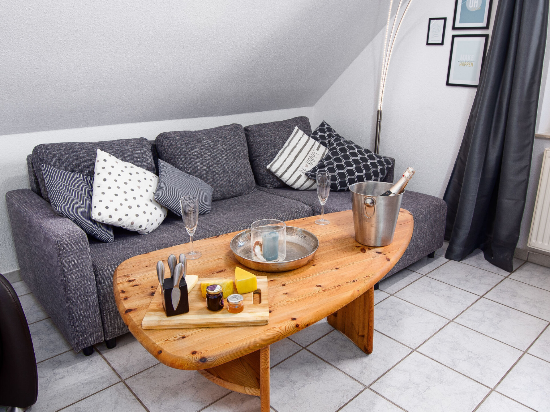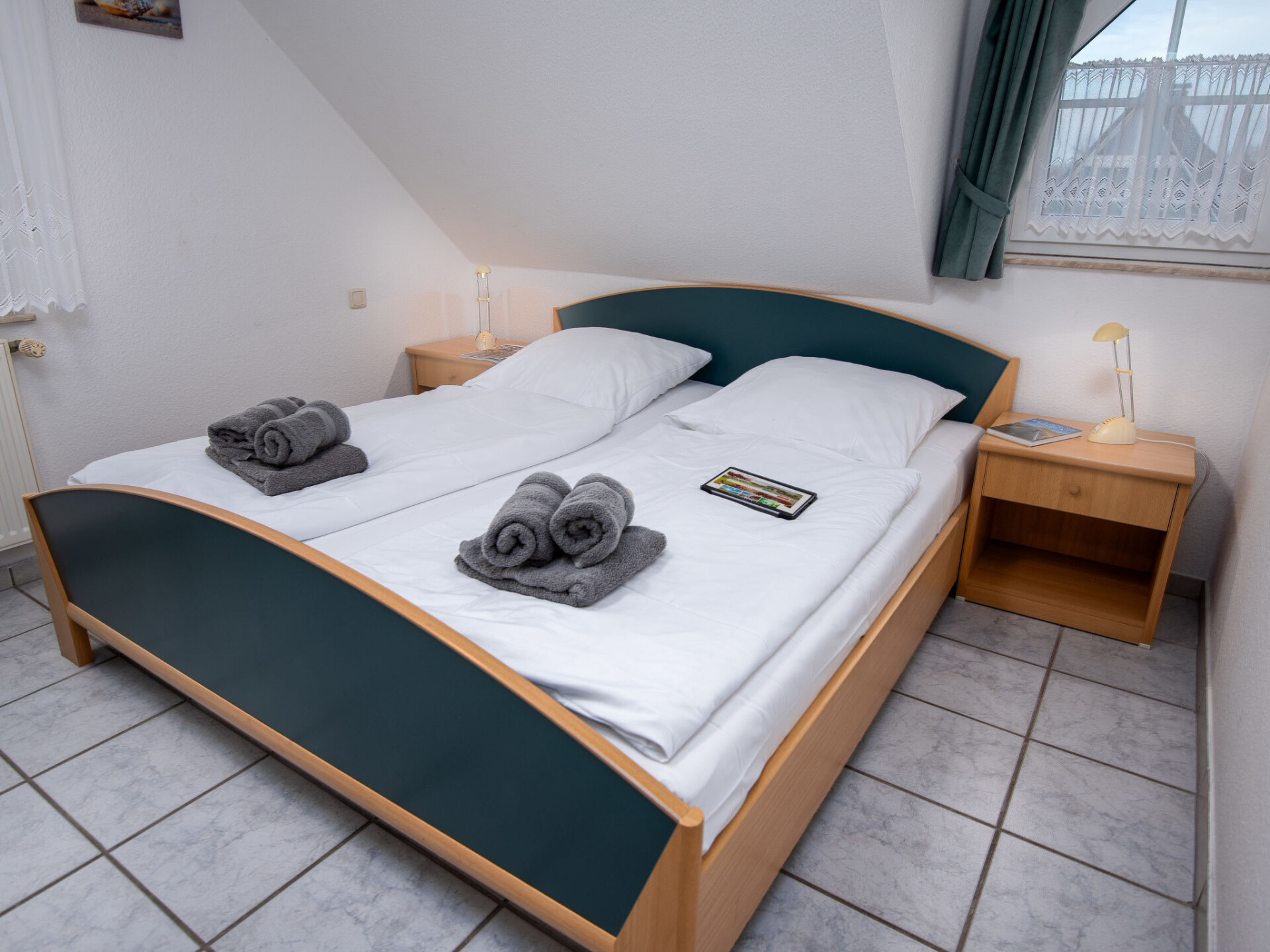 "Möwe", appartement 2-kamers 40 m2 op de 1e verdieping. Mooi en smaakvol ingericht: woon-/eetkamer 16 m2 met Sat-TV (Flatscreen TV), stereo-installatie en DVD. 1 kamer 10 m2 met 1 2-pers bed (2 x 90 cm, lengte 200 cm). Open keuken (4-pits kookplaat, oven, broodrooster, waterkoker, magnetron, diepvriezer, elektrische koffiemachine). Douche/WC. Terrasmeubelen, zitgelegenheid. Ter beschikking: kinderstoel (extra). Internet (Internet (WiFi), gratis). Koelkast zonder vriesvak, niet rokers woning. Rookmelders.
