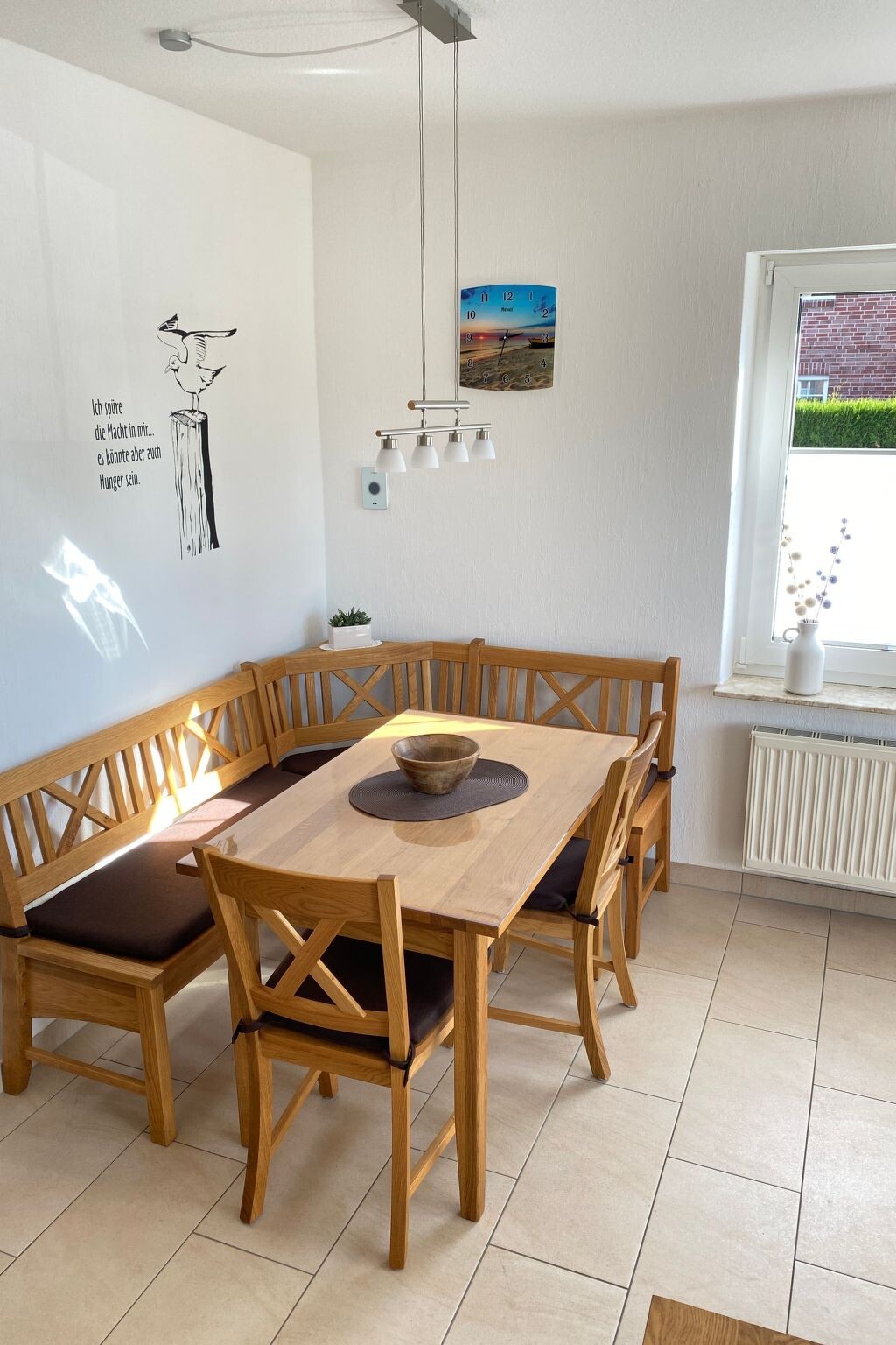 Het rijtjeshuis Möwengruß is liefdevol en modern ingericht. Het ligt in een doodlopende straat vlakbij de dijk, op slechts een paar minuten lopen van het zandstrand en de Waddenzee. Het vakantiehuis heeft een woon-eetkamer, gastentoilet en kitchenette, evenals een badkamer, 2 slaapkamers met in totaal 4 bedden en een kleinere kamer met een vast houten kinderbed in het bovenste gedeelte. Alles is ingericht met veel aandacht voor detail, modern en nieuw ca. 60 m2. Met gratis WLAN. Honden 🐾 toegestaan op aanvraag. Met wasmachine , voor gratis gebruik Bij het huis zijn 2 parkeerplaatsen en een houten hut voor het stallen van fietsen. Basisinformatie - Huisdieren toegestaan: 2 - toegestaan maat van hond: middelgroot (30 tot 60 cm) - bevindt zich in: woonwijk - type gebouw: rijtjeshuis - totaal aantal verdiepingen in het gebouw boven de begane grond: 2 - bescherming tegen inkijk - geen groepsboeking - niet-rokers - aantal slaapkamers: 3 - aantal badkamers: 1 Top eigenschappen - wifi - verwarming: overal - terras - tuin: voor alleengebruik - geheel afgesloten (met muur, hek of heg) - hond-proof door een hek (geheel omheind) - privéparkeerplaatsen in totaal: 2 - ㄴ daarvan privéparkeerplaatsen buiten: 2 Slapen slaapkamer 15 - 2x eenpersoonsbed - zonwering voor slaapkamer slaapkamer 23 - kinder-/babybed - zonwering voor slaapkamer slaapkamer 7 - tweepersoonsbed (1.80 m breed) - zonwering voor slaapkamer Badkamer badkamer 7 - douche - wastafel - toilet - föhn - daglicht toilet - wastafel - toilet Koken/Wonen - koffiezetapparaat: koffiezetapparaat - koelkast/vriezer: diepvriesvak, koelkast - kookplaat: keramische kookplaat - afzuigkap - oven - broodrooster - magnetron - waterkoker - vaatwasser - theedoeken - aantal eettafels: 1 - maximaal aantal zitplaatsen: 6 - aantal woonkamers: 1 - zonwering voor woonkamer Voor kinderen - kinderstoel - gezelschapsspellen voor kinderen Huishouden - wasmachine: voor alleengebruik in het object - stofzuiger Buitenbereik - outdoor meubilair - barbecue: houtskoolbarbecue Omgeving - dichtstbijzijnde centrum van een plaats: 100 m - levensmiddelenzaak: 3,0 km - uitgaansgelegenheid: 2,0 km - restaurant: 1,0 km - station: 3,0 km - haven: 2,0 km - afstand openbaar vervoer: 100 m - strand: 2,0 km - afstand tot het hondenstrand: 2,0 km - grasstrand: 2,0 km - zandstrand: 2,0 km - zee: 2,0 km - speeltuin: 2,0 km - openbaar zwembad: 2,0 km - golfplaats: 15,0 km - mogelijkheid om paard te rijden: 6,0 km