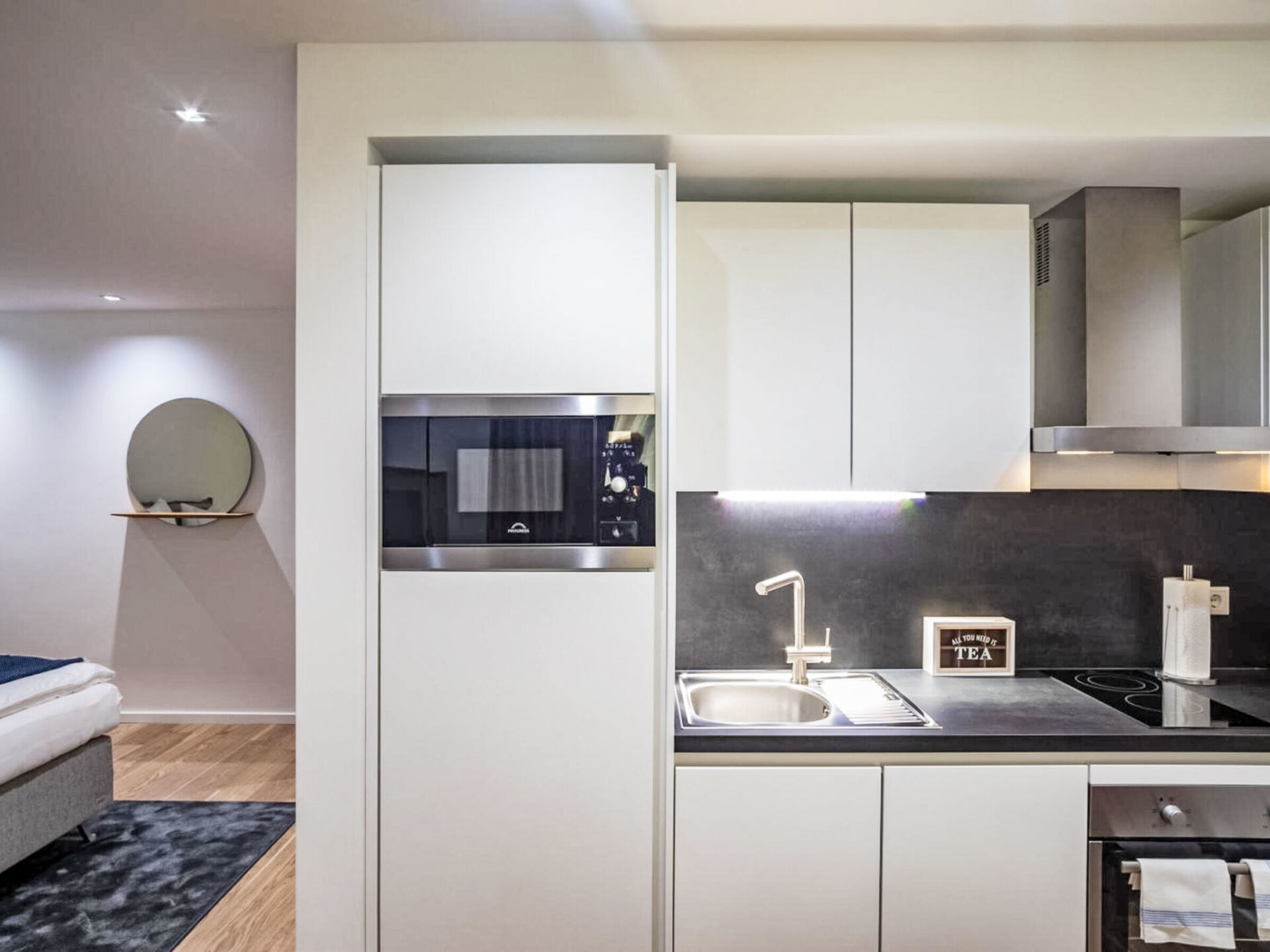 "Munich Finest Apartment Studio 2", appartement 2-kamers 31 m2. Modern ingericht: 1 kamer met 1 2-pers bed en TV. Uitgang naar het balkon. Kookhoek (2 keramische glas kookplaten, broodrooster, waterkoker, magnetron, elektrische koffiemachine) met eettafel. Douche/WC. Elektrische verwarming. Balkon. Ter beschikking: kluis, kinderstoel, kinderbed, haardroger. Internet (WiFi, gratis). Niet rokers woning. Rookmelders. 244932