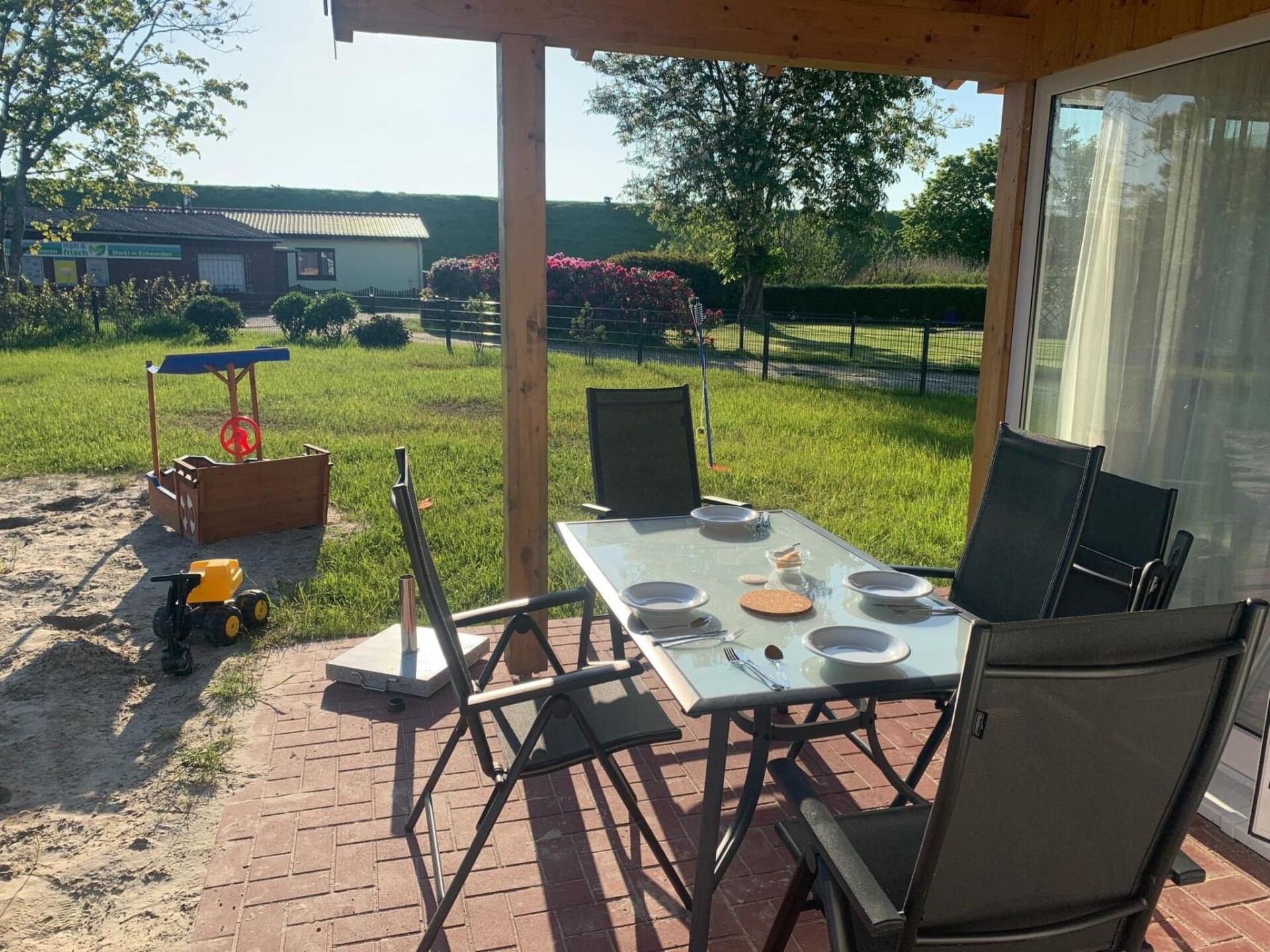 New build!!! Detached, ground floor bungalow (built June 2020) for 6 people, own approx. 740 sqm plot, sauna, completely tiled throughout the house, all windows have fly screens, walk-in shower, 2 bedrooms with TV. 3 bedrooms: 1 bedroom with double bed 180 x 200, 1 bedroom with 2 x single bed 90 x 200, 1 bedroom with 1x bunk bed, 1x single bed 90 x 200, large living room with 6.5 m window front to the floor, bathroom with walk-in shower, bathroom with flat shower tray, covered sun terrace with garden furniture and parasol, carport and further parking space behind, fully equipped fitted kitchen with dishwasher, microwave, oven and ceramic hob. Washing machine, free WLAN in the house!The house is located in the holiday village Eckwarderhörne in the immediate vicinity of the dyke, the ferry dock (including passenger/bike ferry to Wilhelmshaven) and a 50,000 m2 inland lake belonging to the holiday village (with an approx. 500 m2 sandy lawn directly on the inland lake, swimming pontoon and jetties). The Eckwarderhörne lido with its beach hall, lighthouse, ferry landing stage and starting point for guided mudflat walks is around 800 m away. The holiday village is idyllically situated away from the traffic and has the "To'n Spieker" dyke inn, bicycle hire, children's playground and a 1000 m2 play area with beach volleyball court, badminton court, basketball hoop, outdoor table tennis table, sandpit and swings.Electricity, gas, final cleaning and water consumption includedVisitor's tax/guest card according to valid statutesExempt are: Severely disabled persons (and 1 accompanying person) with 80% degree of disability as well as the 3rd and each additional child of a family, provided that the guest contribution is paid for the 1st and 2nd child. Excursion possibilities : On the water: from the Eckwarderhörne ferry landing stage approx. 500m away: passenger/cycle ferry to Wilhelmshaven, Jade Bay tours (seal banks, lighthouse), mudflat walks On land: 3000 sqm bathing paradise - 8 minutes by car, Bremerhaven fishing harbour, Jaderberg animal/leisure park, 3,000 sqm indoor play barn and North Sea lagoon - 15 minutes by carLocation description : The seaside resort of Eckwarderhörne is located directly on the dyke on the Butjadingen peninsula - surrounded by water on three sides - in the middle of the "Lower Saxony Wadden Sea National Park".Bungalow (built June 2020) detached premium holiday home with 741 sqm plot, fenced, WLAN, sauna, directly North Sea in the holiday village Eckwarderhörne: N 2