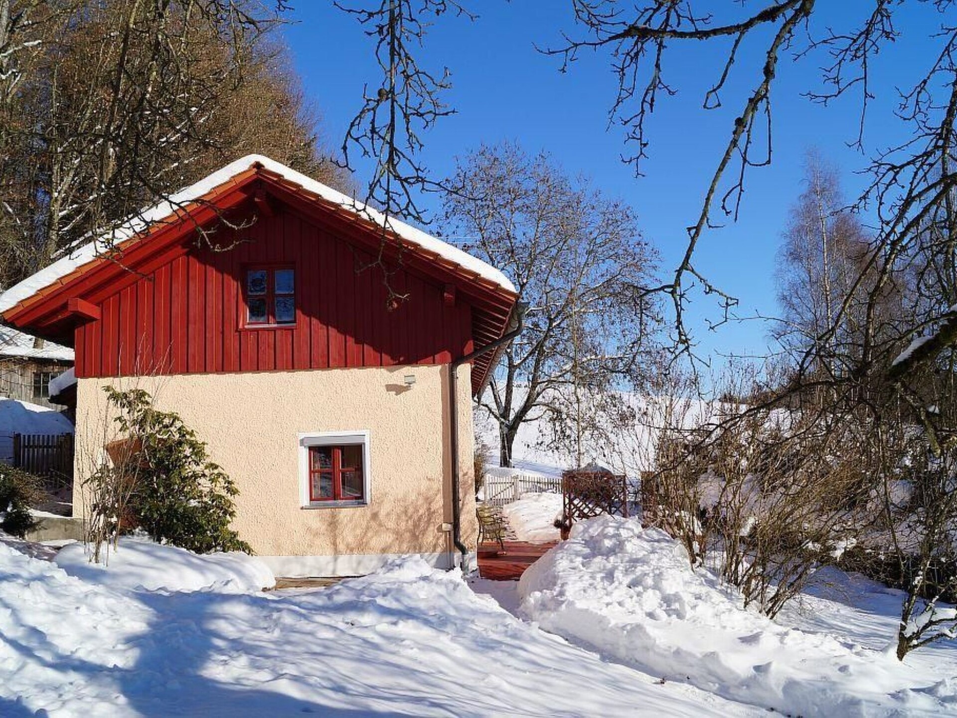 Maximaal 2 huisdieren/honden toegestaan. The detached and exclusive house is situated on a sunny south-facing slope and on the edge of a quiet forest. No car noise all around - pure nature.Ideal for families with children and animals to enjoy a holiday in peace and quiet. The 550 m² property is fenced in. A hiking trail leads directly past the house, other hiking trails are in the immediate vicinity.in the idyllic market town of Röhrnbach you will find all shopping facilities and hotels with culinary cuisine.nearby you will find the municipality of Ringelai. This offers numerous leisure activities (archaeological adventure park �Gabreta�, herb garden, witch museum, theatre, fishing) in the field of culture and sport. Of course, you can also enjoy the beautiful nature of the Bavarian Forest everywhere, with the national park, mountains such as Arber - Lusen - Dreisessel - Rachel, the western town of Pullman City, Reisbach leisure park and Loifing nearby, and very popular excursions to neighbouring Czechia (e.g. Prague) and Austria (Linz), as well as a boat trip in the three-river city of Passau.