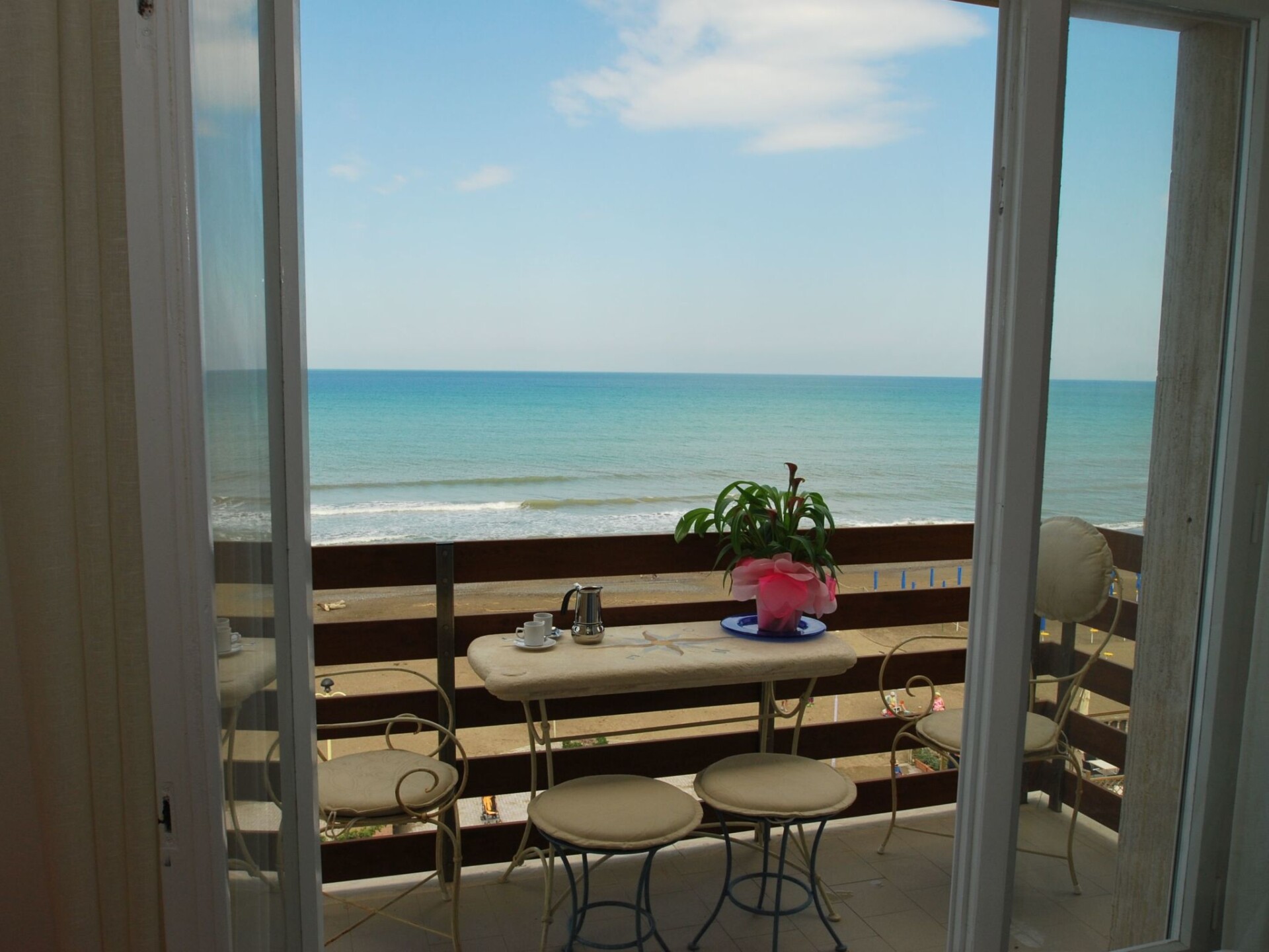 This 50 sqm flat is located on the third and last floor of a building with a lift on the seafront.It is in a very quiet and exclusive location and has two balconies overlooking the sea, and is perfect for those who love the sea. Due to its location directly by the sea, one has the feeling of being on a cruise, with the pleasant difference that one's feet actually rest on dry land.The entrance hall leads into a small hallway and from here the door on the left opens onto a large marble bathroom with shower, washing machine and window with sea view. The entrance door leads into a large bedroom with a double bed.From this room there is access to a balcony overlooking the sea, furnished with a marble table and wrought-iron chairs. A door on the front right leads to the dining room, where there is a dining table and two sofas that can be converted into single beds. The kitchen is very well equipped with a gas cooker, microwave, refrigerator with freezer, toaster, kettle, mocha and filter coffee machines and dishwasher. This room overlooks a balcony with a breathtaking view.From this balcony you can admire over 80 km of uninterrupted beach, from the Romito promontory to Populonia and the Gulf of Baratti, and on the horizon the islands of the Tuscan Archipelago and Corsica. Air conditioning and Wi-Fi.The holiday flats are located on the 3rd and top floor of a building (with lift) in Marina di Castagneto, where you will also find small shops and restaurants.There is a washing machine and a private parking space, lift.The beach directly in front of the building is free of charge.Approximately 1,000 metres from the flats in the north of 'Marina di Castagneto', guests have access to a private property with a botanical trail and seating, as well as changing rooms, toilets, water, sun loungers and parasols and access to a free beach.Marina di Castagneto Carducci is located on the Costa degli Etruschi, south of Livorno and about 30 km from Piombino, the port of departure for the island of Elba. Marina is a beautiful and peaceful village on the crystal clear Tuscan sea. From Marina di Castagneto Carducci you can visit some beautiful medieval villages such as Bolgheri (famous for its Sassicaia wine) or Massa Marittima, as well as the Etruscan necropolis of Populonia (25 km).MANDATORY PORTA A PORTA WASTE COLLECTION: if rubbish accumulates at check-out, a charge will be deducted from the deposit. IT049006B4TBTV9YBK