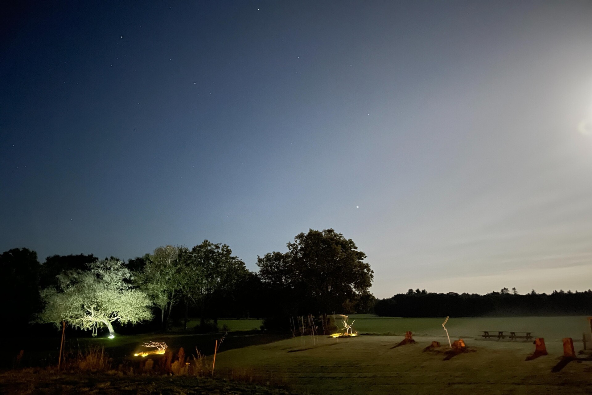 Voor buitenplezier is er een kinderbelevingstuin met een modderkeuken, een blotevoetenpad en een wilgenhut, en ook voldoende ruimte voor activiteiten zoals spelen of honden vrij laten rondlopen. Het terras, met sfeerverlichting en een stenen grill, is ideaal voor avondbijeenkomsten en er is ook een weide voor tenten beschikbaar voor een extra avontuur.