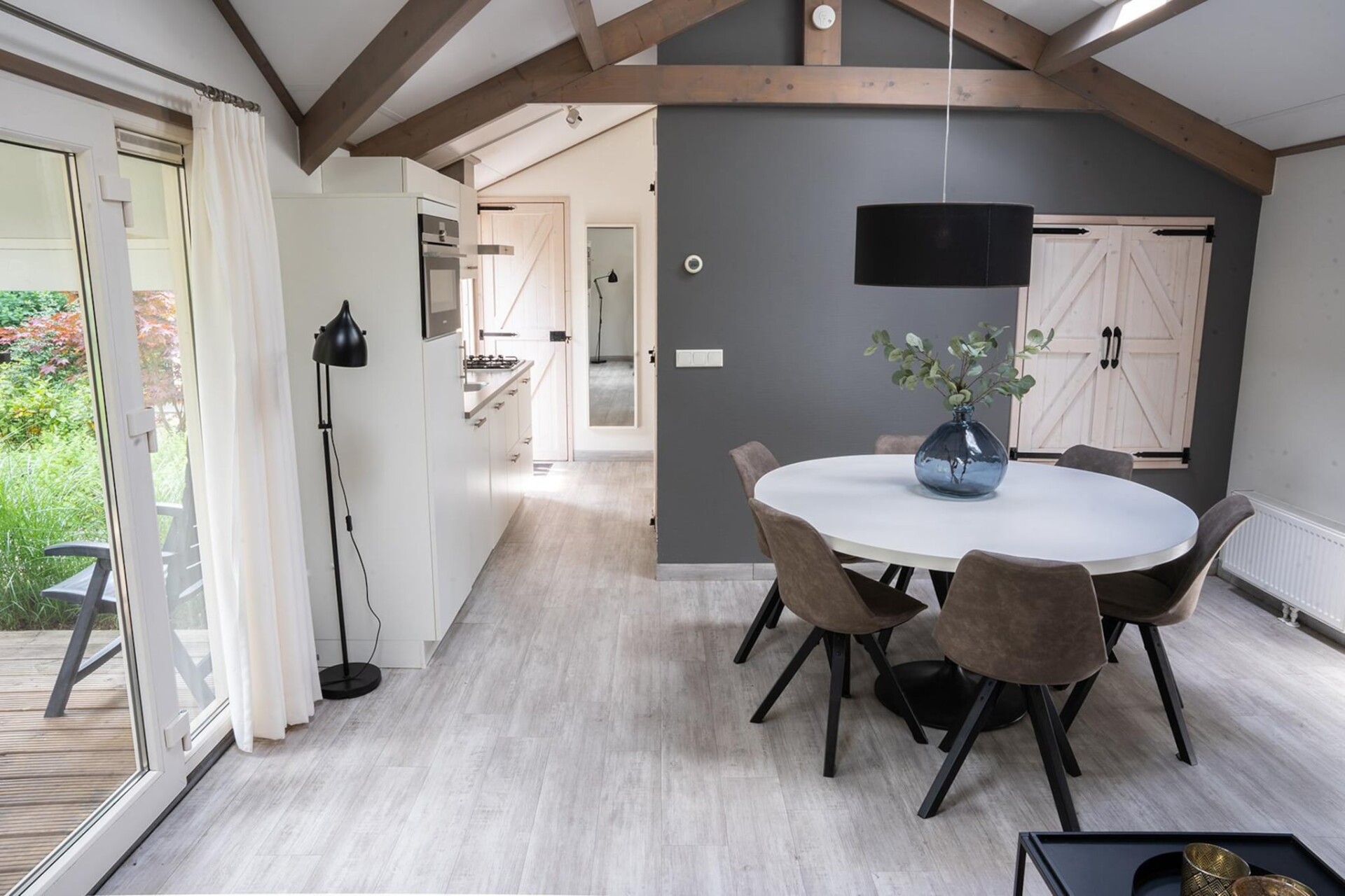 De gastvrije, op de tuin gerichte woonkamer nodigt u uit om te ontspannen op een comfortabele bank, met veel natuurlijk licht dat door openslaande deuren naar uw eigen privétuin van 250 m² stroomt. Geniet van het ontbijt op de buitentafel, begeleid door de rustgevende geluiden van vogels en de schoonheid van de omliggende natuur. Dit doordacht ontworpen huisje biedt een compacte maar volledig uitgeruste keuken met moderne voorzieningen zoals een oven-magnetron, koel-vriescombinatie, Nespresso-koffiezetapparaat, vaatwasser en een gasfornuis, perfect voor het bereiden van maaltijden tijdens uw verblijf. De badkamer is goed uitgerust met een douche, toilet en wastafel, en biedt alle benodigdheden.