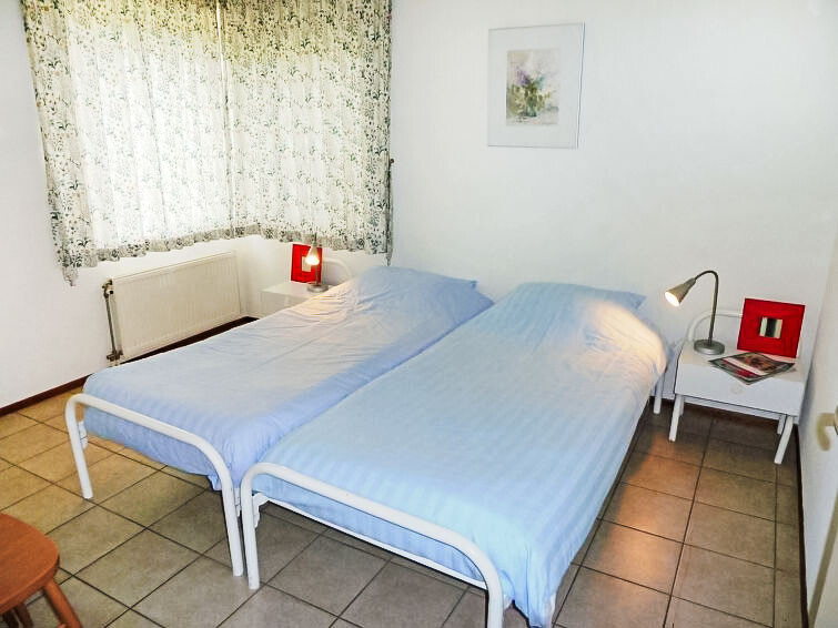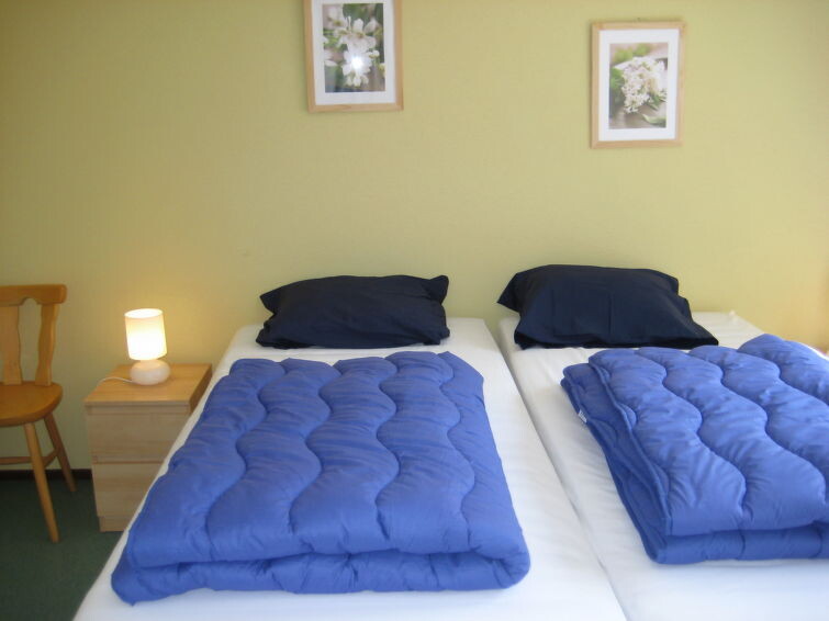 "4L", bungalow 3-kamers 50 m2, op de begane grond. Doelmatig en gezellig ingericht: hal. Woon-/eetkamer met eettafel en TV. Uitgang naar de tuin, naar het terras. 1 kamer met 2 bedden, wastafel en douche/WC. 1 kamer met 2 bedden en bad/WC. Open keuken (4-pits kookplaat, afwasmachine, waterkoker, elektrische koffiemachine). Verwarming. Terras, tuin. Terrasmeubelen. Ter beschikking: Internet (WiFi, gratis). Parkeerplaats bij het huis. Maximaal 2 huisdieren/honden toegestaan. Rookmelders. Huisdier op aanvraag. Mogelijk beschikt één slaapkamer over een tweepersoonsbed in plaats van twee losse bedden.