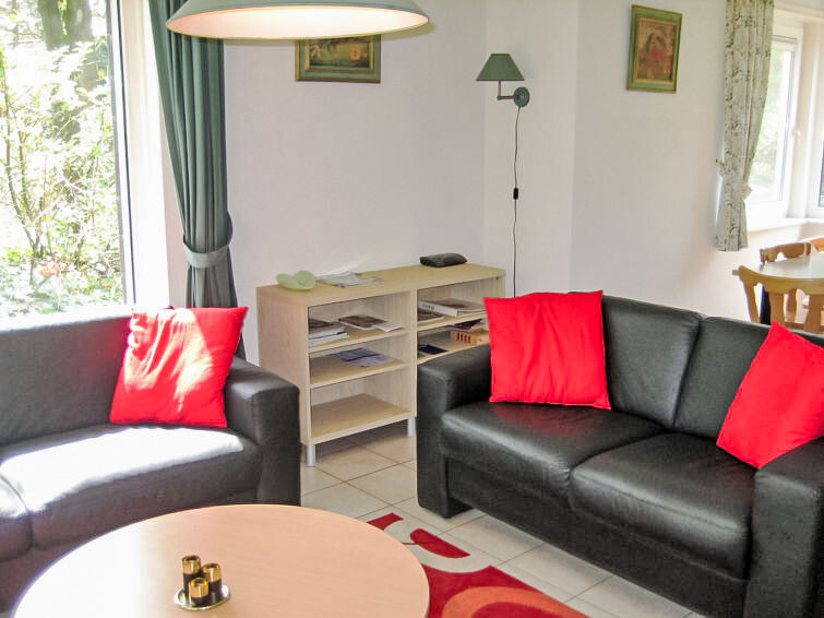 "6L", bungalow 4-kamers 50 m2 op 2 verdiepingen. Doelmatig en gezellig ingericht: hal met aparte WC. Woon-/eetkamer met eettafel en TV. Uitgang naar de tuin, naar het terras. 2 kamers, elke kamer heeft 2 bedden. Open keuken (4-pits kookplaat, afwasmachine, waterkoker, elektrische koffiemachine). Douche. Verwarming. Bovenverdieping: 1 kamer met 2 bedden. Douche/WC. Terras, tuin. Terrasmeubelen. Ter beschikking: Internet (WiFi, gratis). Parkeerplaats bij het huis. Maximaal 2 huisdieren/honden toegestaan. Rookmelders. Huisdier op aanvraag. Mogelijk beschikt één slaapkamer over een tweepersoonsbed in plaats van twee losse bedden.