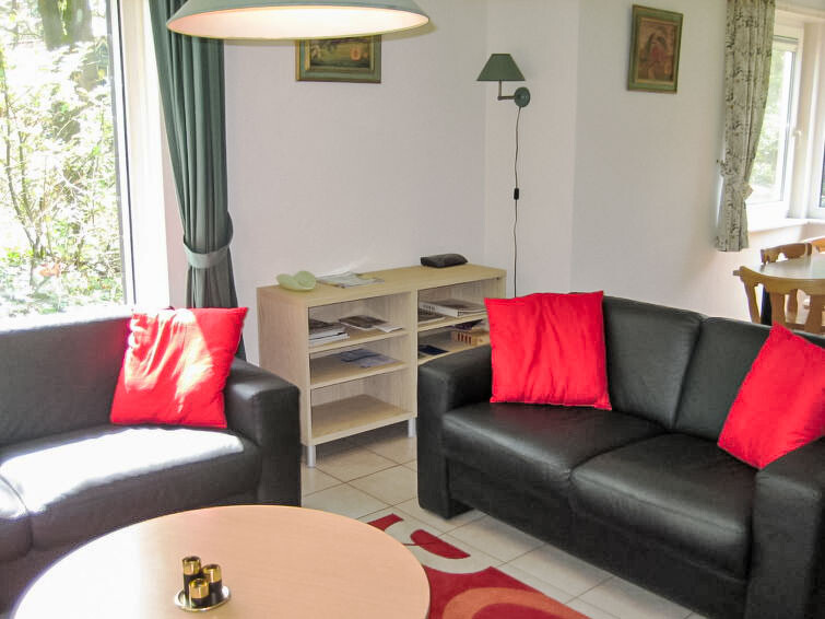 "6L", bungalow 4-kamers 50 m2 op 2 verdiepingen. Doelmatig en gezellig ingericht: hal met aparte WC. Woon-/eetkamer met eettafel en TV. Uitgang naar de tuin, naar het terras. 2 kamers, elke kamer heeft 2 bedden. Open keuken (4-pits kookplaat, afwasmachine, waterkoker, elektrische koffiemachine). Douche. Verwarming. Bovenverdieping: 1 kamer met 2 bedden. Douche/WC. Terras, tuin. Terrasmeubelen. Ter beschikking: Internet (WiFi, gratis). Parkeerplaats bij het huis. Maximaal 2 huisdieren/honden toegestaan. Rookmelders. Huisdier op aanvraag. Mogelijk beschikt één slaapkamer over een tweepersoonsbed in plaats van twee losse bedden.