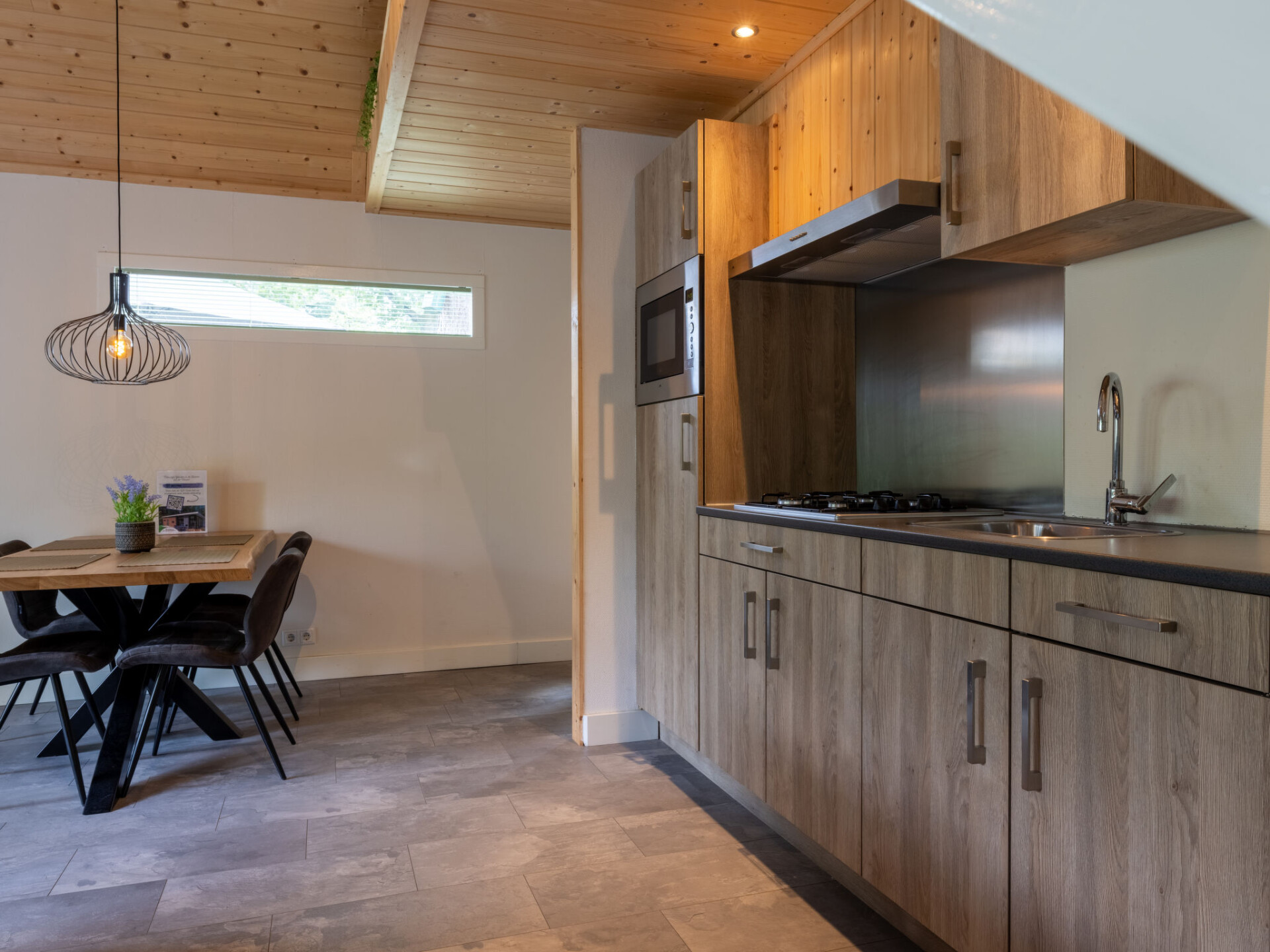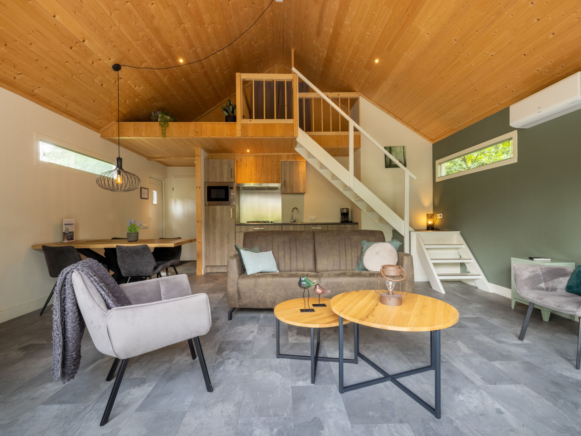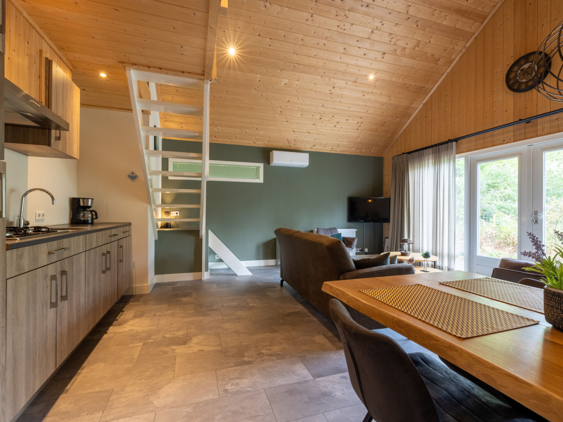 "Boslodge", chalet 2-kamers. Comfortabel ingericht: woonkamer met Flatscreen TV. Uitgang naar het terras. 1 kamer met 2 bedden. Open keuken (afwasmachine, Gasfornuis, 4 kookpitten (vlammen), broodrooster, waterkoker, elektrische koffiemachine, combimagnetron) met eettafel. Douche/WC. Verwarming, air-conditioning. Bovenverdieping: (trap zonder leuning) vide met gordijn met 2 bedden. Terras. Terrasmeubelen, bergruimte. Uitzicht op het meer. Ter beschikking: Internet (WiFi, gratis). Parkeerplaats bij het huis. Niet rokers woning. Boekingen zijn alleen voor vakantiedoeleinden toegestaan.