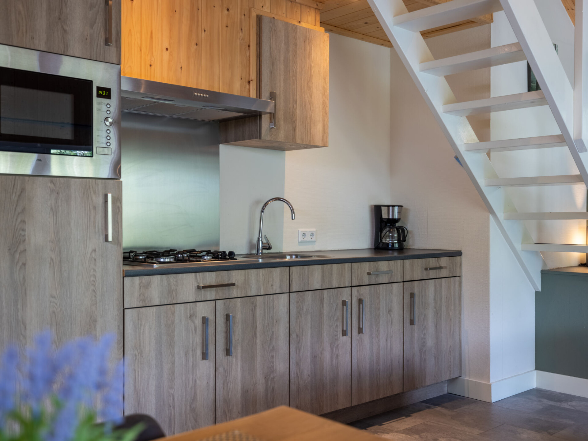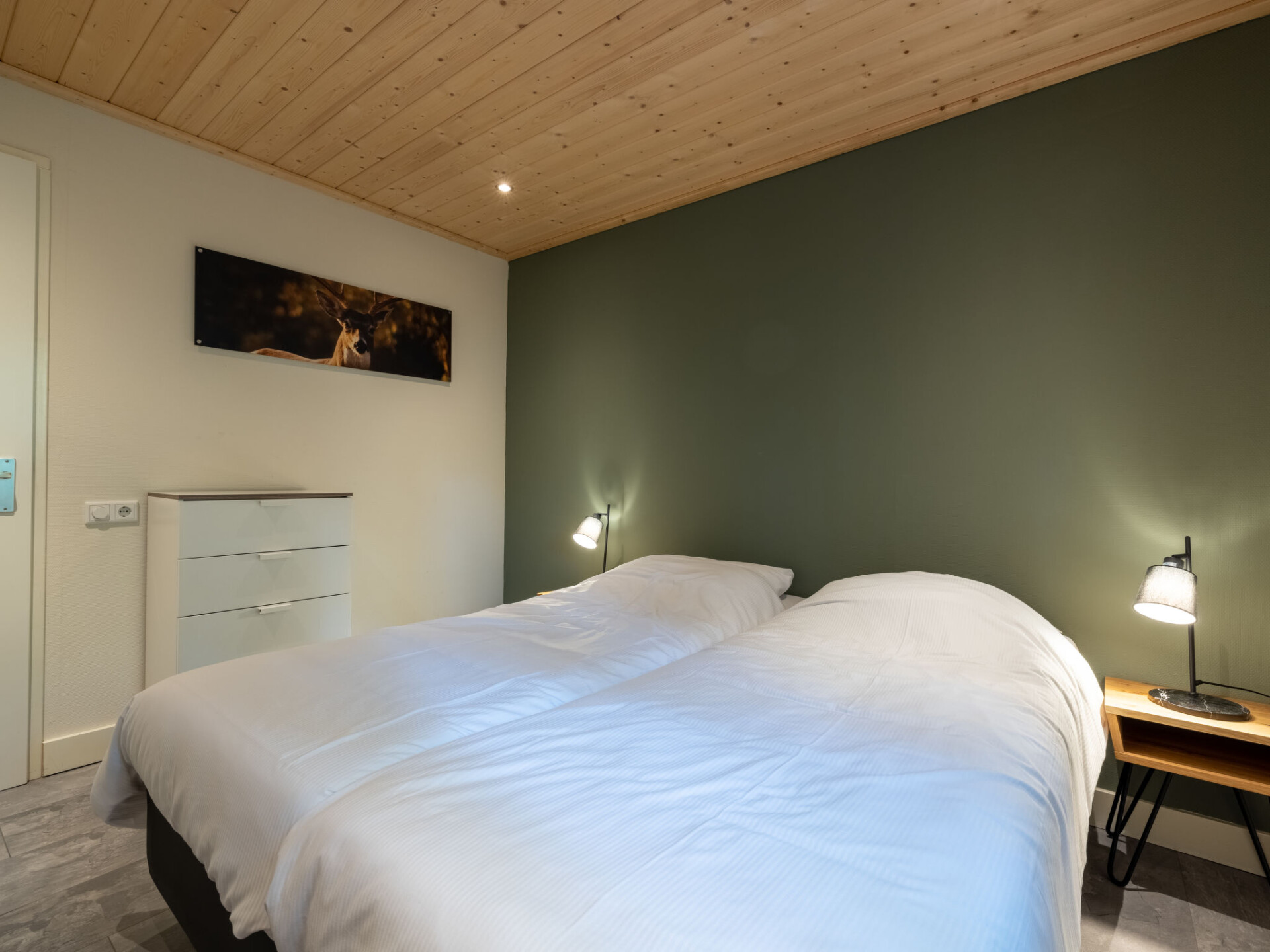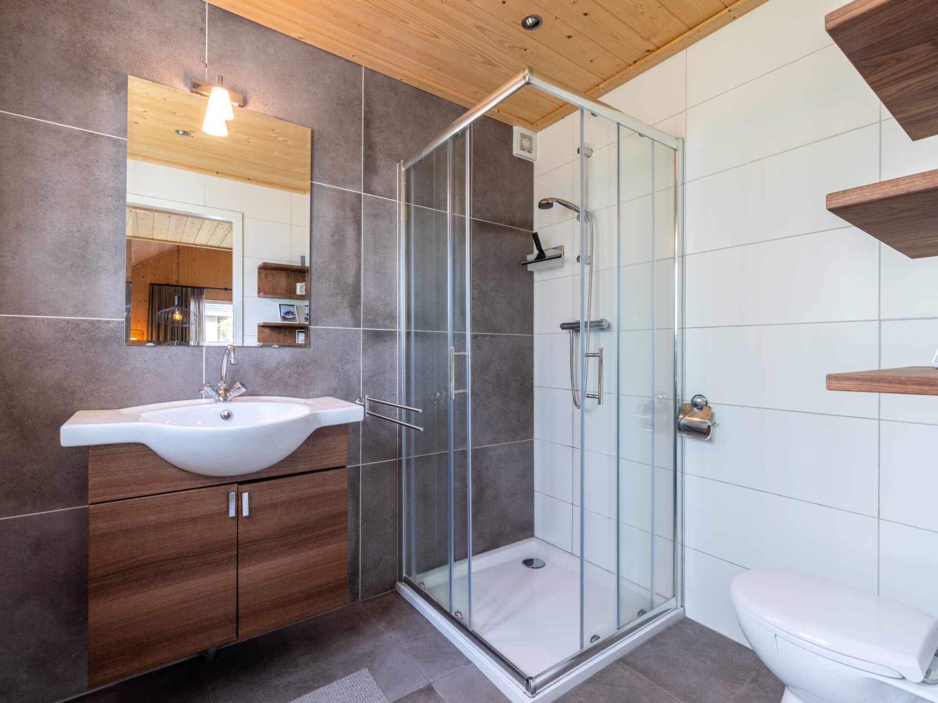 "Boslodge", chalet 2-kamers. Comfortabel ingericht: woonkamer met Flatscreen TV. Uitgang naar het terras. 1 kamer met 2 bedden. Open keuken (afwasmachine, Gasfornuis, 4 kookpitten (vlammen), broodrooster, waterkoker, elektrische koffiemachine, combimagnetron) met eettafel. Douche/WC. Verwarming, air-conditioning. Bovenverdieping: (trap zonder leuning) vide met gordijn met 2 bedden. Terras. Terrasmeubelen, bergruimte. Uitzicht op het meer. Ter beschikking: Internet (WiFi, gratis). Parkeerplaats bij het huis. Niet rokers woning. Boekingen zijn alleen voor vakantiedoeleinden toegestaan.
