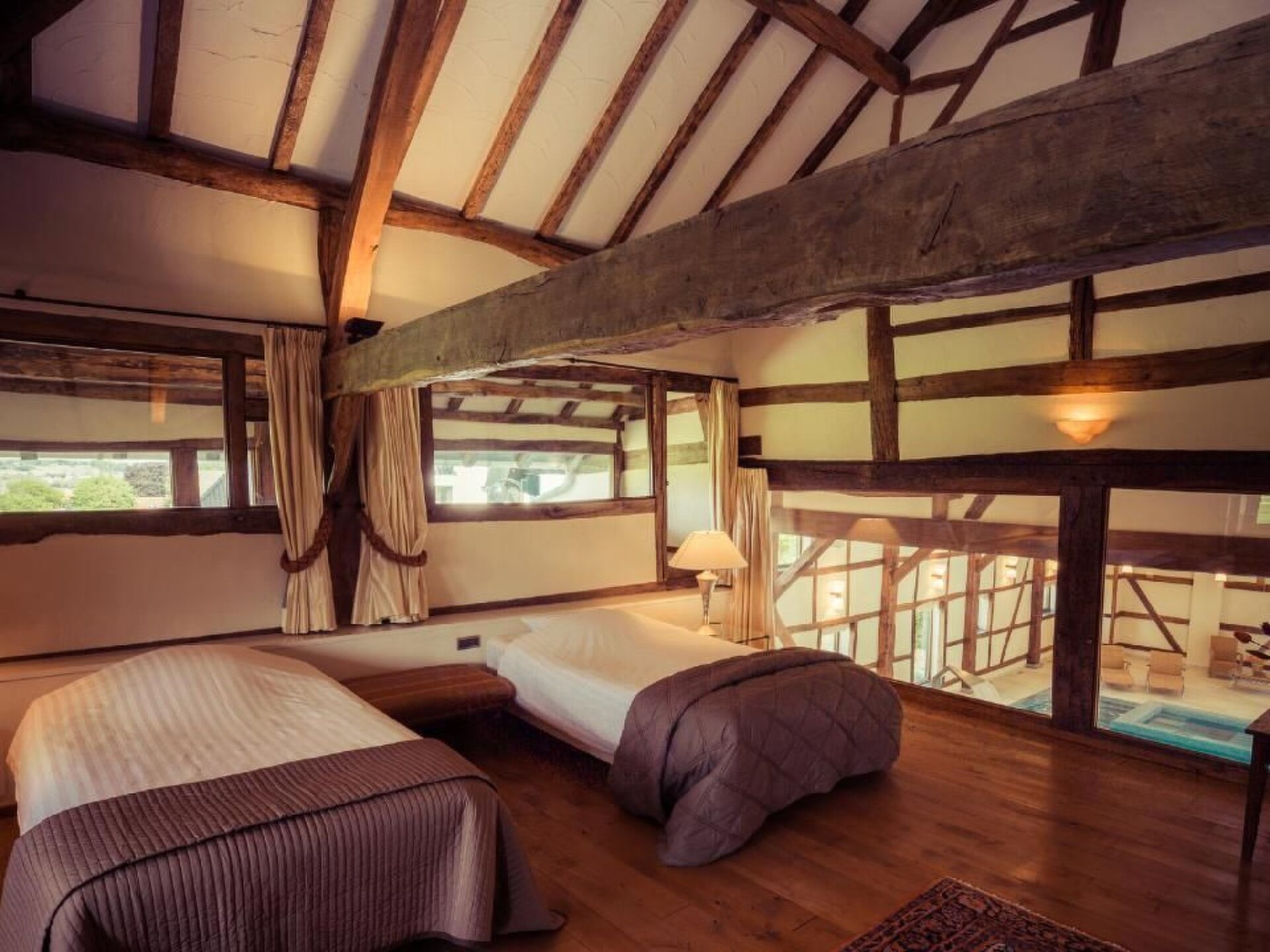 Country estate near Maastricht (20 km) and Aachen (20 km).Let your dreams come true in this country house.This luxury accommodation is truly a dream home in a beautiful setting with valley views.The unique, half-wooden country house with swimming pool has been converted into a spacious villa for groups where everything has been thought of. The villa has 5 bedrooms, all with bathrooms and jacuzzi, suitable for 10-20 people.The bedrooms in the villa are spacious and luxuriously furnished. All bedrooms are equipped with high-quality box-spring beds and have spacious bathrooms with jacuzzi, walk-in shower, washbasin and toilet.The two master bedrooms are a dream come true. Both bedrooms are approximately 45 m² and have an en-suite bathroom (15 m²) with a whirlpool bath and rain shower with massage jets. Your clothes can be stored in a walk-in wardrobe.The country house also has 3 spacious flats with kitchenette, living area and bathroom including whirlpool. These flats are ideal for families or additional guests.All rooms are not only spacious and furnished to a high standard. The view from the rooms over the hilly landscape of the Geuldal is breathtaking. You will stay in a true oasis of peace.Next to the country house is another exclusive villa with 7 bedrooms and 7 bathrooms, which can be booked separatelyBedrooms & bathrooms- 2 spacious double rooms with comfortable box-spring beds- 3 spacious 4-person rooms with comfortable box-spring beds- 5 bathrooms with jacuzzi, walk-in shower and toilet- 2 separate toiletskitchen- Cooking island with teppanyaki grill, wok, induction hob and built-in deep fryer- Steam cooker- American fridge with freezer compartment and ice maker- Oven- Dishwasher- Espresso machineSpecial features- Spacious terrace- Private garage for 12 cars- Indoor pool with jacuzzi and waterfall- Free WLAN- Large sports and playground- Catering on requestExcursions and activitiesIn the immediate vicinity of the villa you can visit caves, go for walks and visit towns.- Cycle routes in South Limburg- Valkenburg marl cave- Kayaking, rafting and canoeing on the river Maas- Adventure swimming pool "Zwemparadijs Mosaqua" in Gulpen (3 km)- Thermal baths in Valkenburg (14 km) or "Carolus Therme" in AachenIncluded servicesBed linen set is included in the price. All beds are made upon arrival and towels are ready for use.Additional services (for a fee and on request)The kitchen is fully equipped. Cookery courses can be organised on request.Meeting room for conferences and seminarsYou can hold meetings in an informal setting in the villa's conference room (90 m², table with 15 seats, capacity up to 40 people), equipped with free Wi-Fi and all the necessary equipment (projector, flipchart, sound system). From the light-flooded meeting room you can enjoy a wonderful view of the surrounding countryside. Meeting packages including catering and overnight accommodation are available on request.Please note that the availability of the property must be requested from the landlord in advance. Please contact us by telephone or send us an e-mail.Brief description 1Number of kitchens : 1Other rooms : PoolBedroom 1Other bedroom furnishings : Large beds (1.40 x 2.10 m)Bedroom 2Other bedroom furnishings : Large beds (1.40 x 2.10 m)Bedroom 3Other bedroom furnishings : Large beds (1.40 x 2.10 m)Living room 2Other living room furnishings : separate dining roomSurroundingsRental facilities : Bicycle hireSports facilities in the area : fishing, golf course, climbing, mountain biking, cycling tours, riding stables (guests), sports centre, tennisGarden and outdoor facilitiesLeisure facilities at the property : Indoor pool for private use, Separate fitness room, Playground, Swimming pool, JacuzziGarden facilities : Garden furniture available, BarbecueServices availableServices (fees may apply) : Bread roll service, shopping service before arrival, breakfast, cook, cleaning service during your stay, transfer service (airport etc.), maid service