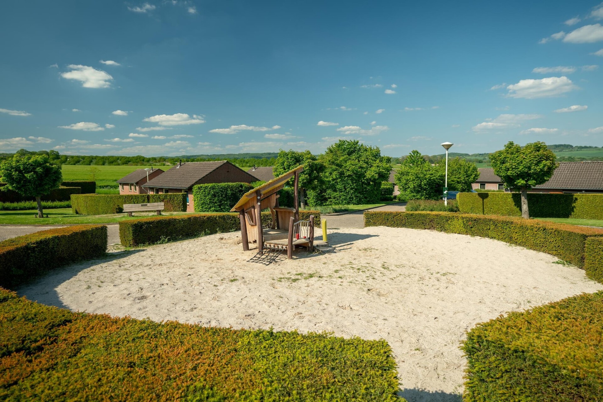 Deze vrijstaande bungalow staat op het kleinschalige vakantiepark Reevallis, in het prachtige heuvellandschap van Zuid Limburg, aan de rand van het dorpje Vijlen. Het ligt op 8 km. van het Drielandenpunt in Vaals. Maastricht (25 km.) en Valkenburg (17 km.) zijn goed te bereiken.