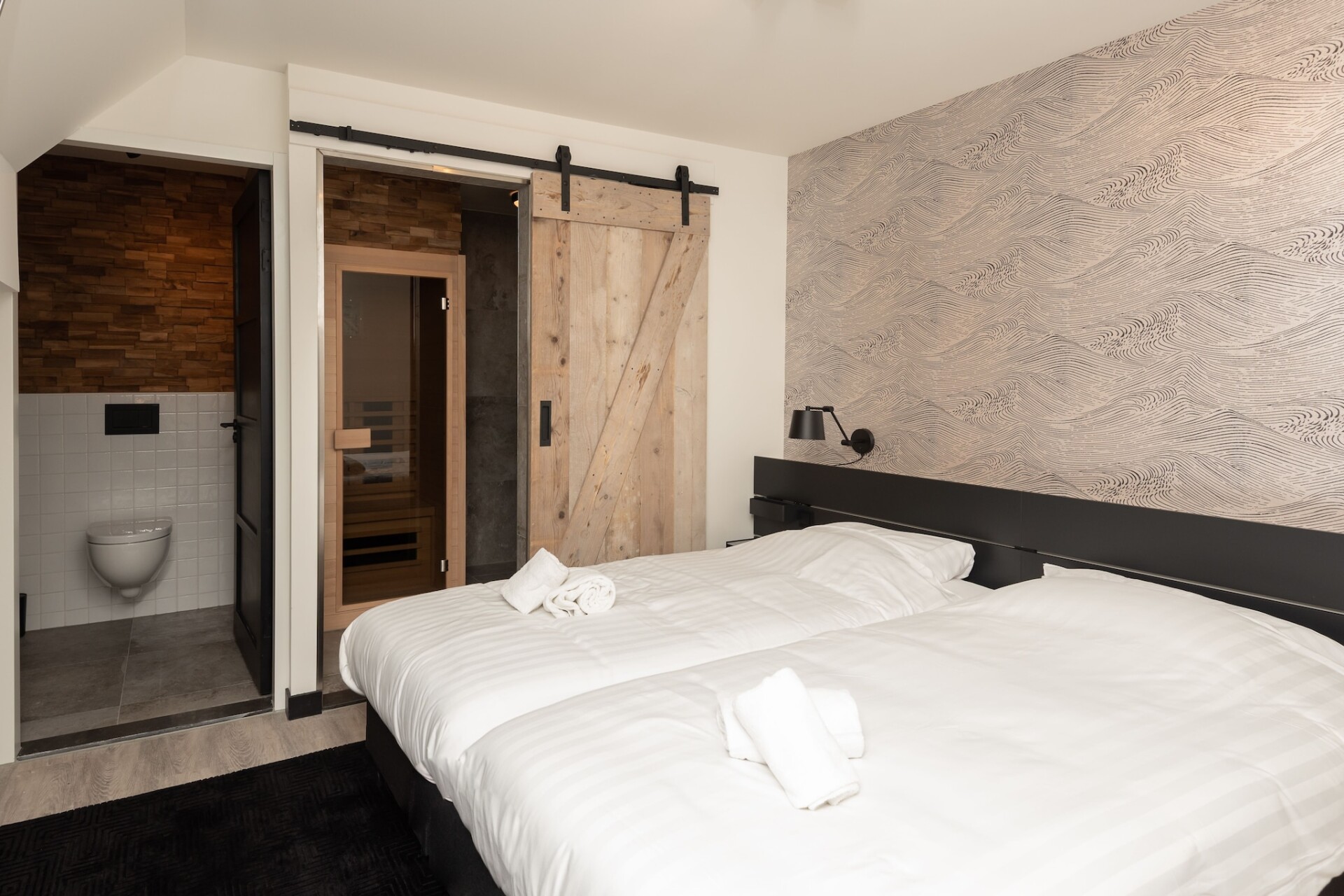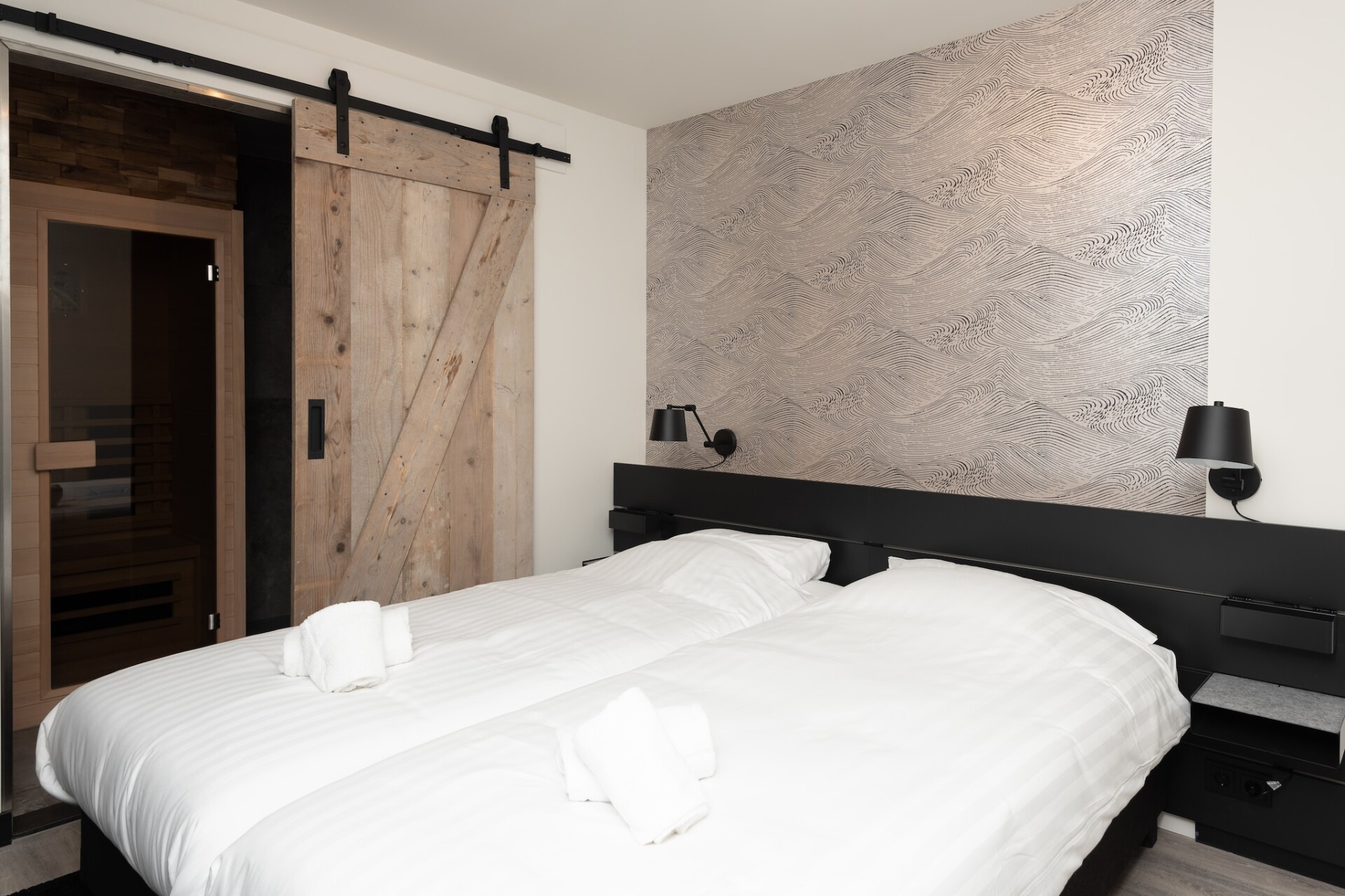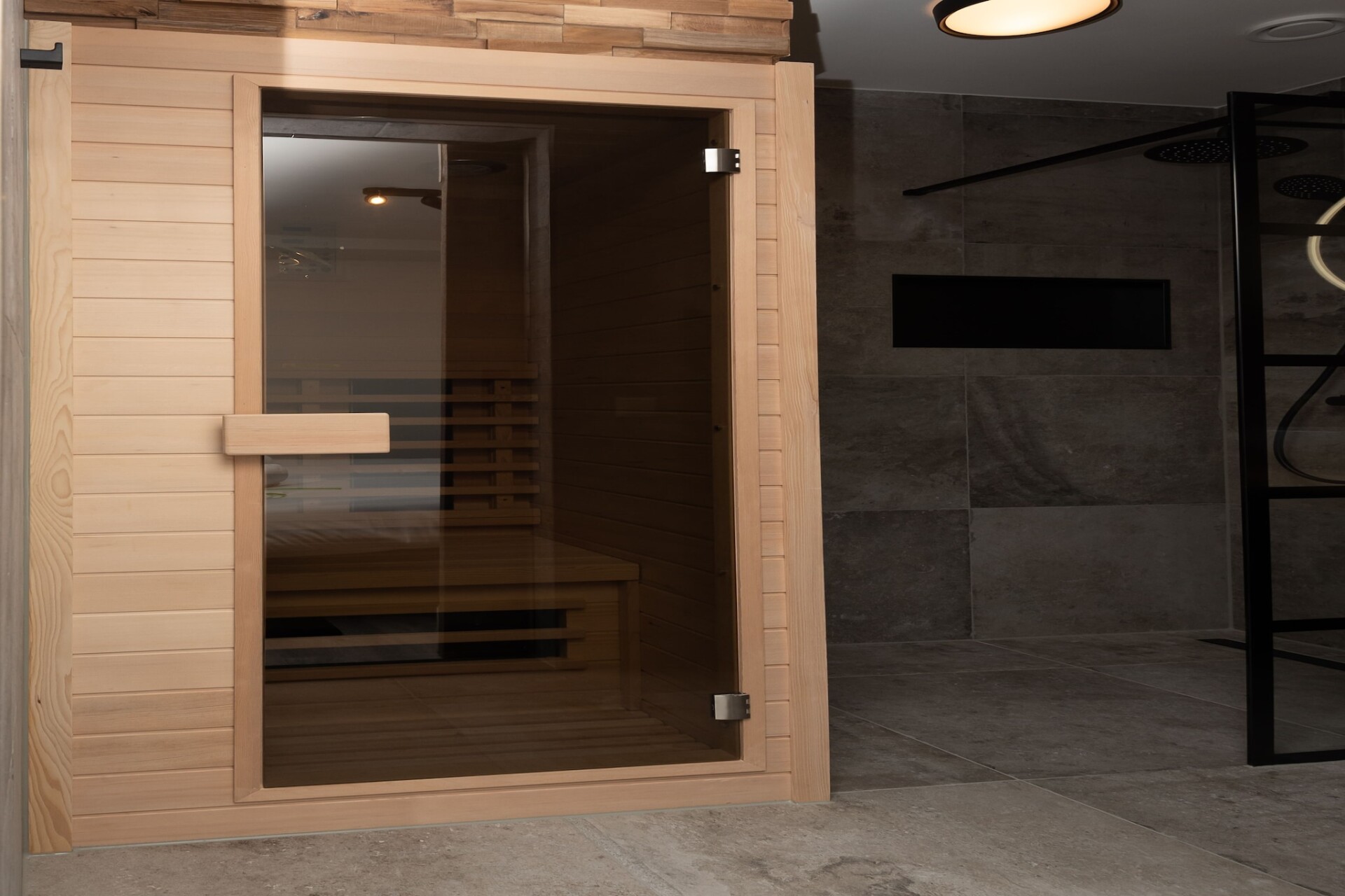 De woonkamer heeft een flatscreentelevisie met buitenlandse zenders. De keuken heeft een combi-magnetron, een 2-pits kookplaat, een vaatwasser, een koelkast met vriesvakje, een koffiezetapparaat en een waterkoker. Er is één slaapkamer met een tweepersoonsbed. In de badkamer is er een douche en een wastafel. Verder is er in het appartement een infrarood sauna. Er is een apart toilet in het appartement. Tot slot is er nog een balkon met tuinmeubelen.