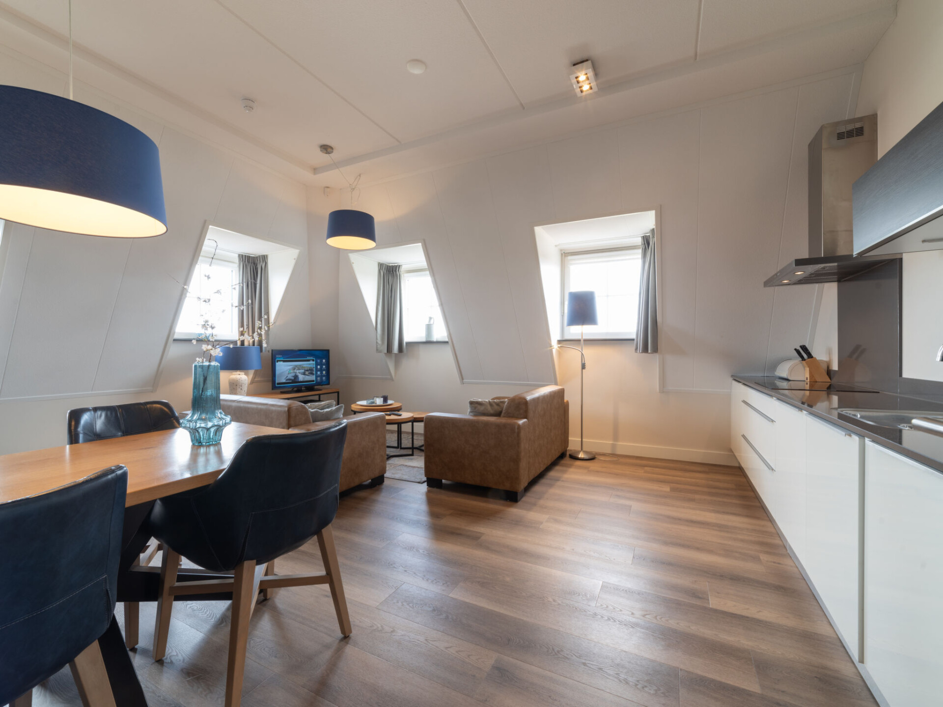 "Raadhuis Comfort", appartement 3-kamers 80 m2. Comfortabel ingericht: hal met aparte WC. Woon-/eetkamer met eettafel en TV (Flatscreen TV). Uitgang naar het balkon. 2 2-pers. kamers, elke kamer heeft 2 bedden (90 cm, lengte 210 cm), TV (Flatscreen TV). Open keuken (oven, afwasmachine, 4 inductiekookplaten, waterkoker, magnetron, elektrische koffiemachine, pads voor de koffiemachine (Nespresso-not incl.)). 2 douche/WC's, hydro massage bad, Sauna. Vloerverwarming. Bergruimte. Ter beschikking: haardroger. Internet (WiFi, gratis). Parkeerplaats (2 Auto's). Rookvrij huis. Rookmelders. Huisdier op aanvraag.