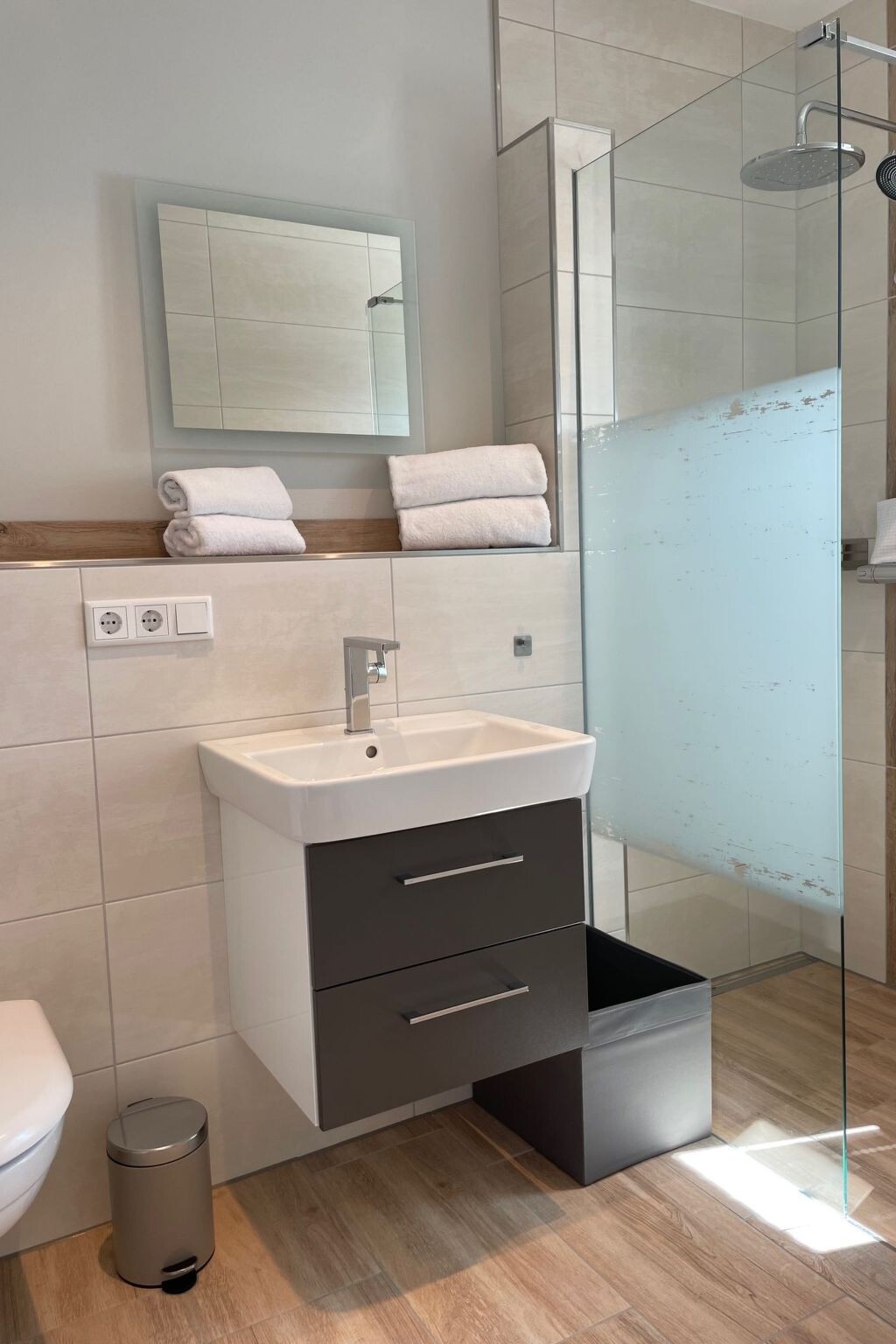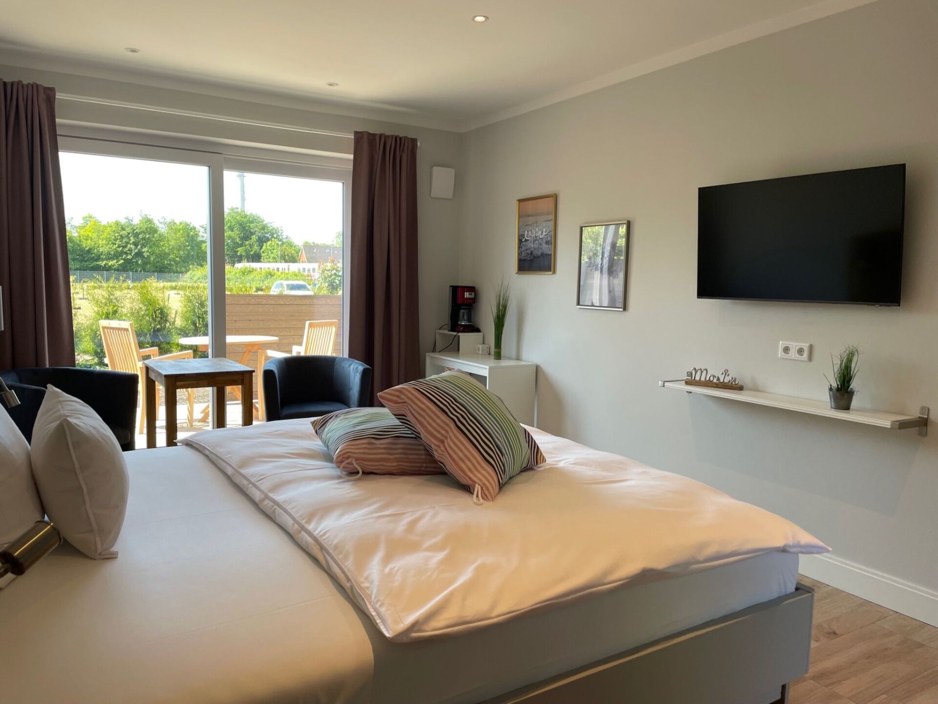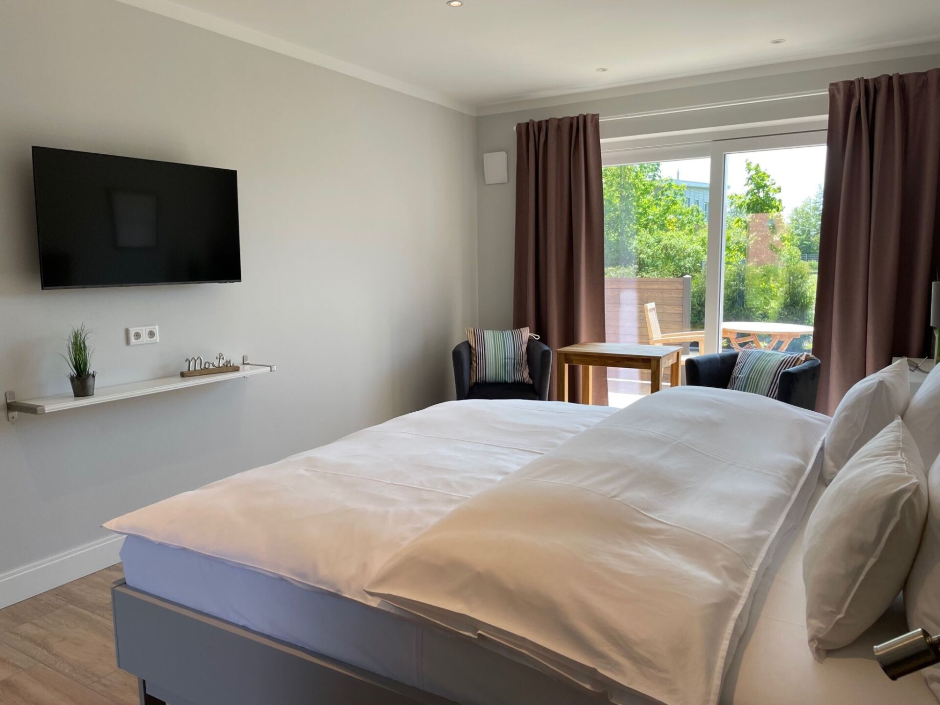 Discover idyllic Niebüll in Schleswig-Holstein with our comfortable holiday flats - the perfect accommodation for holidaymakers and Sylt commuters. Our holiday flats offer an attractive and cost-effective alternative to conventional hotel rooms. With excellent connections to Sylt, the option of digital check-in and check-out around the clock and special discounts for long-term guests, we make your stay as pleasant and flexible as possible. Whether you want to stay for a few nights or up to 12 months, our holiday flats are tailored to your needs.In each of our 30 m² holiday flats you will find everything you need for a relaxing stay. The flats have a cosy bedroom and living room with an integrated kitchen, equipped with a practical 2-plate cooker and a filter coffee machine for the perfect start to the day. Thanks to the underfloor heating, which provides cosy warmth throughout the flat, you will feel completely at ease even on cooler days. There is also a modern bathroom with a reliable shower, complemented by amenities such as a TV and WiFi for your entertainment and networking needs.Your holiday flat also has its own entrance and a cosy terrace where you can get some fresh air and relax. The highlight, however, is the charging station for electric cars, which gives environmentally conscious guests the opportunity to conveniently charge their vehicles. So you can start the day with peace of mind, whether you're exploring the local area or planning a day trip to Sylt.With its close proximity to the sea, which is only 10 kilometres away, the surrounding area is ideal for a variety of leisure activities. The nearest town centre is just a short 200-metre walk away, making this holiday flat the ideal starting point for exploring. Shopping facilities are also within easy walking distance, with a grocery store just 95 metres away. This makes your stay not only pleasant, but also extremely practical.Our holiday flats in Niebüll are therefore the perfect choice for anyone looking to enjoy the peace and beauty of northern Germany as well as the flexibility for trips to the island of Sylt. With environmentally friendly features such as the use of renewable energy and solar power, we also place great emphasis on sustainability. Experience an unforgettable stay in one of our holiday flats, where comfort, convenience and nature go hand in hand.