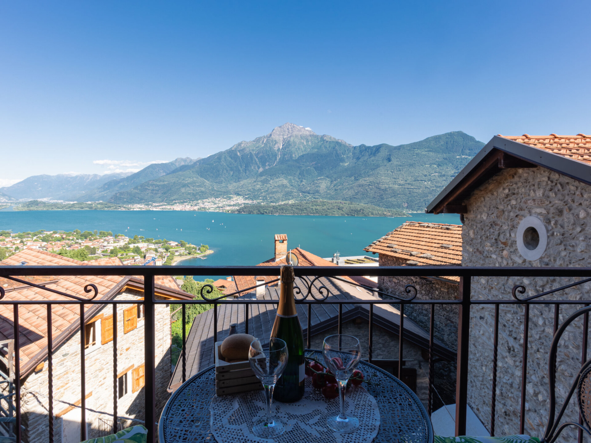 Appartement 2-kamers 50 m2 op de 2e verdieping. Comfortabel ingericht: open woon-/slaapkamer met 1 2-pers divanbed, eettafel en TV. Uitgang naar het balkon. 1 2-pers. kamer. Open keuken (oven, Gasfornuis, 4 kookpitten (vlammen), broodrooster, waterkoker). Bad/bidet/WC. Geen verwarmingsmogelijkheid. Klein balkon. Balkonmeubilair. Panoramazicht op het meer en de bergen. Ter beschikking: haardroger. Privé ingang. IT013089C2NRIH9NDP