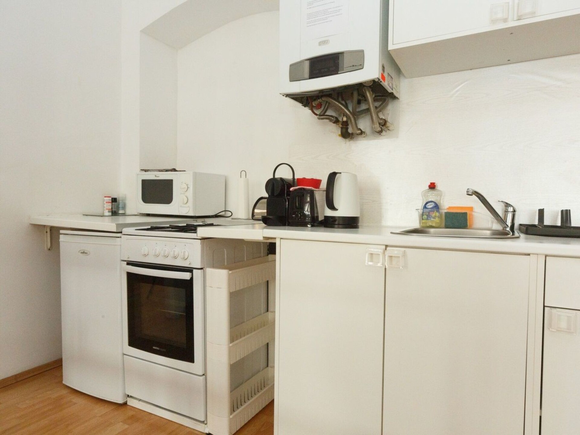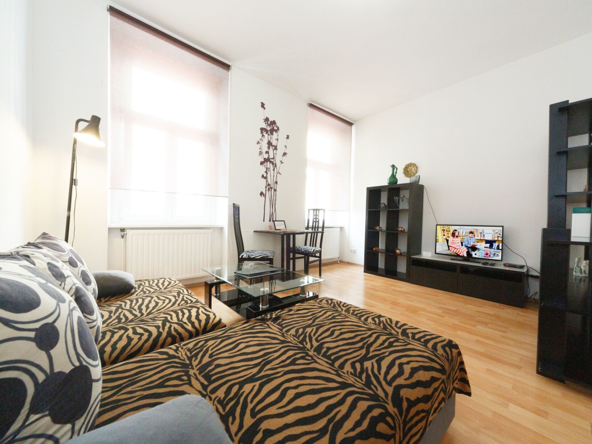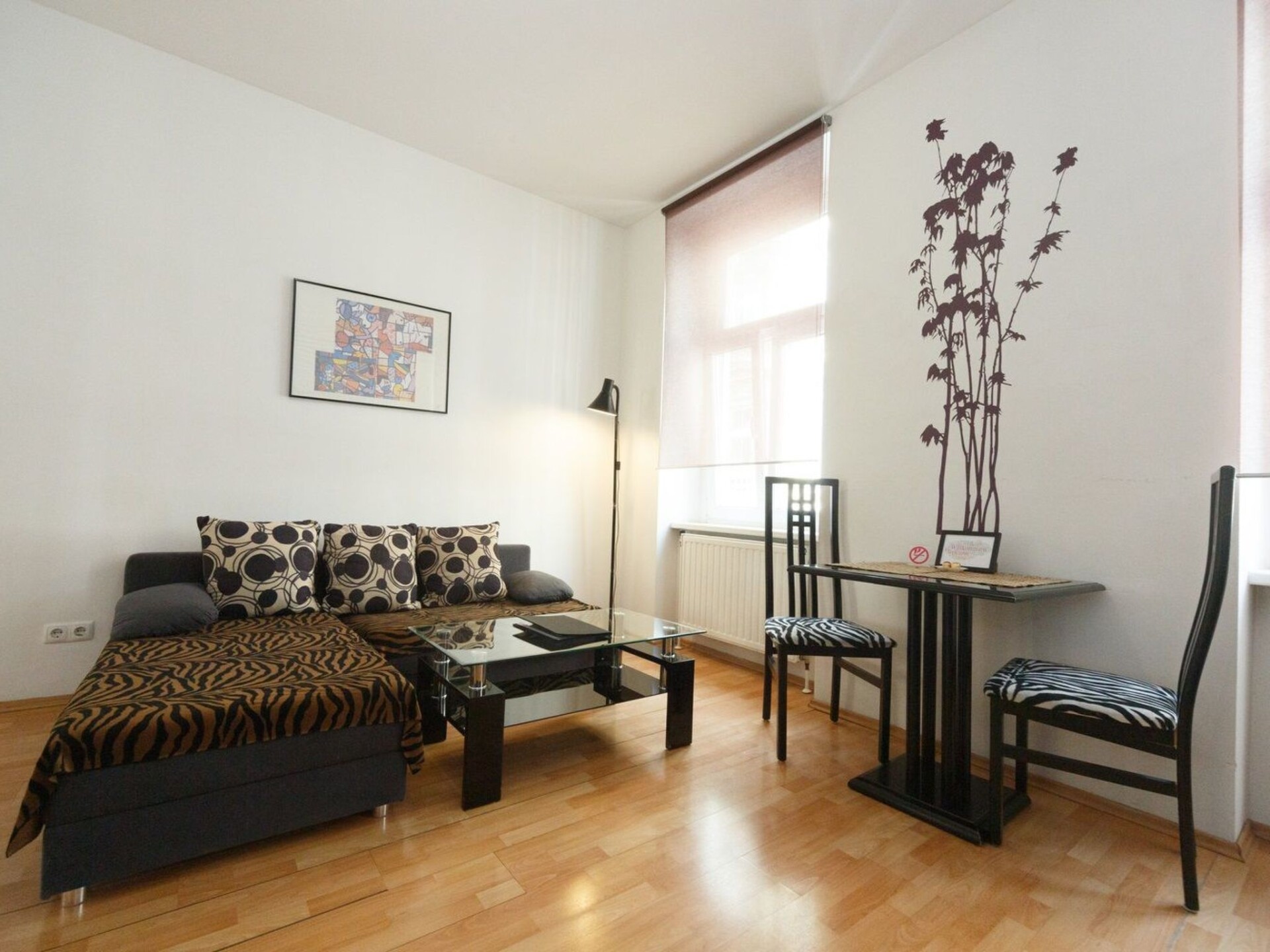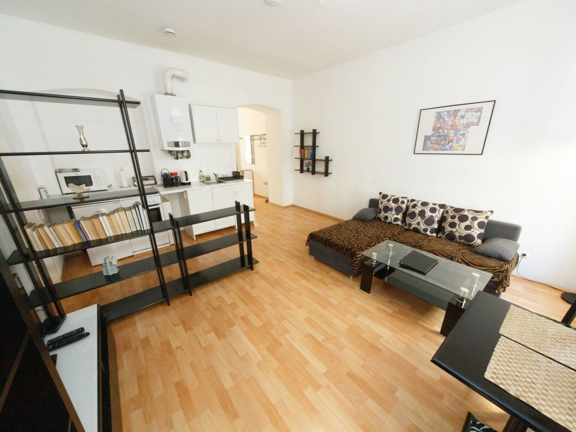 Discover the perfect combination of comfort and location with our charming Top 4 holiday flat in Vienna-Schönbrunn. Situated in the 15th district of Vienna, close to the city's cultural highlights, this flat on the 1st floor of an apartment block, facing the street, offers the ideal starting point for your city explorations. Enjoy an unforgettable stay in a flat that has been specially designed to make your holiday as pleasant as possible.The interior of the flat is perfectly tailored to the needs of two people and is spread over 45 m². In the living area you will find a cosy sofa, complemented by shelves and a dining area with a table and two chairs. The open-plan kitchenette is equipped with modern appliances such as a hob, oven, capsule coffee machine, microwave, sink and fridge. The bathroom has a shower, WC, washbasin with vanity unit, hairdryer and towel dryer. The bedroom is furnished with a 160 cm wide double bed, bedside table and a spacious wardrobe to offer you maximum comfort.The outdoor areas of the flat also offer a number of advantages. The easy parking situation is particularly noteworthy: Although Vienna is a short-term parking zone, you can park right outside the front door on weekends and public holidays without paying anything. For longer parking periods, there are nearby Park&Ride facilities and the U4-Center multi-storey car park in Schönbrunner Strasse.The area surrounding the holiday flat offers everything you need for a carefree stay: From supermarkets and pharmacies to public transport, everything is in the immediate vicinity. Schönbrunn Palace with its famous zoo is just a 10-minute walk away. The underground stations U4/U6 Längenfeldgasse and Westbahn City with numerous train connections are also just a few minutes' walk away. There is also a launderette nearby for your everyday needs.Don't miss this opportunity to stay in a holiday flat that impresses with both its practical interior design and its excellent location. Enjoy a carefree time in this lovingly furnished accommodation, which is designed to make your stay in Vienna unforgettable. Whether you want to explore the cultural sights or simply relax, you will find the ideal retreat here.