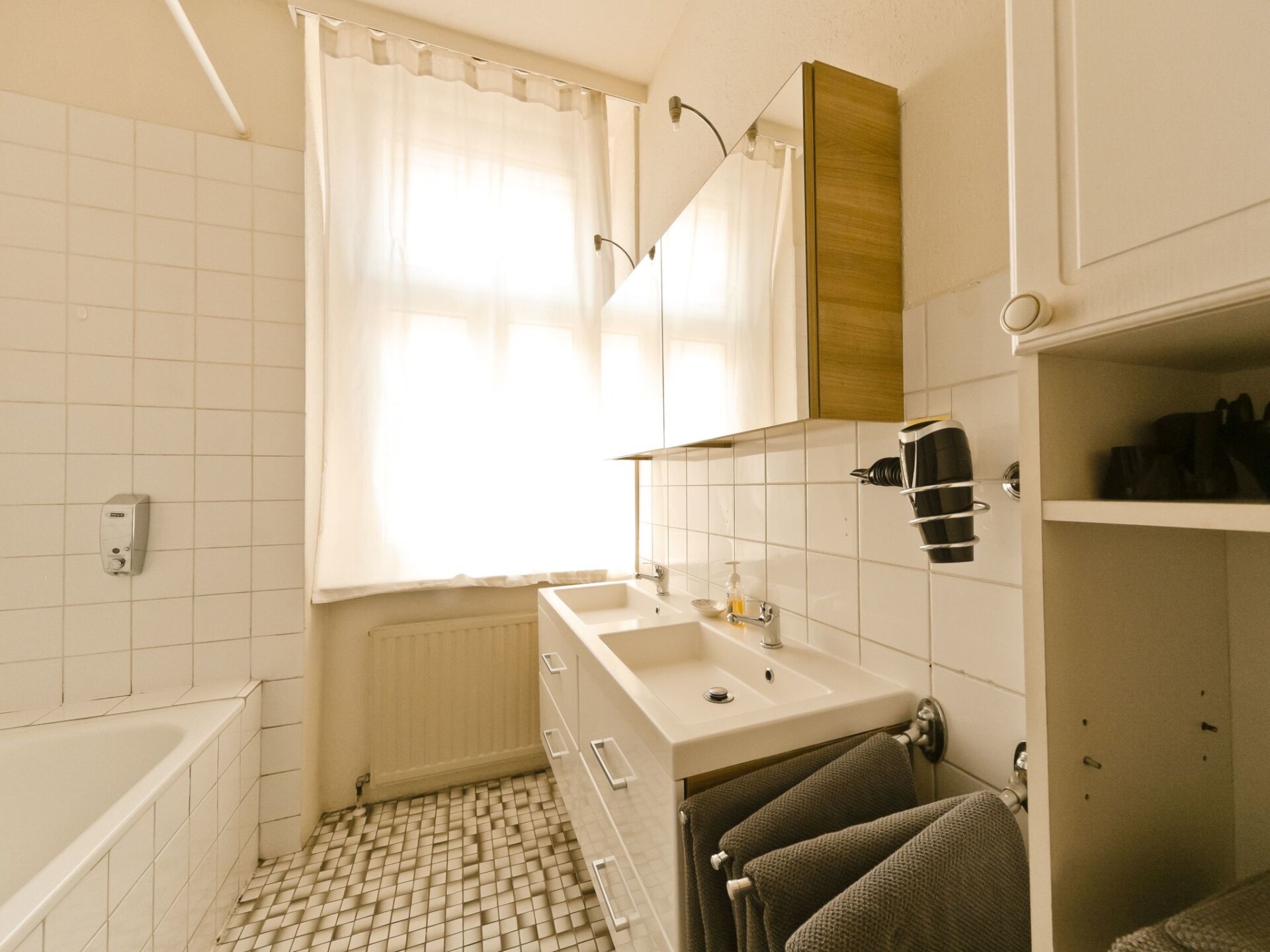 Discover our jewel in Vienna: the spacious "Top 6" holiday flat in Vienna's 15th district, not far from the magnificent Schönbrunn Palace. Situated on the 2nd floor of an apartment block, a charming temporary home awaits you, ideal for up to four people. With a central location, this holiday flat is the perfect choice for those who want to explore Vienna and are looking for a cosy living experience at the same time.Inside the 70 m² flat, you will find a tastefully furnished living area with parquet flooring, a lounge area, a dining table with five upholstered chairs and a TV for cosy evenings in. The open-plan kitchenette leaves nothing to be desired and offers a hob, oven, capsule coffee machine, microwave and fridge/freezer. For your convenience, there is a spacious bathroom with bath, shower and hairdryer, as well as a separate WC and two comfortably furnished bedrooms.Despite its central location, the outdoor area offers convenient parking right outside the front door at weekends and on public holidays at no extra charge. For longer parking periods, we recommend the nearby U4-Center multi-storey car park. The building itself has a modern code lock system that allows you to check in and check out easily and contactlessly, making your arrival as flexible and convenient as possible.The area surrounding the holiday flat couldn't be more attractive: You can reach the famous Schönbrunn Palace with its magnificent zoo in just a ten-minute walk. Public transport connections are excellent, with the Längenfeldgasse metro station and Westbahn City just a few minutes away. Supermarkets, pharmacies and a launderette are in the immediate vicinity, so that all your needs are quickly met.Choose our "Top 6" holiday flat for your next stay in Vienna and enjoy the perfect combination of urban living comfort and optimal connections to Vienna's most beautiful sights. Your unforgettable city adventure begins here with all the comfort you could wish for - ideal conditions for an unforgettable time in the Austrian capital.