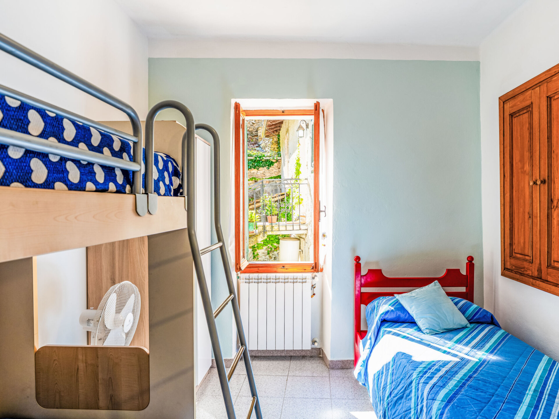 "Nonna Lena", huis in een rij 3-kamers 70 m2 op 2 verdiepingen. Ruim en licht, doelmatig en gezellig ingericht: woon-/eetkamer met eettafel en Sat-TV. Kookhoek (oven, 4 kookpitten (vlammen), broodrooster, waterkoker, diepvriezer, elektrische koffiemachine, pads voor de koffiemachine (Nespresso)). Douche/bidet/WC. Verwarming alleen beschikbaar van 01.11. tot 12.04. Bovenverdieping: 1 kamer met 1 2-pers bed (1 x 160 cm, lengte 200 cm). 1 kamer met 1 bed en 1 x 2 stapelbedden. Zithoek in de tuin. Zijdelings uitzicht op het dal en de plaats. Ter beschikking: wasmachine, strijkijzer, haardroger. Internet (WiFi, gratis). Maximaal 2 huisdieren/honden toegestaan. IT008047C2LK7AY2A5