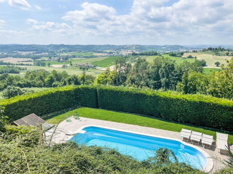 Gezellig Huis met 3 woningen van 2 verdiepingen, omgeven door velden en wijngaarden. Buiten de plaats, 2 km van het centrum van Portacomaro, rustige, zonnige ligging op een heuvel. Voor medegebruik: wild terrein 1.500 m2 (omheind) met gazon en bomen, openluchtzwembad (11 x 4 m, 150 cm diepte, seizoensgebonden beschikbaarheid: 01.Mei. - 15.Okt.). Buitendouche, terras, tuinmeubelen, parkeerplaats bij het huis op het terrein. Levensmiddelenwinkel 2 km, supermarkt 5 km, restaurant 1 km, bakkerij 2 km, bushalte 1.6 km. Attracties in de buurt: Asti 12 km, Turin 50 km, Alba 35 km. Auto noodzakelijk. Eigenaar woont in apart huisgedeelte. De eigenaar heeft een hond.